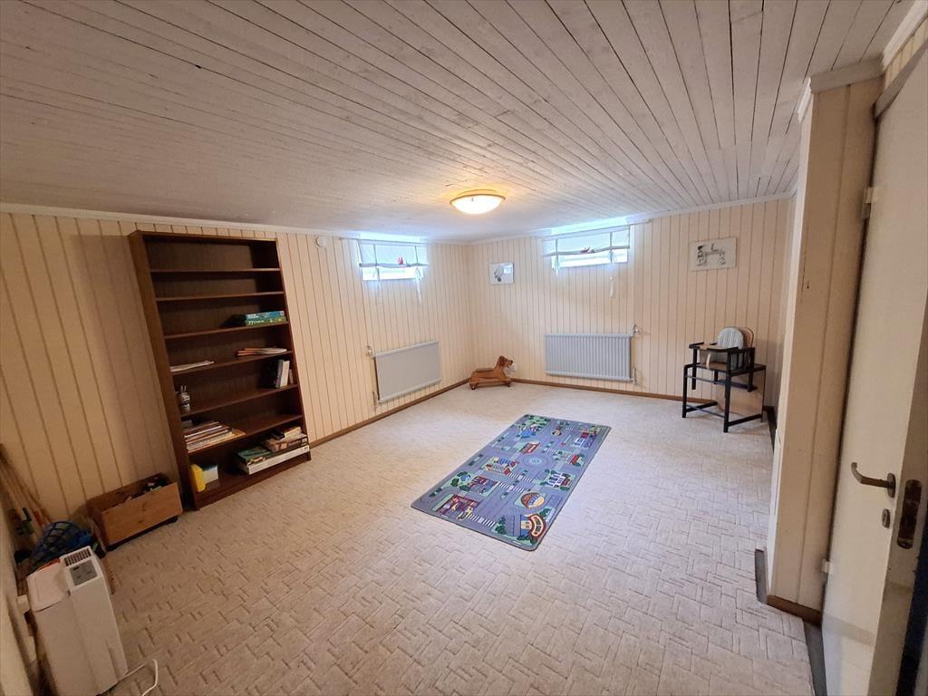Dette 120 m² store, flotte sommerhus, blev bygget i 70'erne, og er siden blevet gennemgribende renoveret både i stueetagen og i kælderen. I stueetagen er en stor stue, med et hyggeligt siddehjørne, tv og kamin. Det moderne køkken er udstyret med elkomfur, mikroovn, køleskab med fryser og opvaskemaskine samt spisehjørne. Badeværelset, som blev renoveret i 2022 indeholder bruser, håndvask, toilet og håndklædevarmer. Fra entréen er der adgang til to værelser, et med en enkeltseng og et med to enkeltsenge. I forlængelse af køkkenet er et værelse med en dobbelt sovesofa og et skrivebord. Fra køkkenet er der også adgang til en udestue med havemøbler. I kælderen er der et stort legerum med masser af legetøj, et fjerdre soveværelse med to enkeltsenge, et gæste toilet, forskellige funktionelle rum, så som varme- og opbevaringsrum med blandt andet endnu en fryser og et vaskerum med vaskemaskine og tørretumbler. Huset har varmt og koldt vand og kan opvarmes med centralvarme eller varmepumpe. Til huset hører også to gode voksencykler med 21 gear, havemøbler, en parasol, en rejseseng til et barn og en barnestol. Der er gratis Wi-Fi i huset.