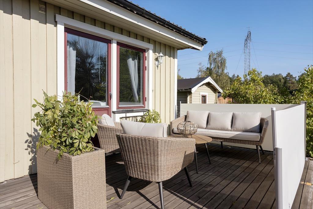 Feriehuset blev totalrenoveret i 2023 og ligger på en ca 1.000 m² stor grund i et etableret boligområde. Huset har et boligareal på 115 m² med plads til 4 voksne og 1 barn op til 11 år. Der er tre soveværelser, hvoraf to er indrettet med en dobbeltseng, det tredje med en enkeltseng. Det rummelige badeværelse har bruser, toilet og håndvask, derudover er der et separat gæstetoilet i entréen. Det moderne køkken er udstyret med elektrisk komfur med glaskeramik-kogeplader og ovn, emhætte, køleskab, fryser, opvaskemaskine, mikroovn, kaffemaskine, elkedel og spiseplads med to stole, bord og bænk. I den rummelige opholdsstue er der et ekstra spisebord med plads til 6 personer, en stor hjørnesofa, TV (med svenske kanaler) og en brændeovn. Fra opholdsstuen er der adgang til en udestue med bord og siddepladser, og herfra videre udgang til terrassen med indbydende havemøbler samt en stenovn i haven. Ferienhuset har også et praktisk bryggers med vaskemaskine. Der er desuden gratis internet.