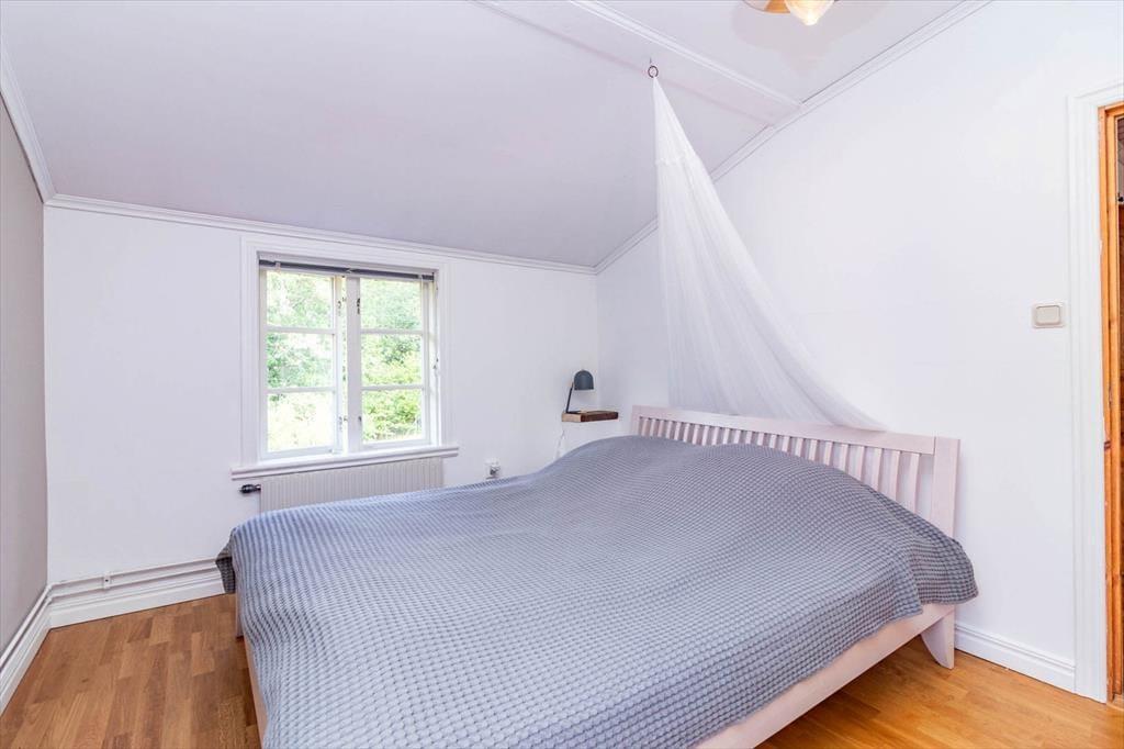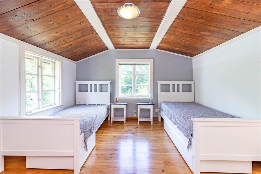 På øverste etage finder du tre soveværelser: et med to enkeltsenge (hver 80 cm), et med en dobbeltseng på 140 cm og et med en dobbeltseng, der er 160 cm bred. Et badeværelse med toilet og bruser samt et gæstetoilet, vaskemaskine og tørretumbler i kælderen fuldender udstyret.