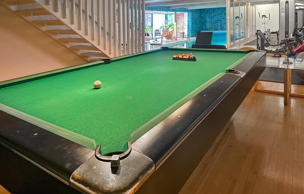 I stueetagen ligger det store poolrum med billard, motionsrum, sauna og naturligvis swimmingpoolen.