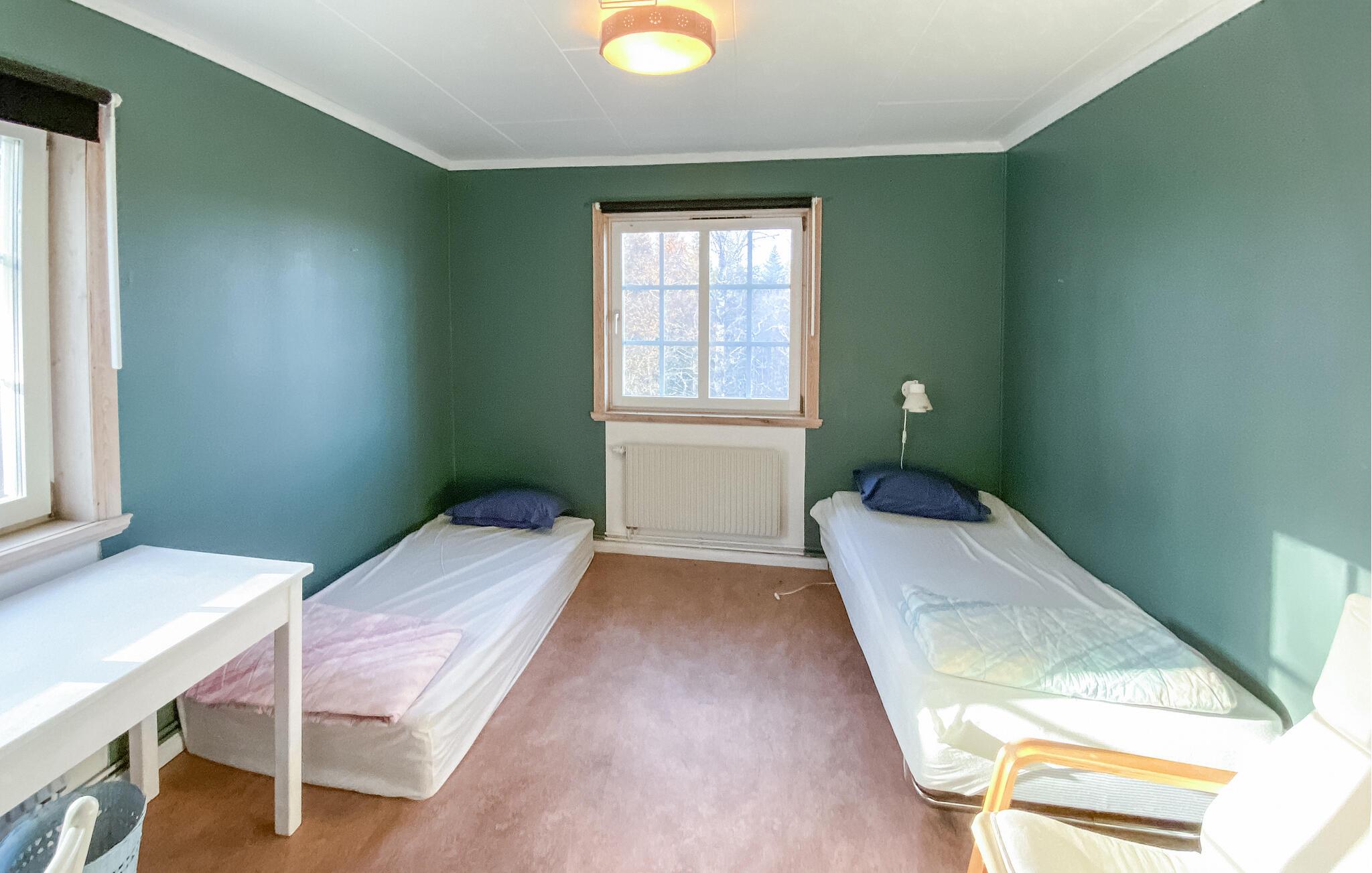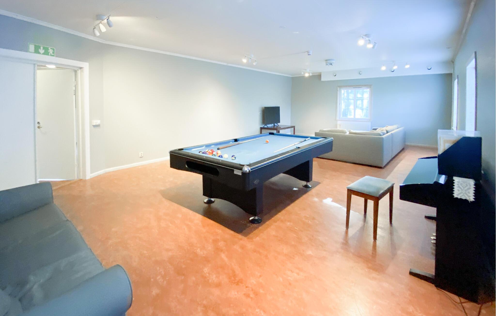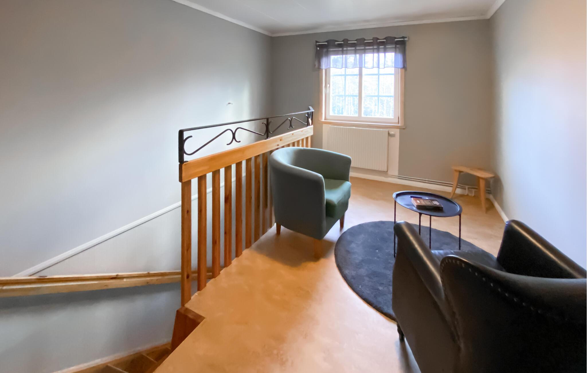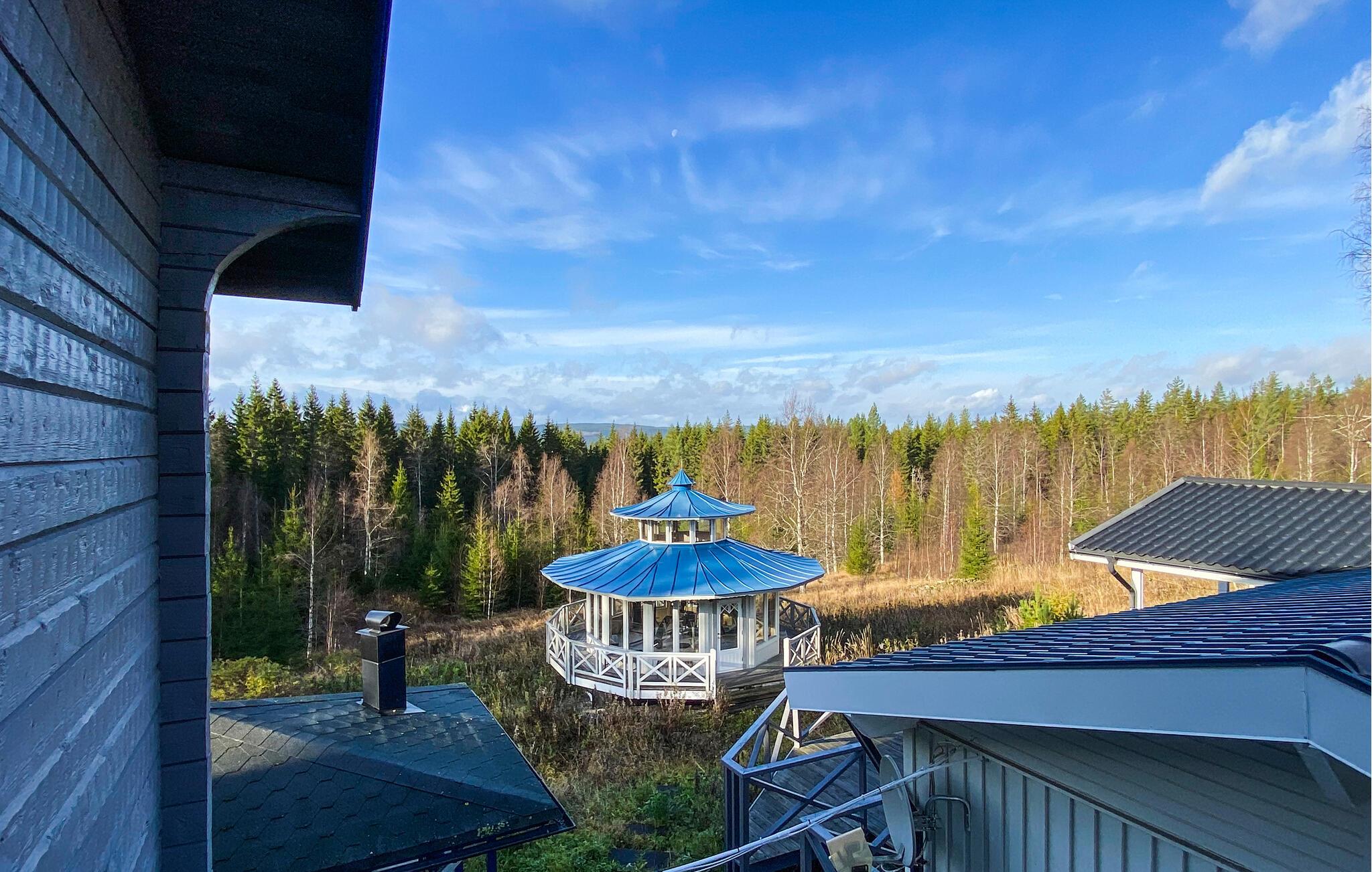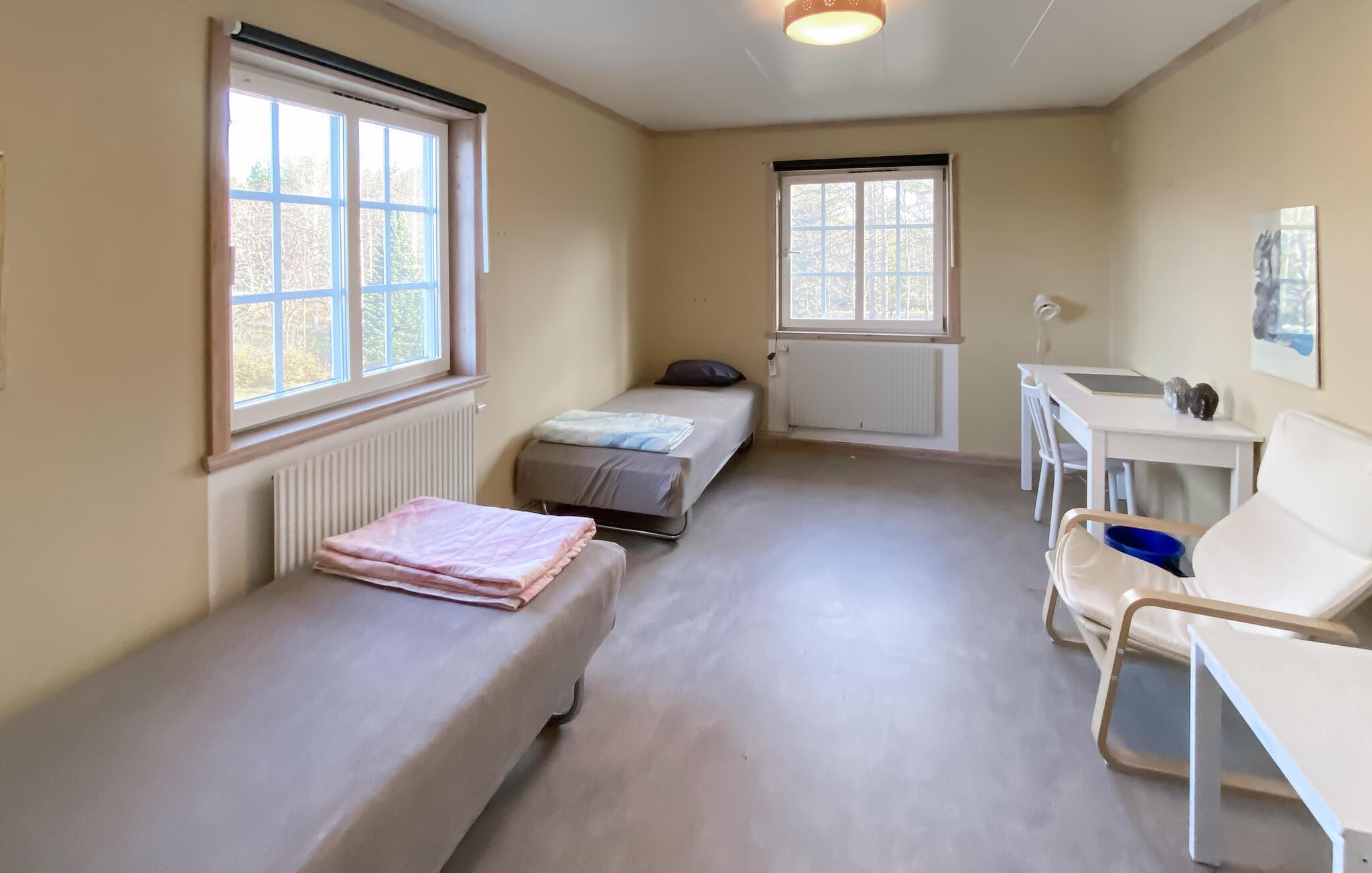 Denne rummelige hytte, beliggende i roen i de svenske skove, tilbyder jer en vidunderlig pause fra hverdagen. På verandaen kan I nyde udsigten over baghaven og den omkringliggende natur - ideel til at tilbringe tid sammen med familie eller venner. De mange soveværelser gør boligen perfekt til familiesammenkomster eller grupperejser. Indenfor finder I en stor spisestue, et veludstyret køkken og et poolbord til sociale aftener. Fitnessrummet lægger op til at holde jer aktiv selv på ferie.