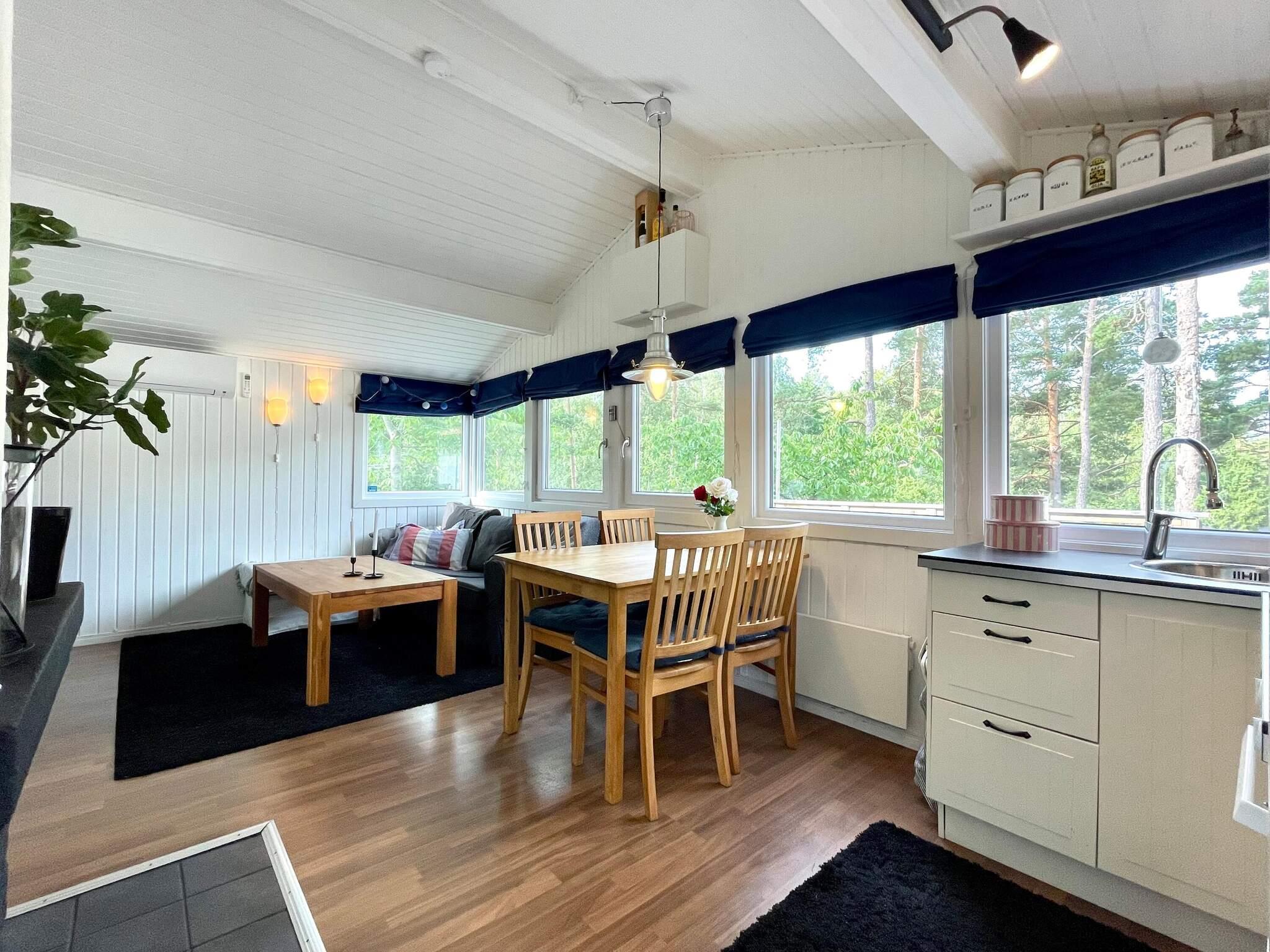 Ni har två sovrum med förhängen, det ena med en 140cm bred dubbelsäng, det andra med en våningssäng. Badrummet är utrustad med wc, handfat och dusch. I gäststugan som ni når via altanen finns en bäddsoffa. Ön Oknö är en härlig semesteridyll som ni når via en kort bilbro. Läget erbjuder fina badmöjligheter med badplatser och promenadstråk i fin natur kring ön.