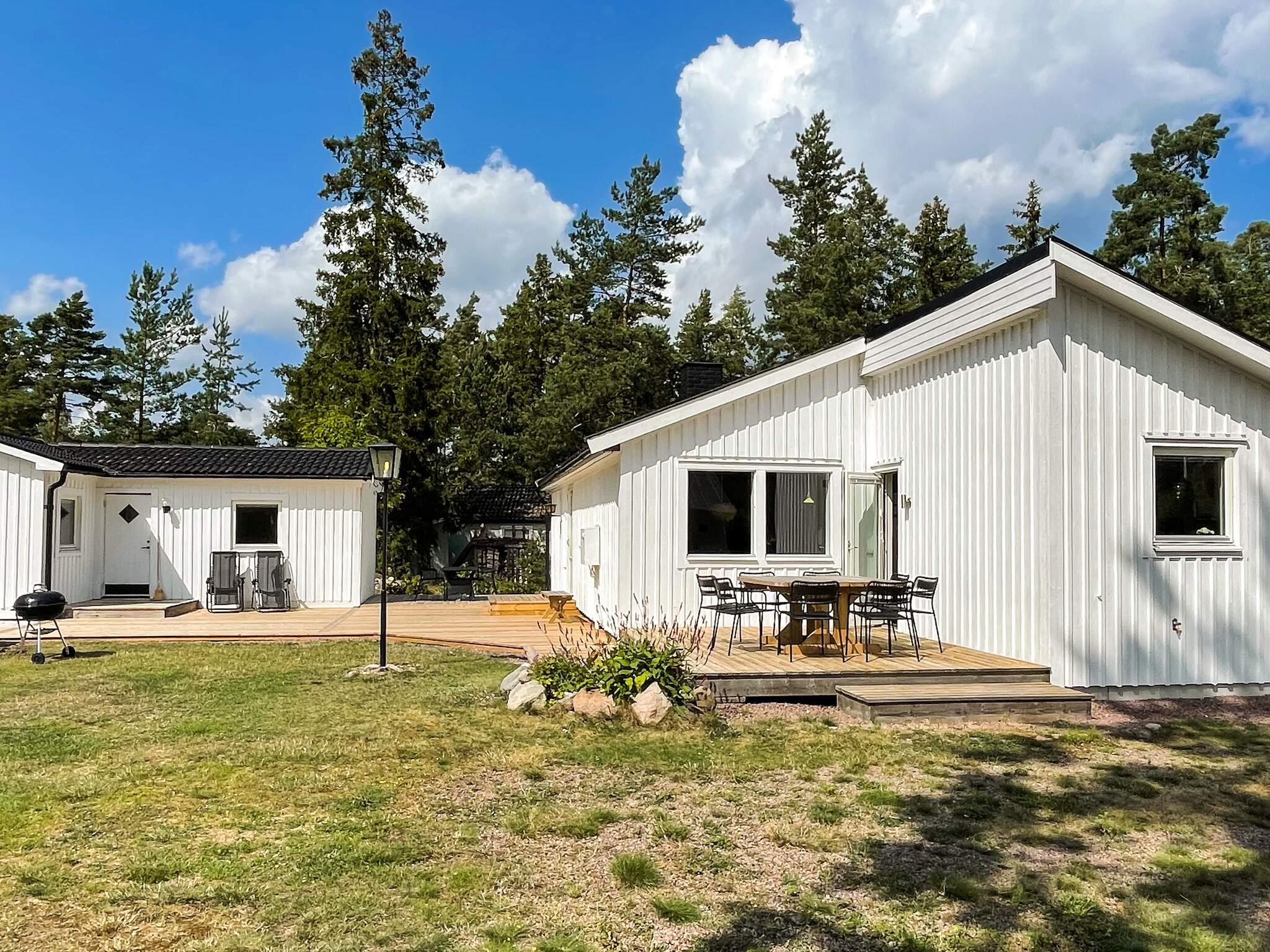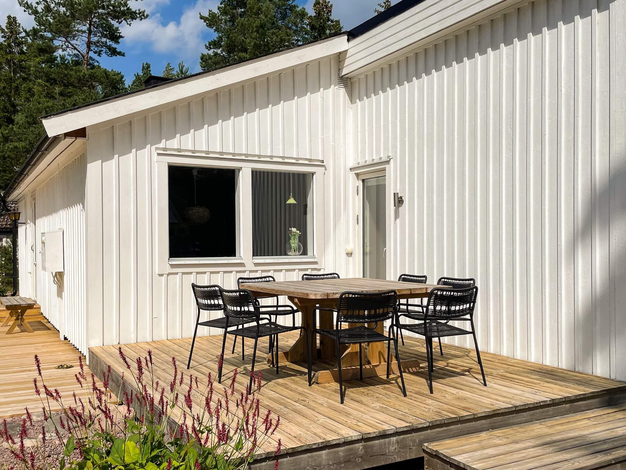 Ni har bara 170m ner till svalkande dopp från bryggan och den fina badstranden är belägen strax intill. Ni har en trevlig inglasad veranda samt en stor trädgård med altan där ni kan umgås och njuta av härliga sommardagar. Det stora huset har ett stort öppet sällskapsrum där ni har en vardagsrumsdel där ni kan njuta av att se havet glittra mellan träden, samt en trevlig matplats framför braskaminen och ett fräscht kök. Smart-tv och Wifi finns.