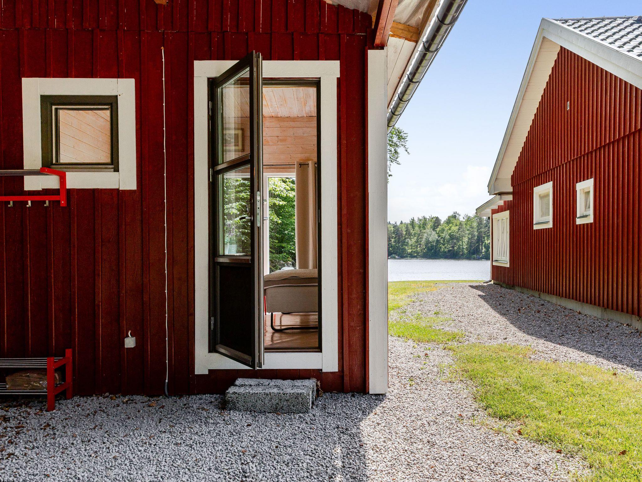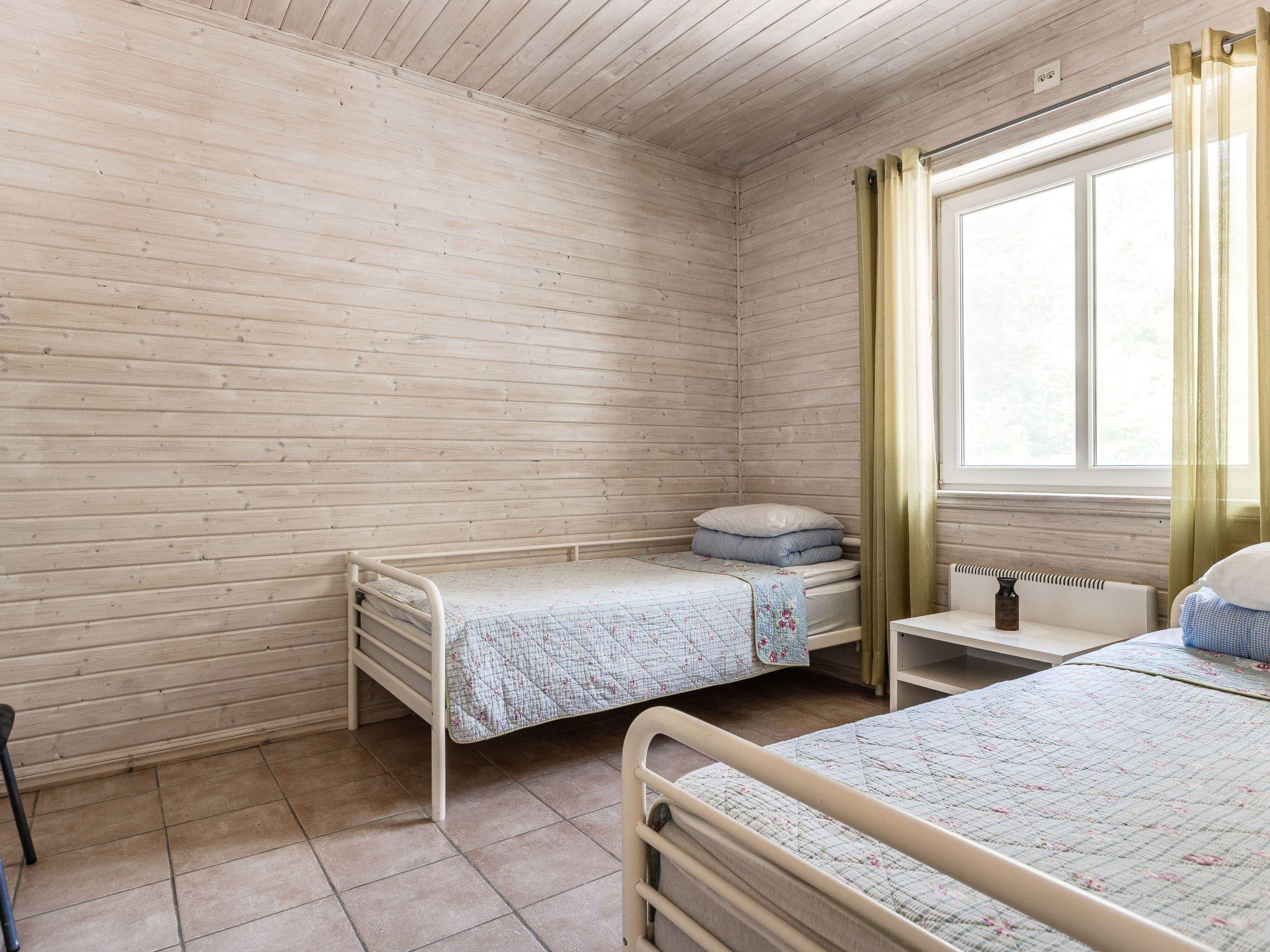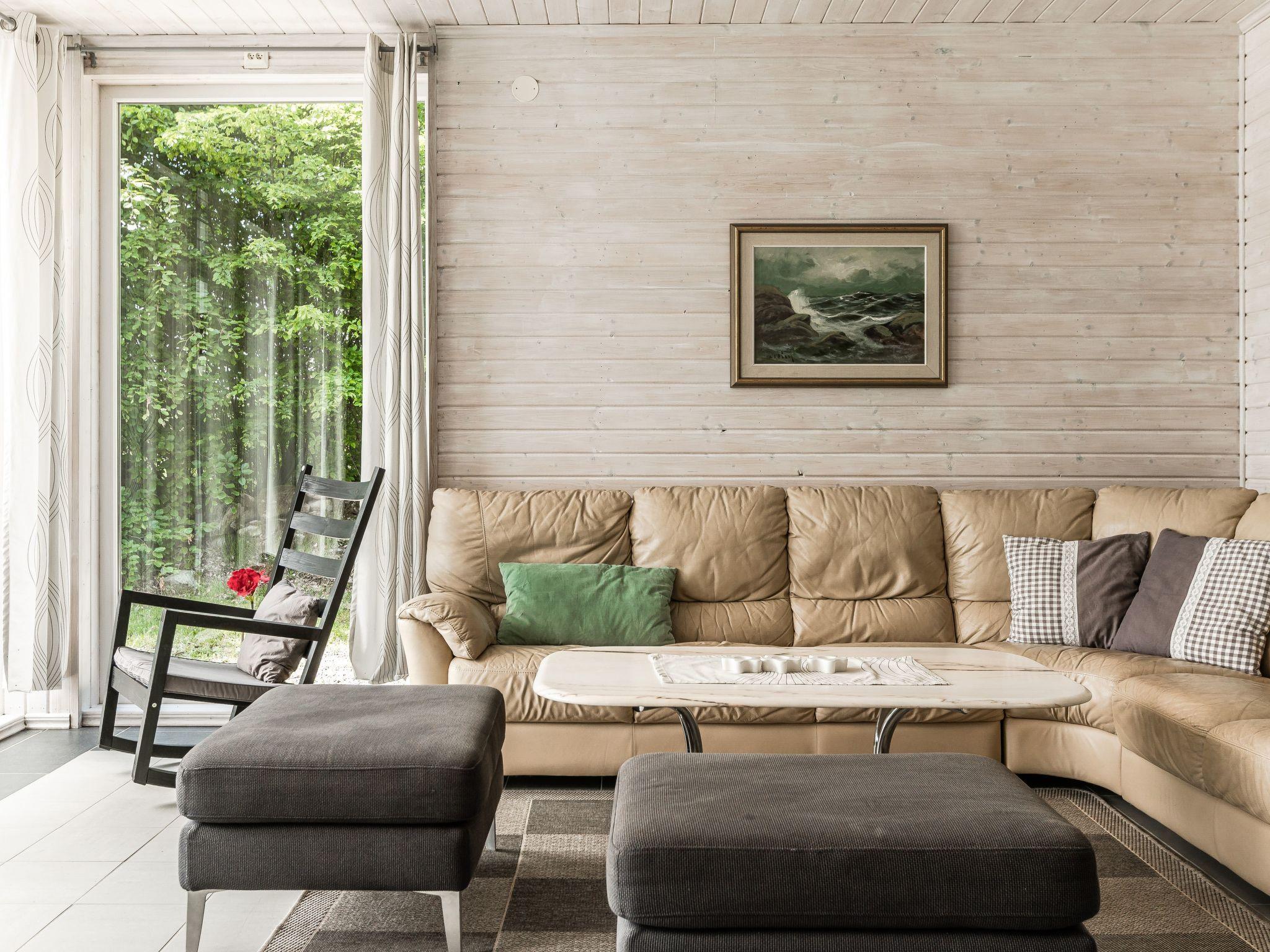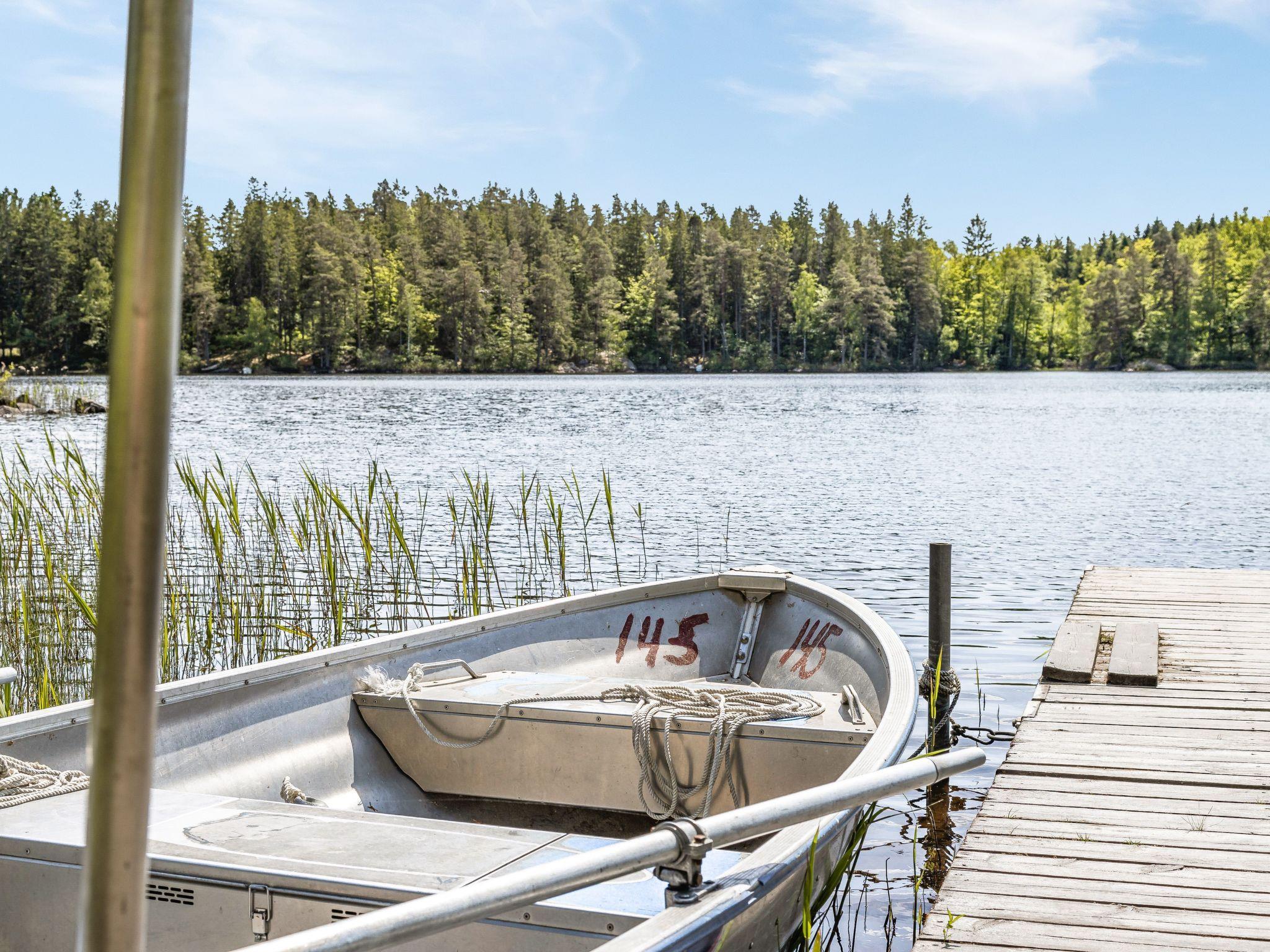 "Erikstorp 145", 3-room house 88 m2. Object suitable for 6 adults. Beautiful and cosy furnishings: living/sleeping room with 1 double sofabed, Scandinavian wood stove and satellite TV. Exit to the veranda. 1 room with 1 double bed. 1 room with 2 beds. Open kitchen (oven, 4 ceramic glass hob hotplates, microwave, freezer, electric coffee machine) with dining table. Shower/WC, Sauna. Electric heating. Wooden floors. View of the lake. Please note: one double bedroom is outside the apartment. Non-smokers only. Freezer approx. 100 l. Only allowed to use the owners wood for the fireplace.