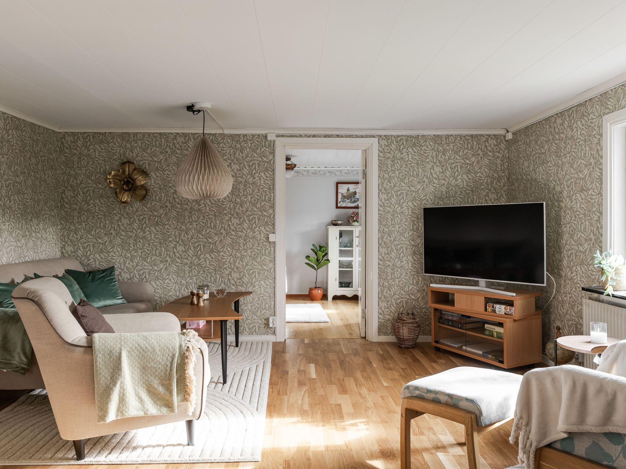 "Skjutsmåla", 3-room house 72 m2. Object suitable for 3 adults + 2 children. Living room with Scandinavian wood stove and TV. 1 room with 1 double bed. 1 room with 1 bed and 1 double bed. Large kitchen (oven, 4 ceramic glass hob hotplates, toaster, kettle, microwave, freezer, electric coffee machine). Shower/WC. Electric heating. Wooden floors. Facilities: washing machine, children's high chair. Please note: non-smoking house. Pets are not allowed.