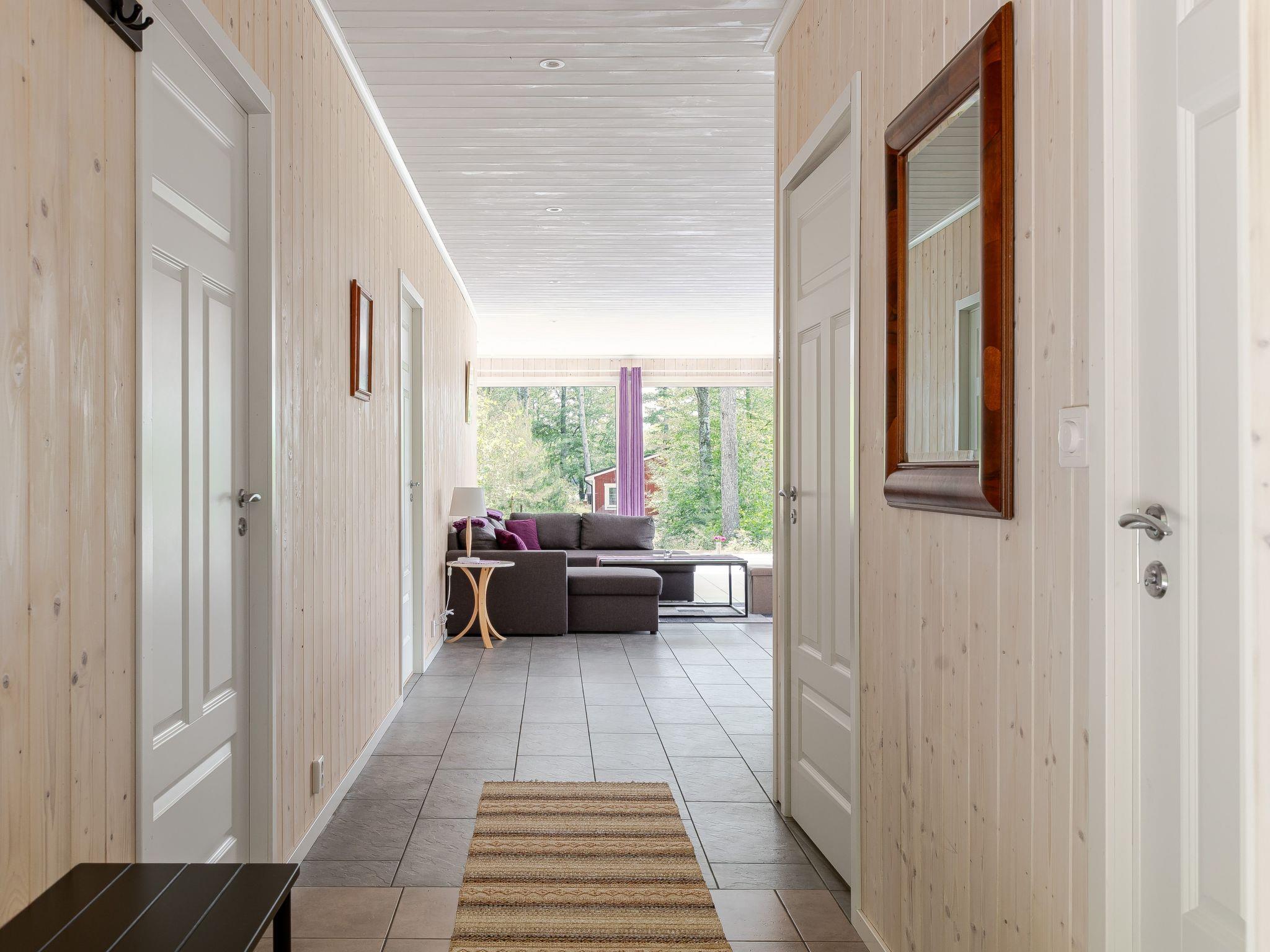 "Erikstorp 149", 4-room house 150 m2. Object suitable for 8 adults. Beautiful and modern furnishings: living/dining room with satellite TV. Exit to the veranda. 1 room with 1 double bed. 2 rooms, each room with 2 beds. Living/sleeping room with 1 sofabed. Kitchen-/living room (oven, dishwasher, 4 ceramic glass hob hotplates, microwave, freezer, electric coffee machine) with dining table. Shower/WC, Sauna. Electric heating. Very beautiful view of the lake. Facilities: washing machine. Please note: non-smokers only. Freezer approx. 100 l. Only allowed to use the owners wood for the fireplace.