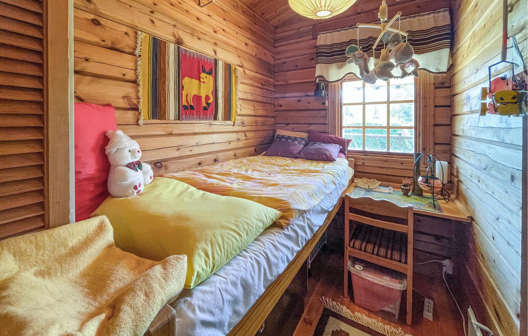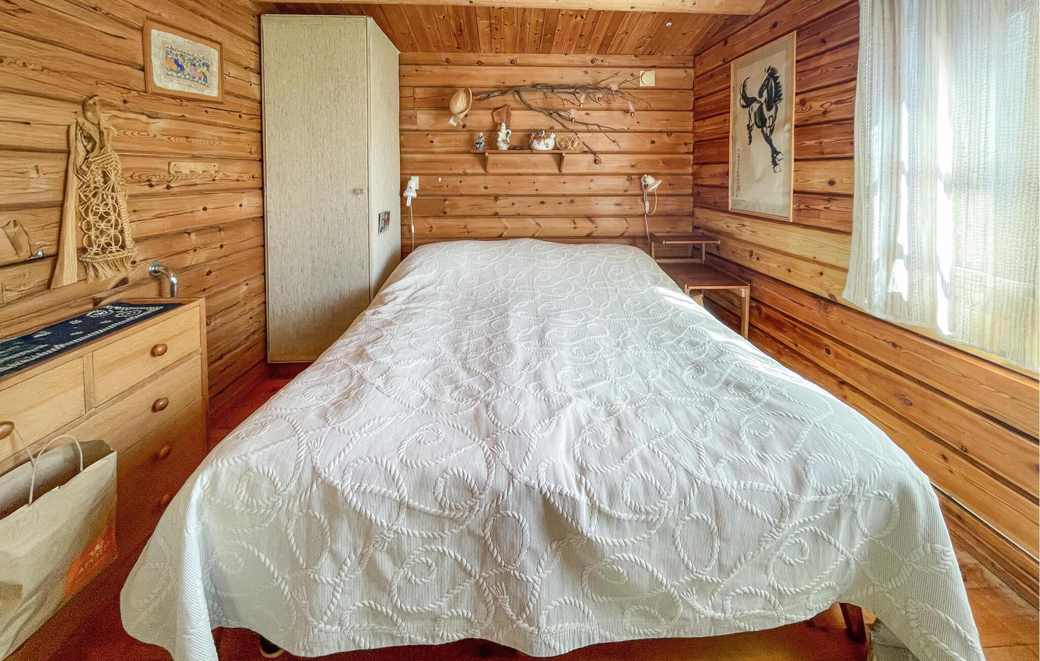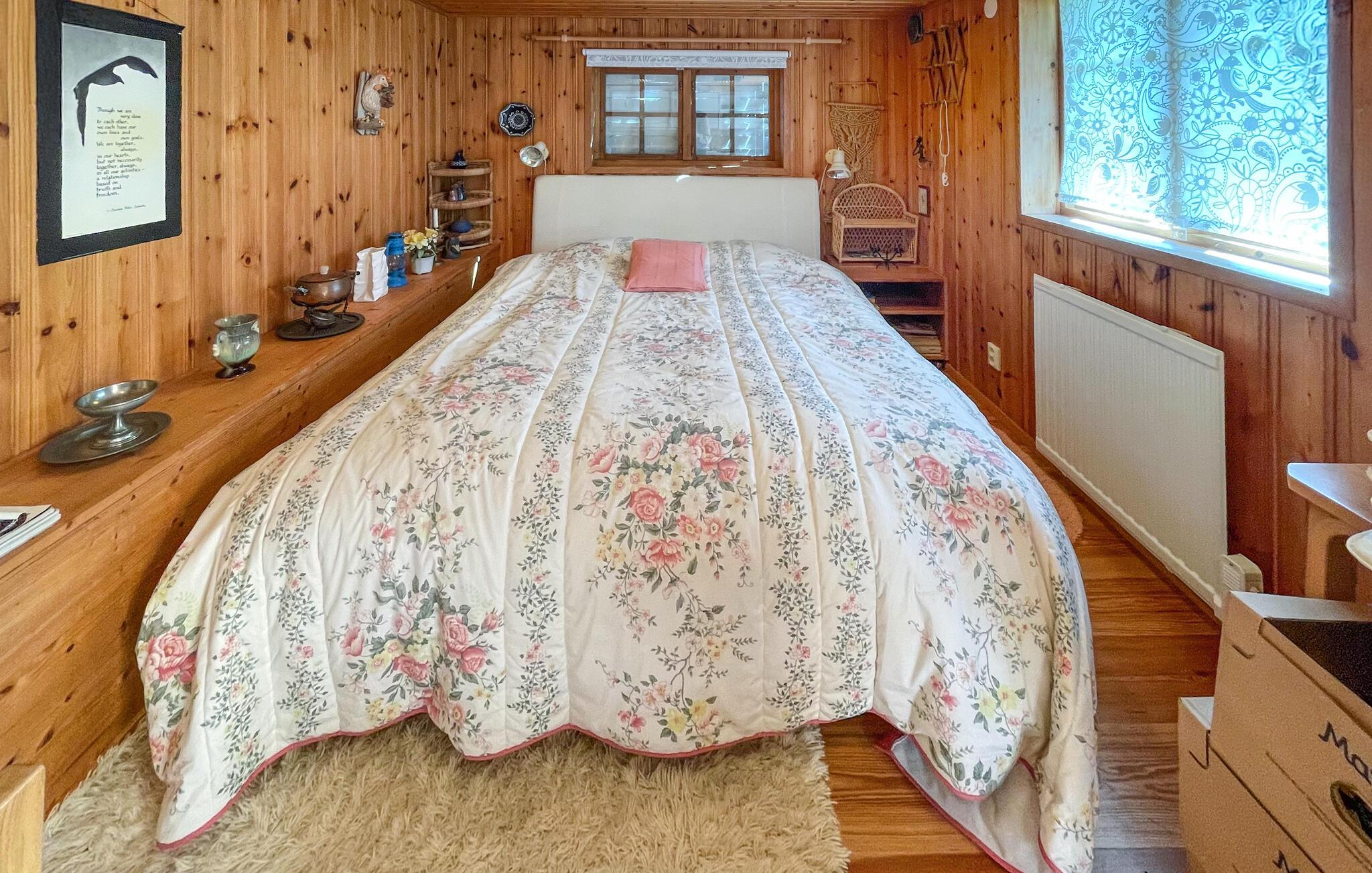 Nyd roen i dette karakterfulde træhus med udsigt over landskabet og nærhed til havet. Dette feriehus tilbyder ideelle betingelser for en afslappende ferie for op til to familier. Træd ind i det kærligt og hjemlige interiør med masser af træ og traditionelle møbler. Sæt jer ned i de komfortable møbler i opholdsstuen, eller saml måltiderne ved spisebordet med plads til alle og udsigt over den omkringliggende natur. Brug det traditionelle, åbne køkken til hyggelige madlavningsaftener. Der er også et lille tilflugtssted med skrivebord og sofa. Tilbring tid på den rummelige overdækkede terrasse. Læs en bog i skyggen, nyd jeres morgenkaffe med udsigt over træerne, og få et glimt af havets glitrende blå farve i horisonten. Den naturlige have inviterer jer til at blive hængende, og en lille sti fører ned gennem den frodige vegetation. Oplev de charmerende omgivelser nær Onsala med deres mangfoldige muligheder. Besøg de nærliggende strande, eller tag på ture til Göteborg eller Borås. Begge byer er inden for rækkevidde. Familier vil finde underholdning i Liseberg forlystelsespark eller Universeum Science Center. Det nærliggende hav er også ideelt til svømning.