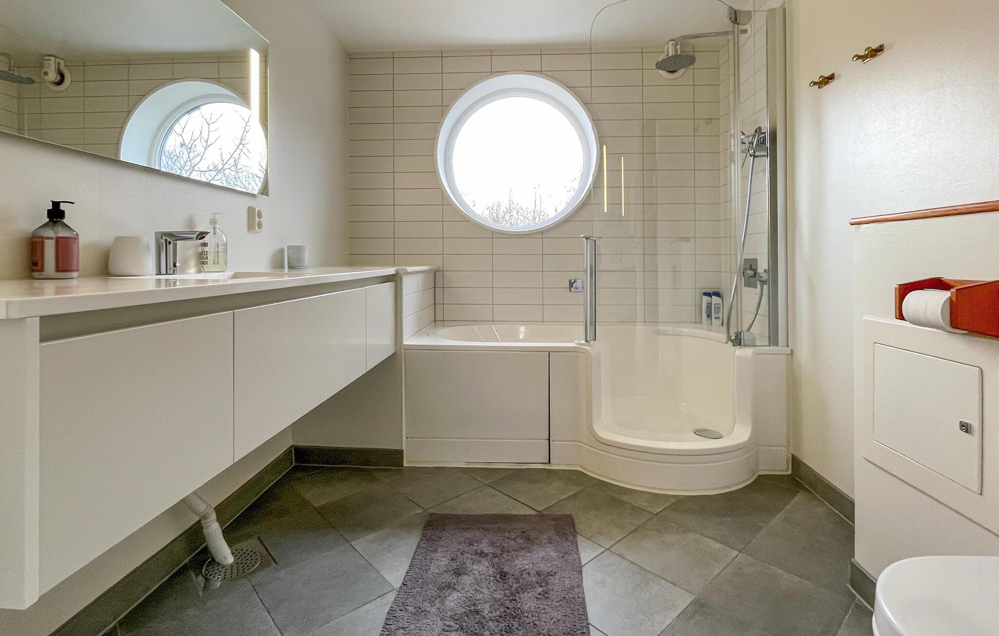 Badeværelse (nr. 1) - WC. Varmt og koldt vand. Bruser og badekar