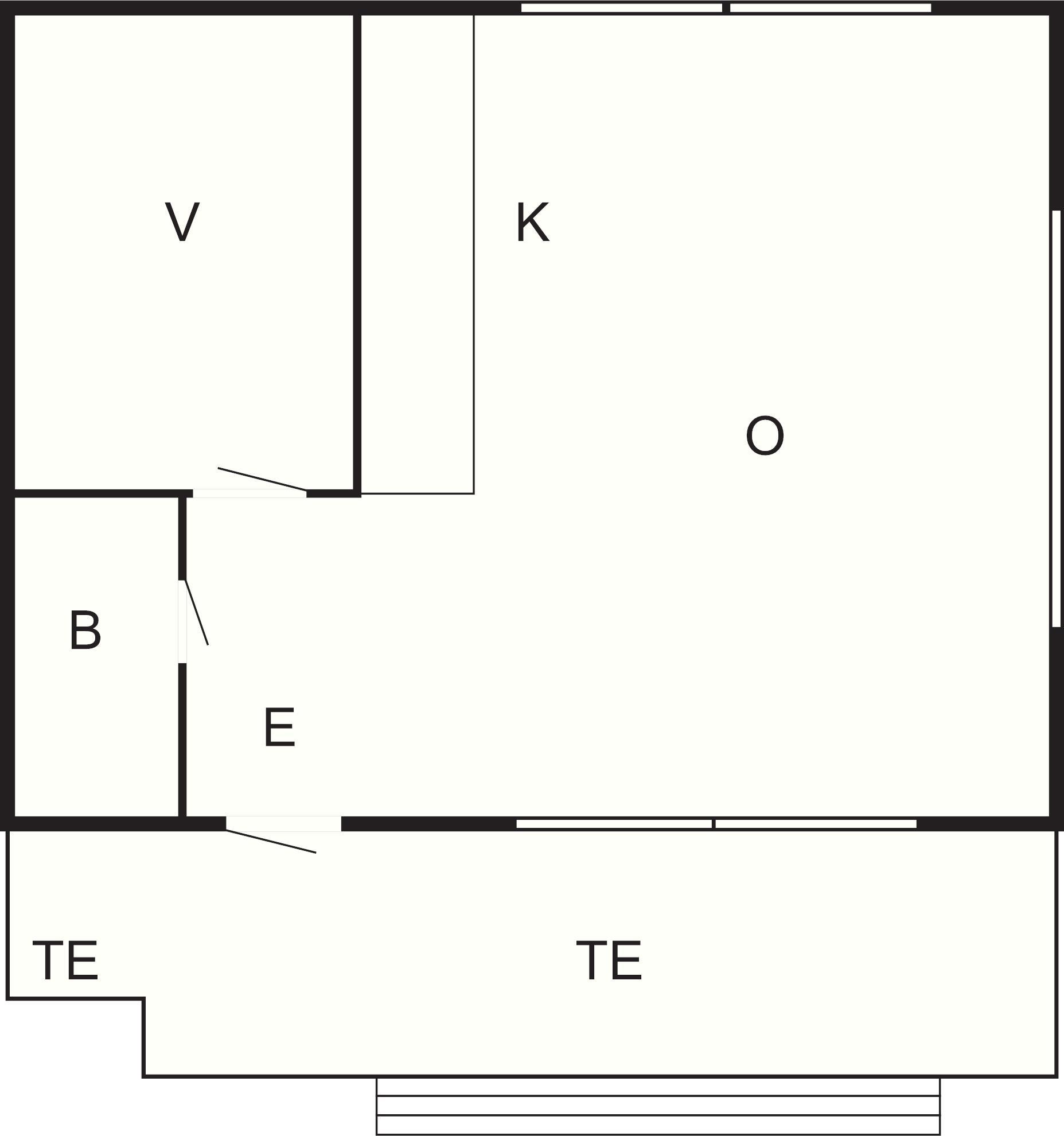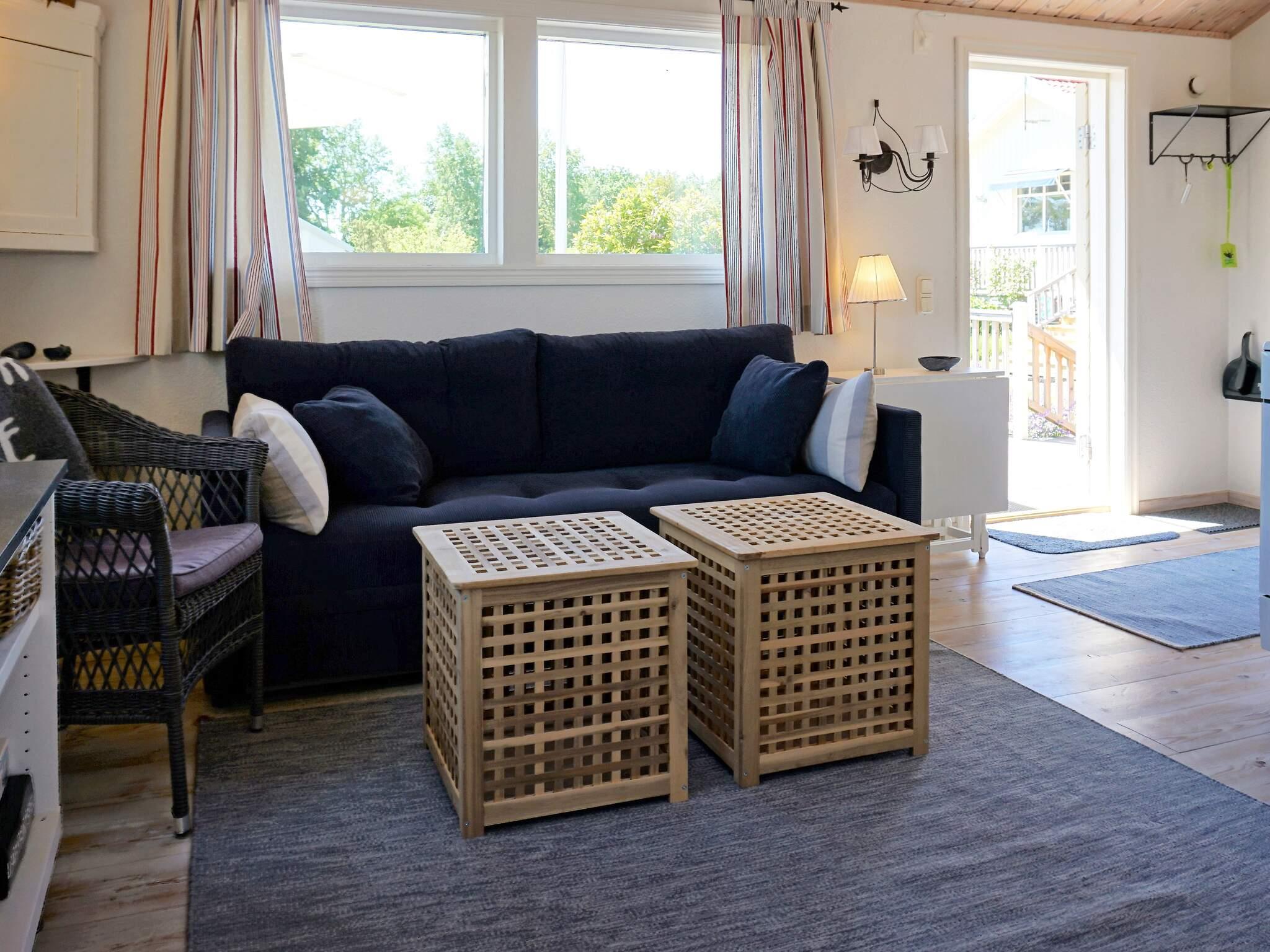 Stugan känns väldigt rymlig och luftig tack vare att det är öppet hela vägen uppe i nock. Stora fönster med utsikt inifrån både ut mot altan samt havet i fjärran. Storstugan har ett kombinerat kök med vardagsrum. Köket har en trevlig matplats, kyl m frysfack, micro, spis, kaffebryggare och vattenkokare. För den yngsta finns en barnstol. Här finns en bäddsoffa för 2 personer som enkelt bäddas ut till kvällen (150*190cm).