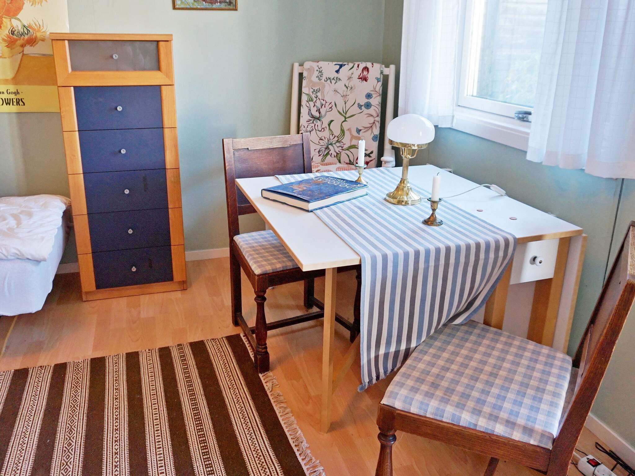 Mitt emot huset finns den rymliga gäststugan med två sängar, ett litet kök och i gäststugan finns också bastun och dusch. Tomten vetter mot en äng där man kan få syn på både rådjur och älgar i skymningen. Ca 700 m från huset finns en fin långgrund badplats med brygga, lite här och där finns även klippor att bada ifrån. Det finns flera restauranger på ön om man inte vill äta hemma.