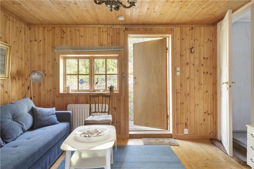 Et meget attraktivt, lille feriehus i skandinavisk stil, tæt på et meget smukt badeområde i en indlandssø og kun få kilometer fra skageraks øhav. I skærgården, nord for Göteborg, på øen Orust, som er Sveriges tredjestørste ø, ligger dette feriehus sammen med udlejerens private bolig. Øen er forbundet med fastlandet via broer. Feriehuset ligger knap 300 meter fra et meget smukt badeområde i Höggeröd vatten (indlandssø) og ca. 3 km fra den nærmeste Skagerakfjord. Huset ligger i absolut rolige omgivelser, i et kuperet terræn, på en stor grund, som grænser op til skoven. Der findes indkøbsmuligheder, posthus, hæveautomat og restauranter i Henån, ca 9 km fra huset.