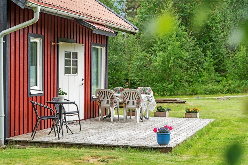 Sommerhus i Orust, Vestsverige, med plads til 4 voksne og 1 husdyr. Der er en hyggelig indretning.