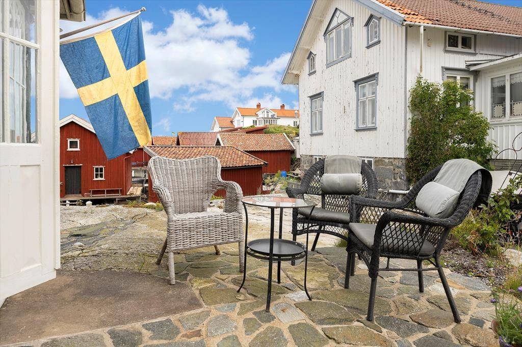 Lejlighed i Orust, Vestsverige, med plads til 6 voksne. Der er en hyggelig indretning med bl.a. brændeovn.