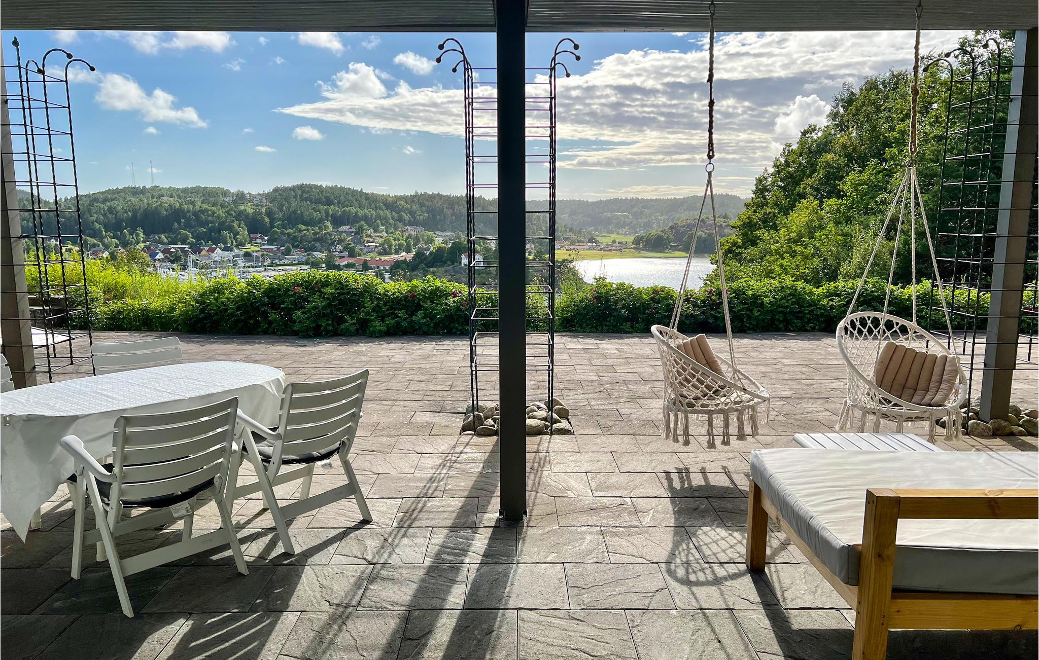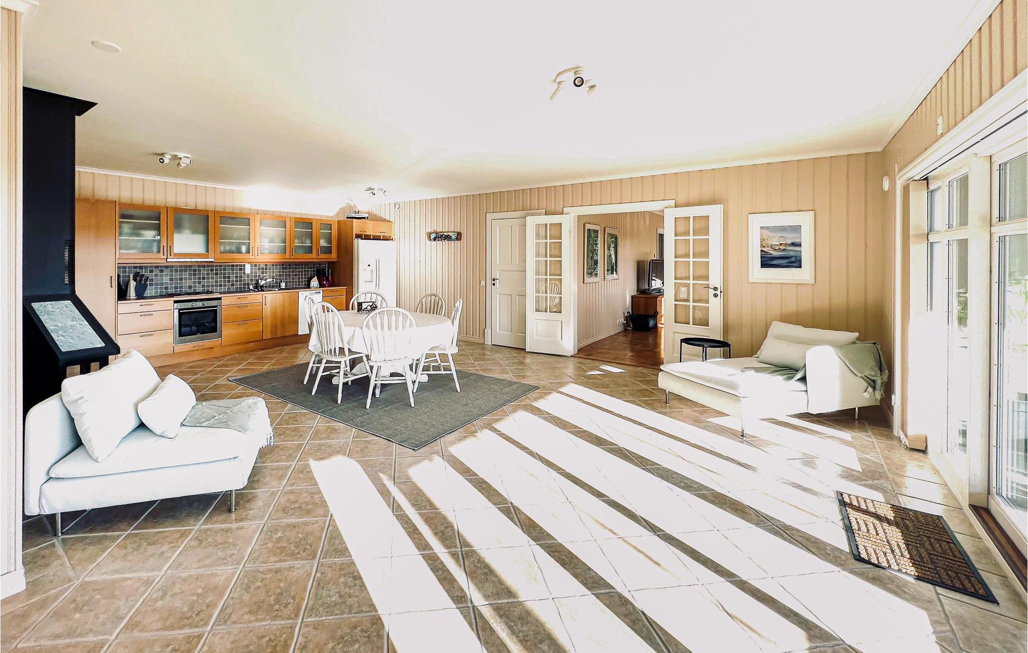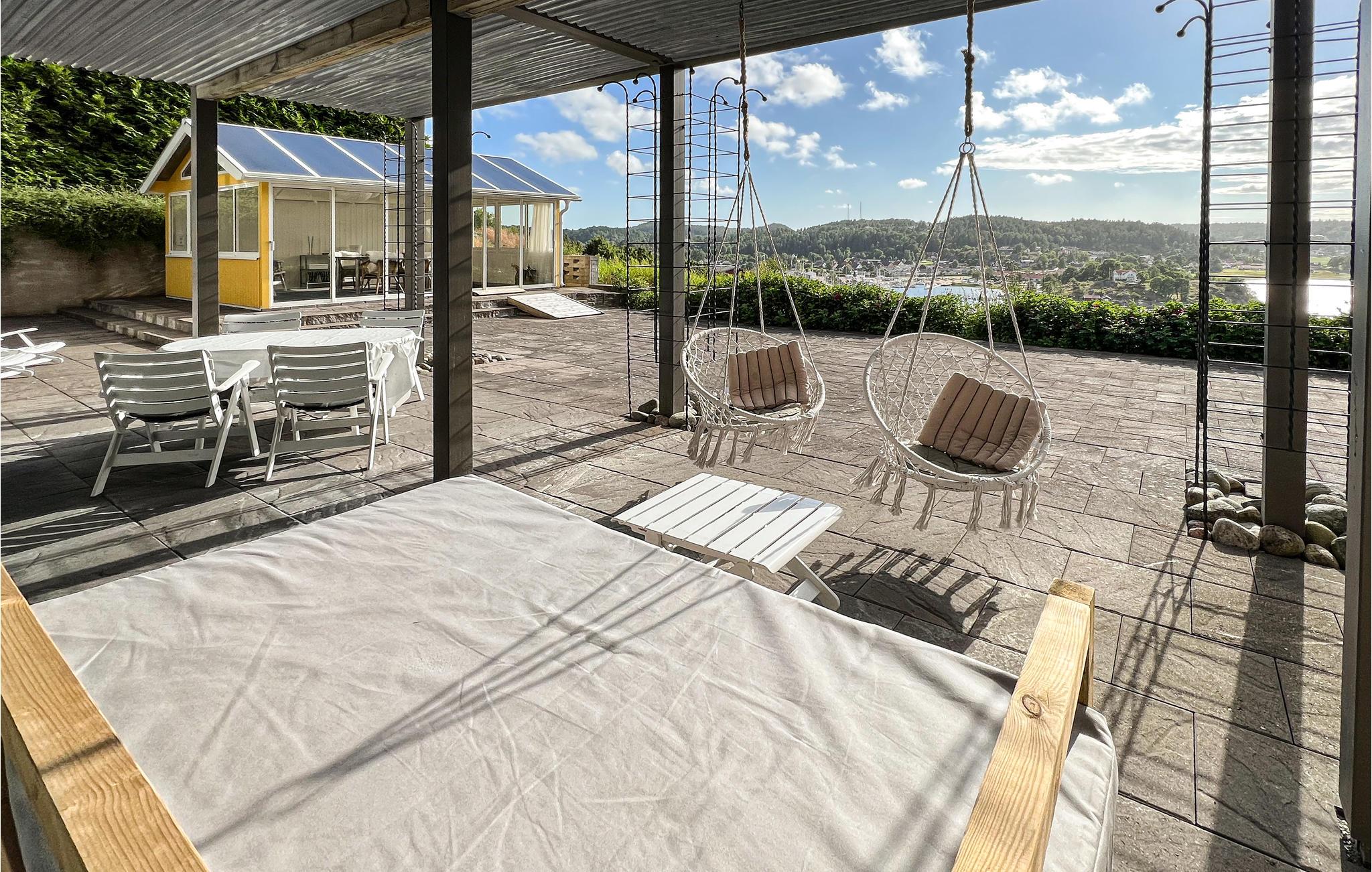 Dette feriehus ligger på en stor naturgrund nær Henån med god plads til sjov og leg. I det store spisekøkken er der brændeovn, som spreder behagelig varme på kølige dage og aftener. På den overdækkede terrasse med loungemøbler kan I nyde jeres måltider udendørs fra morgen til aften. På solrige dage kan I slænge jer i solstolene i den fælles have.