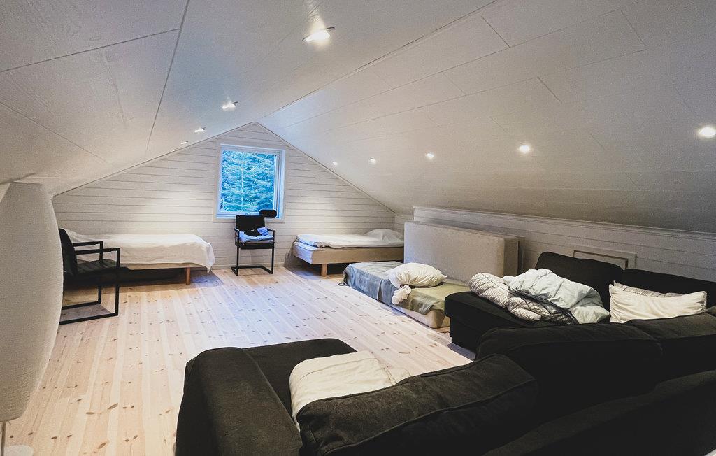 Velkommen til vildmarken og denne hyggelige hytte med nærhed til havet! Hytten er komfortabel og moderne udstyret med alt det, I behøver, til en ubekymret ferie. Tilbered og nyd lækre feriemåltider sammen og slap dejligt af foran brændeovnen efter en aktiv dag i naturen. Nyd solens stråler på terrassen og udsigten over landskabet. Børnene og deres firbenede venner kan lege uforstyrret på grunden omkring huset.