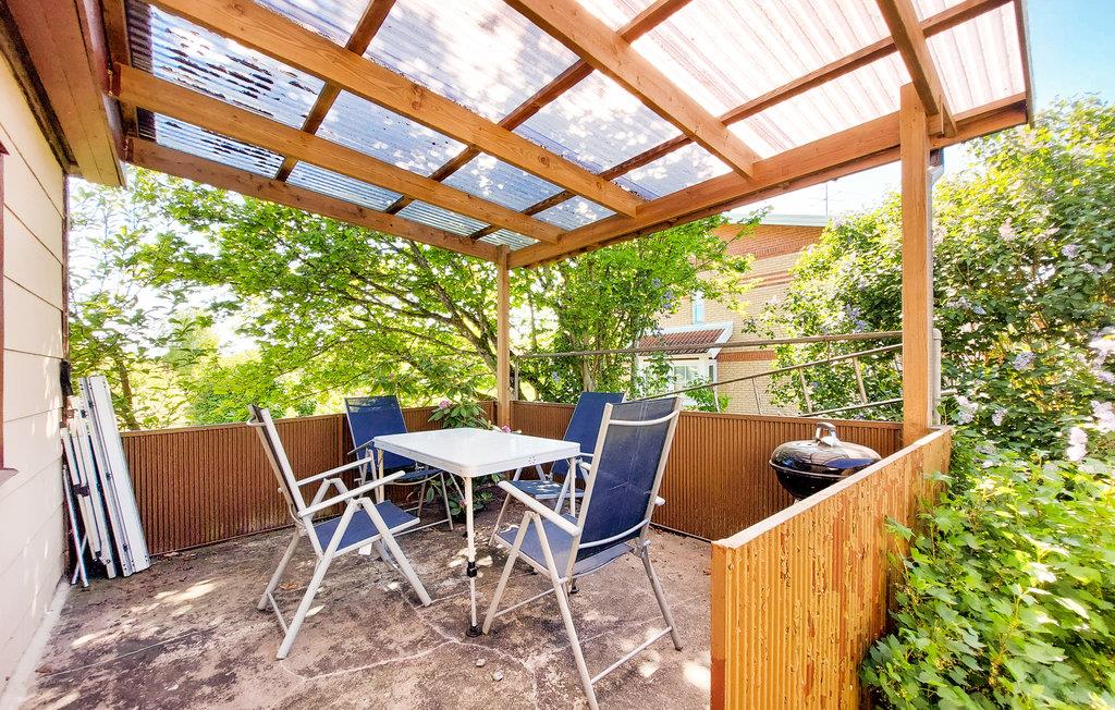 Feriehuset ligger på en lille naturgrund med flere terrasser og hjørner, der indbyder til at blive hængende. Slå jer ned med jeres ferielæsning i løbet af dagen og føl jer godt tilpas i den rolige atmosfære. På verandaen finder I det perfekte sted for en stemningsfuld afslutning på dagen.