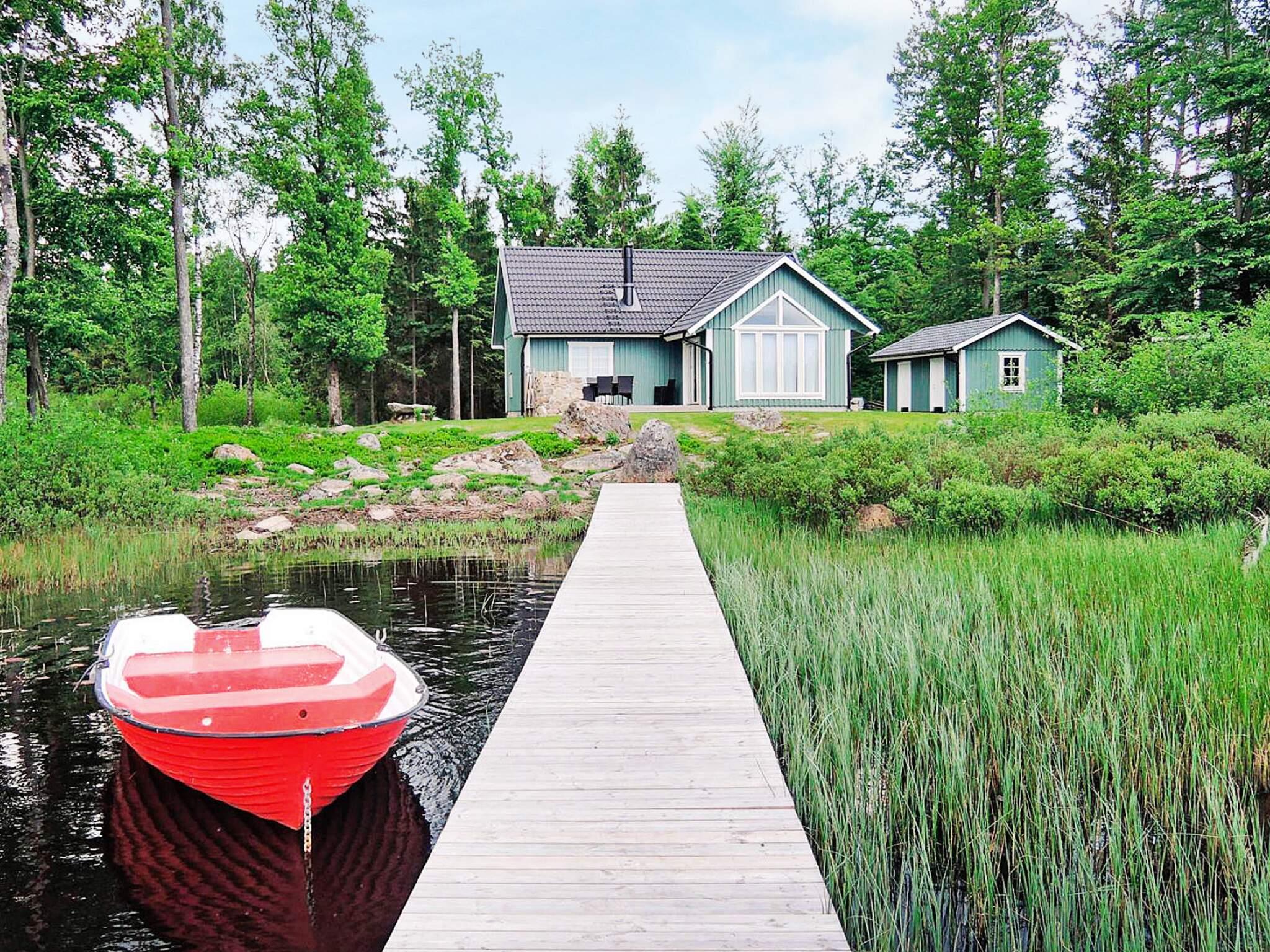 Vem vill inte det - en semester i fullständigt lugn och en exklusiv, avskild plats? Ditt fritidshus ligger på en egen udde, direkt vid sjön Skeingesjön. Just byggt, det är modernt och mycket smakfullt inrett och har en öppen spis för mysiga kvällar.