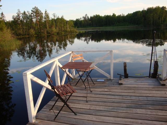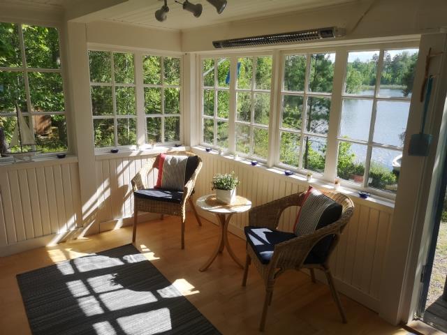Huset ligger helt alene og uforstyrret længst ude på en halvø. Der er en stor, glasinddækket veranda med sø-udsigt på 3 sider. Bådebroen ligger kun 10 meter fra huset. Her kan I sidde og nyde solnedgangen og samtidig fiske.