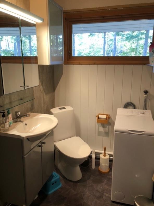 Der er 3 soveværelser. Et lidt større værelse med dobbeltseng og to lidt mindre værelser med en ekstrabred (120 cm respektive 140 cm) enkeltseng i hvert. Nyrenoveret toilet og brusebad (2021). Her er også vaskemaskine.