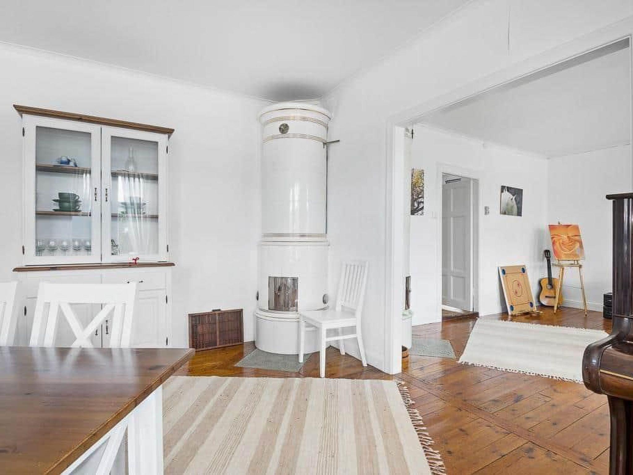 Renovated, spacious holiday home, situated on a road about 1 km outside the small village of Pauliström, in the middle of the nature of the Smaland highlands with many bathing and fishing lakes. The 1,300m2 garden invites you to linger. The stately rooms of the old village shop exude an elegant yet cosy ambience. Here you can enjoy your holiday. Whether in the south-facing living/dining room or in the north-facing kitchen, from where you can watch deer and hares in front of the forest. All rooms have beautiful tiled stoves.