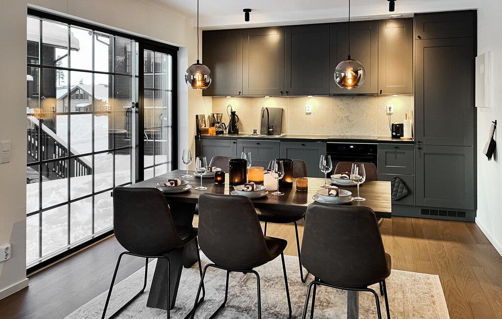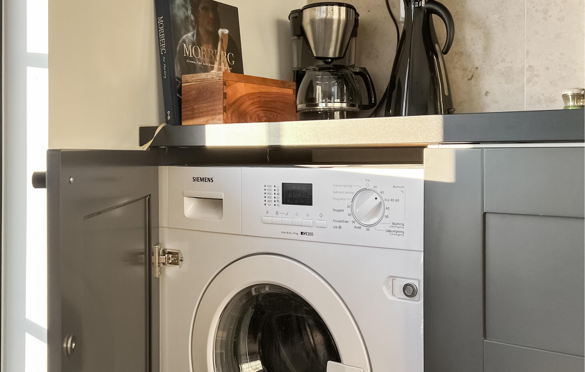 Denne stilfulde lejlighed består af en rummelig stue, der er udstyret med et komfortabelt opholdsområde. Nyd jeres ferie sammen her med sjove brætspil eller en god film. De store vinduespartier lukker masser af naturligt lys ind og giver samtidig en vidunderlig udsigt over naturen. Det åbne, moderne køkken er veludstyret og lægger op til at tilberede lækre måltider sammen.