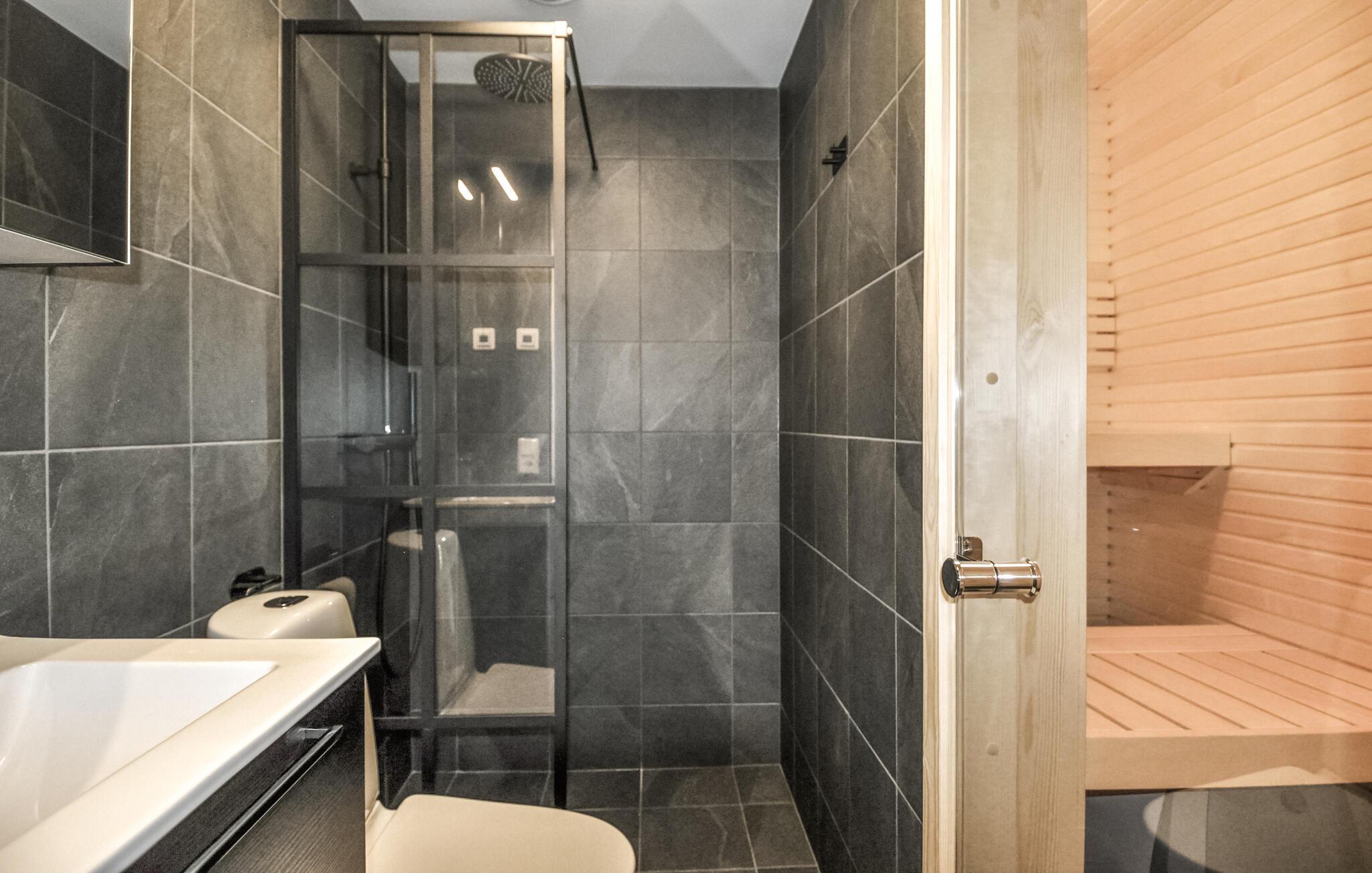 Efter en dag fyldt med eventyr kan I slappe vidunderligt af i jeres egen sauna og nyde varmen.