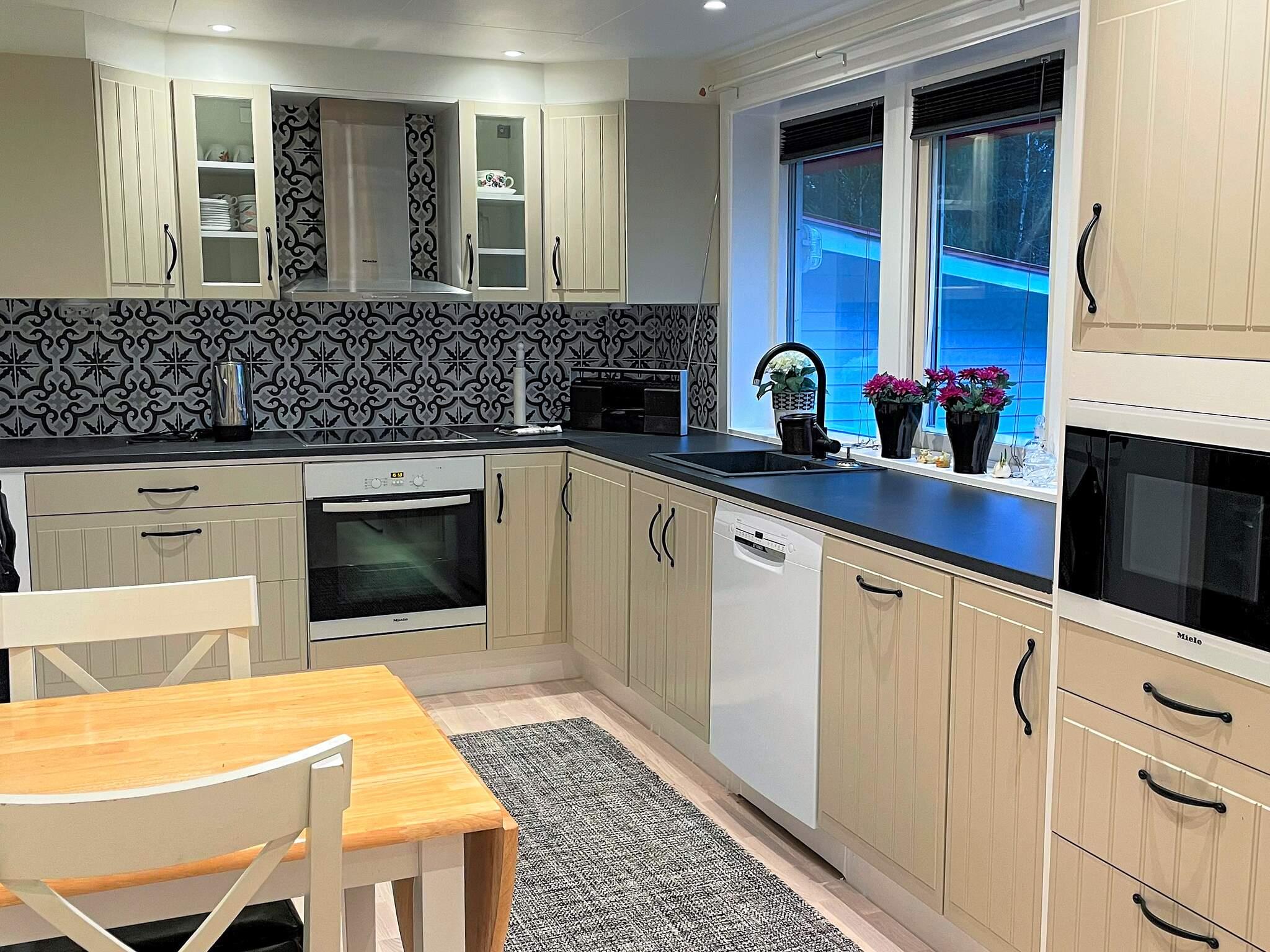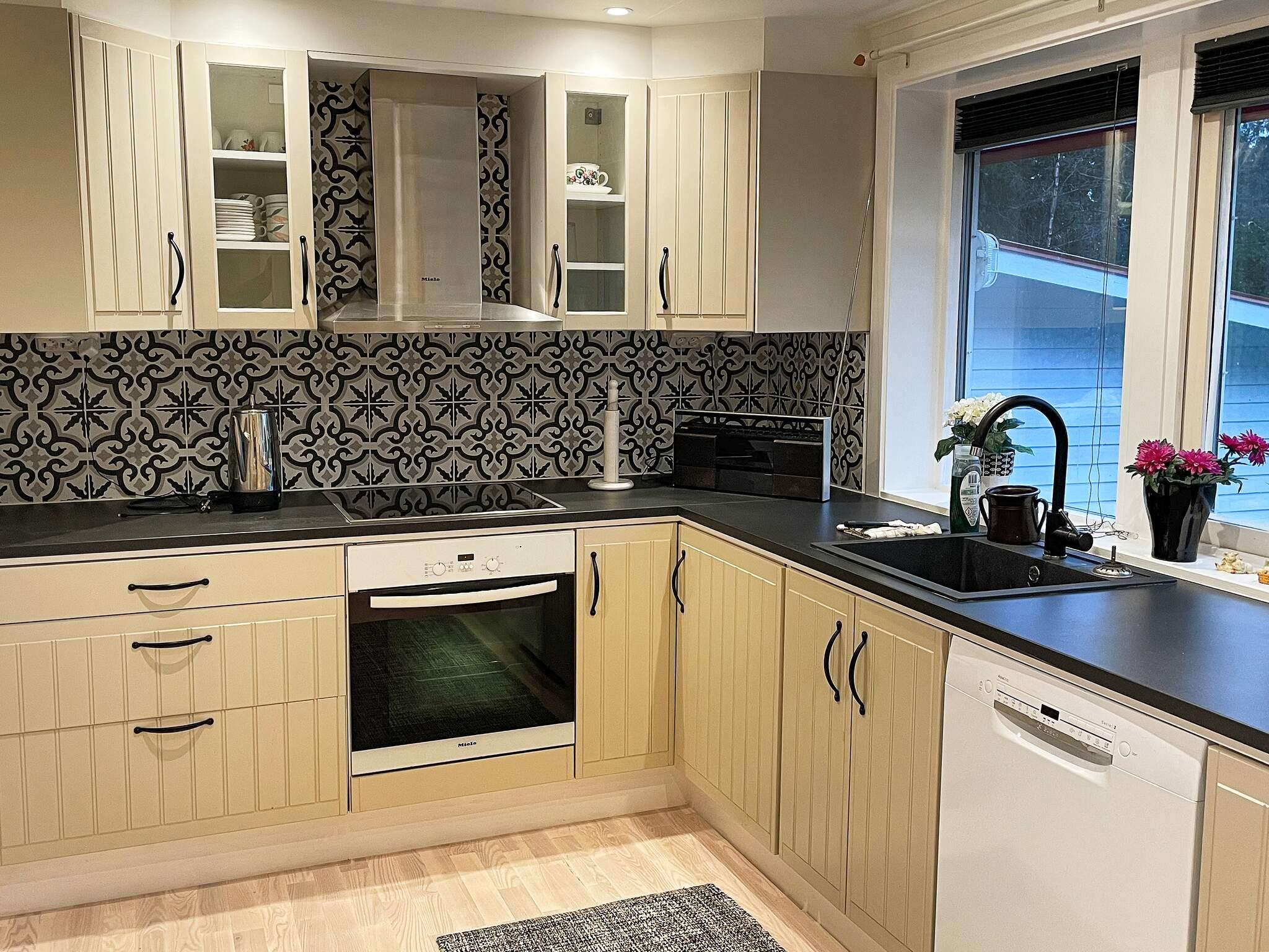 Till höger om hallen kommer man in i det fina köket som även här har vackert kakel, köket är full utrustat för all slags matlagning. I ett rum jämte köket finns ett sovrum med 1 dubbelsäng 160cm.