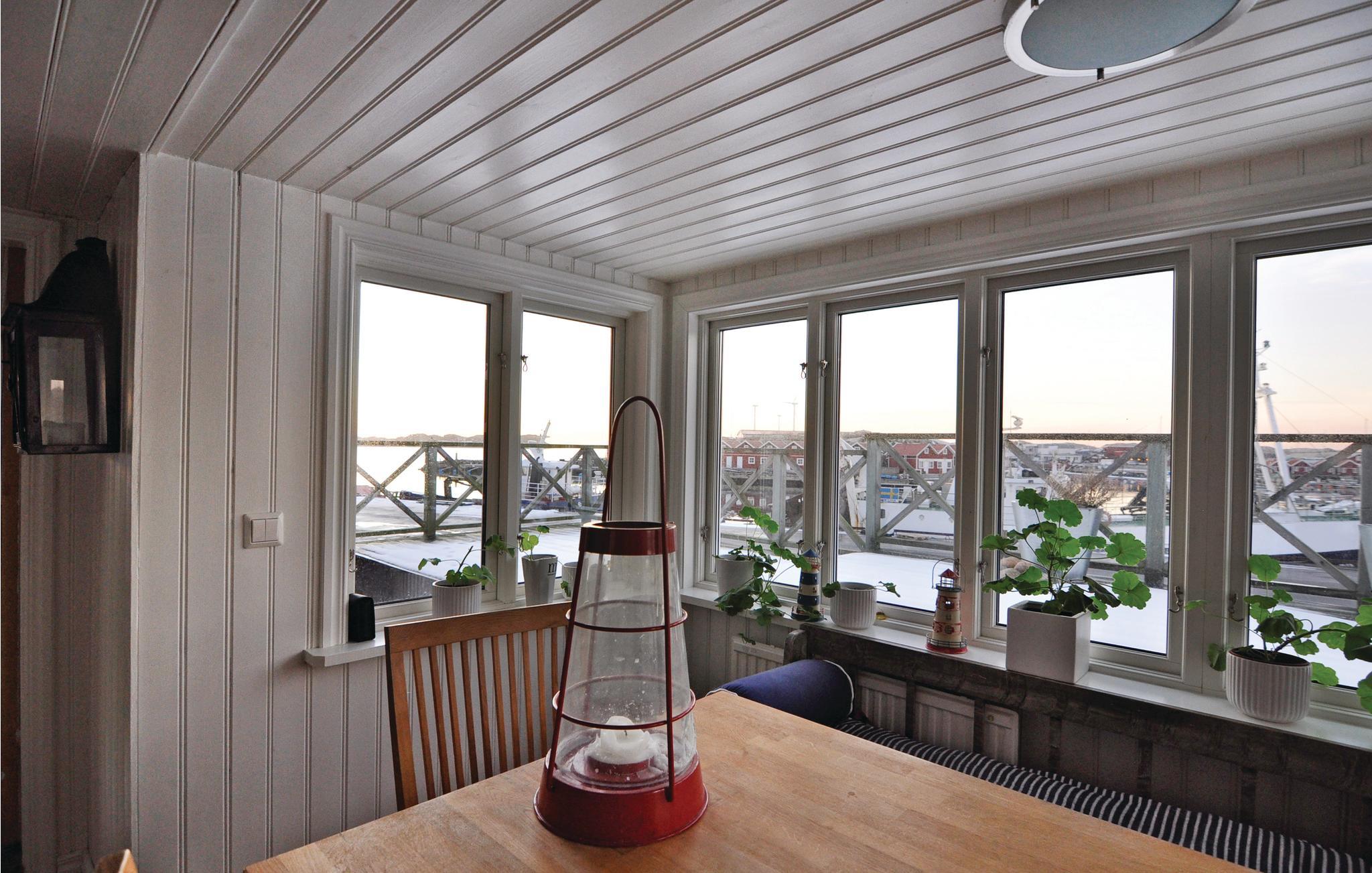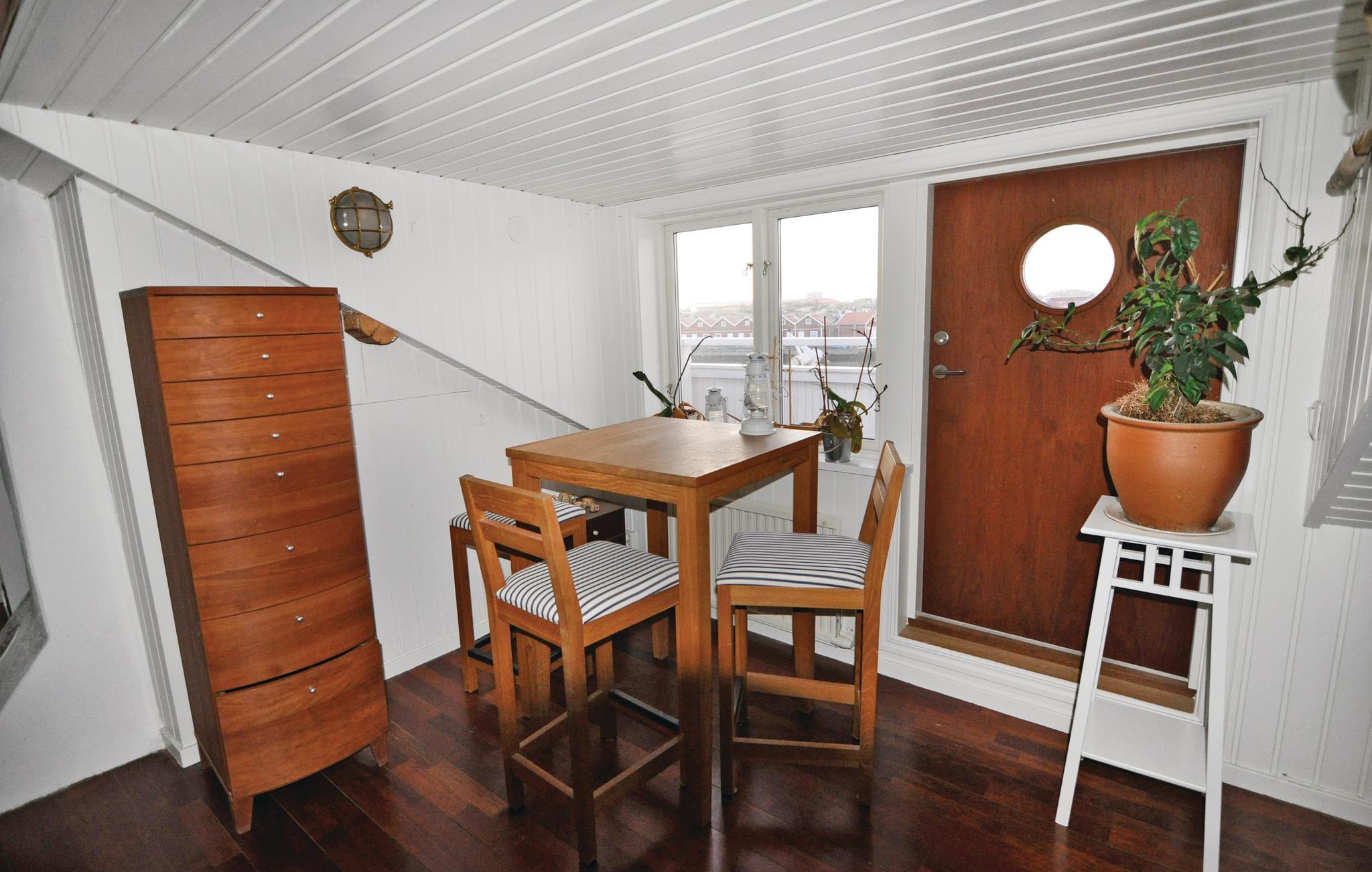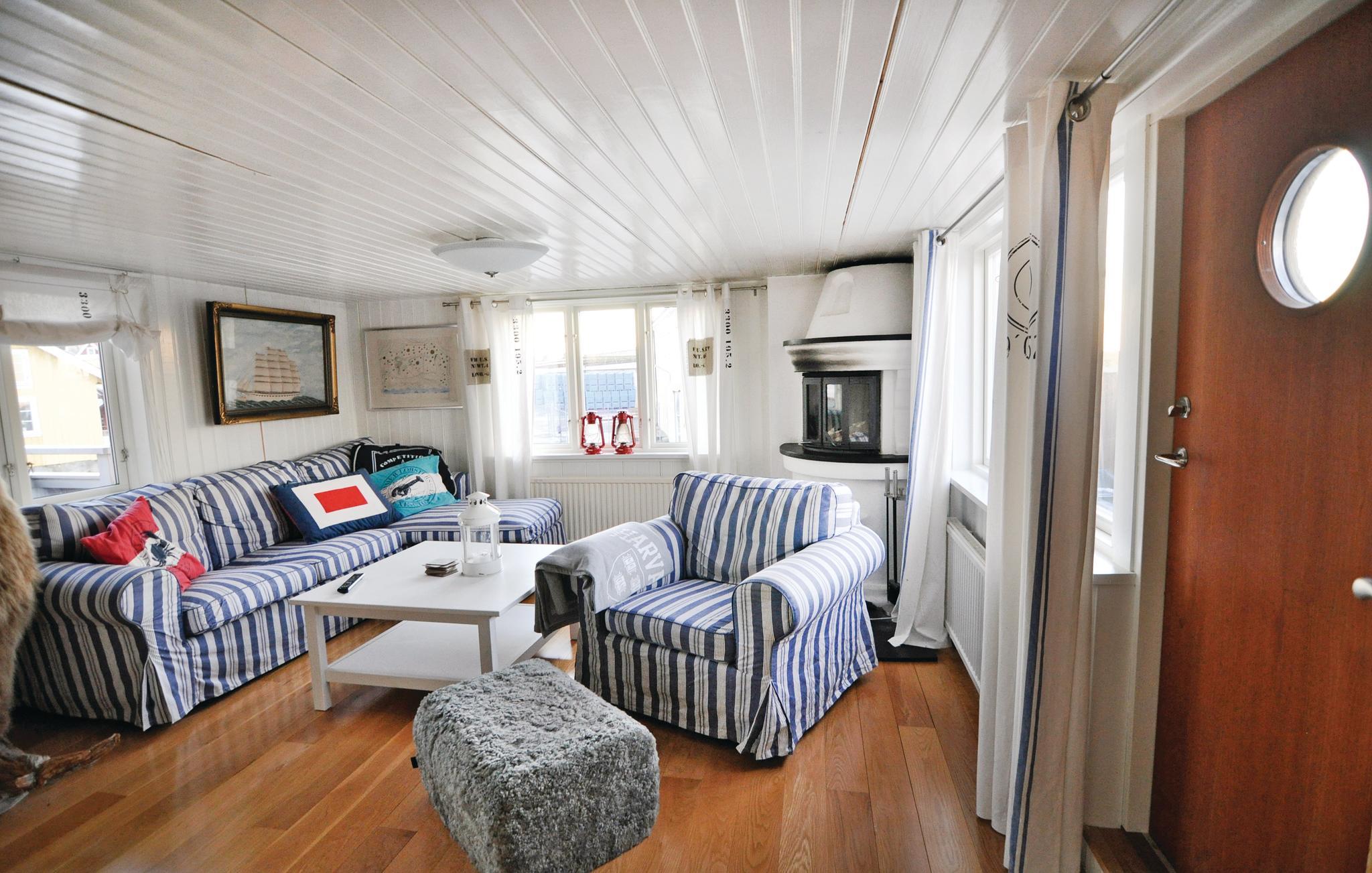Soveværelset på overetagen har lav loftshøjde. Ved havnen er det muligt at booke guidede bade- og fisketure i det sydlige Bohuslän; en meget populær aktivitet.