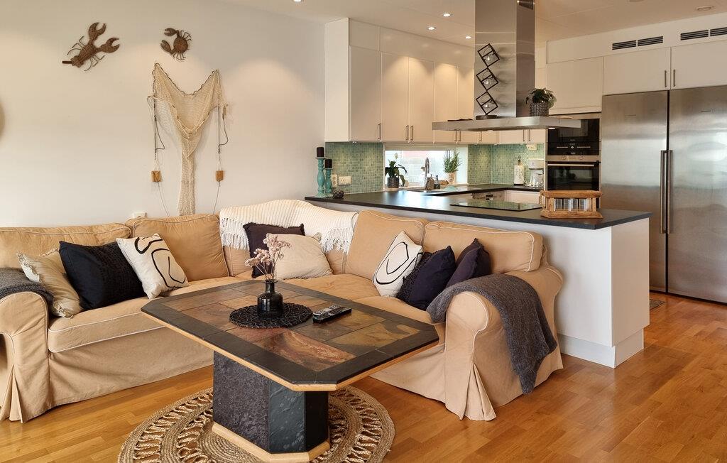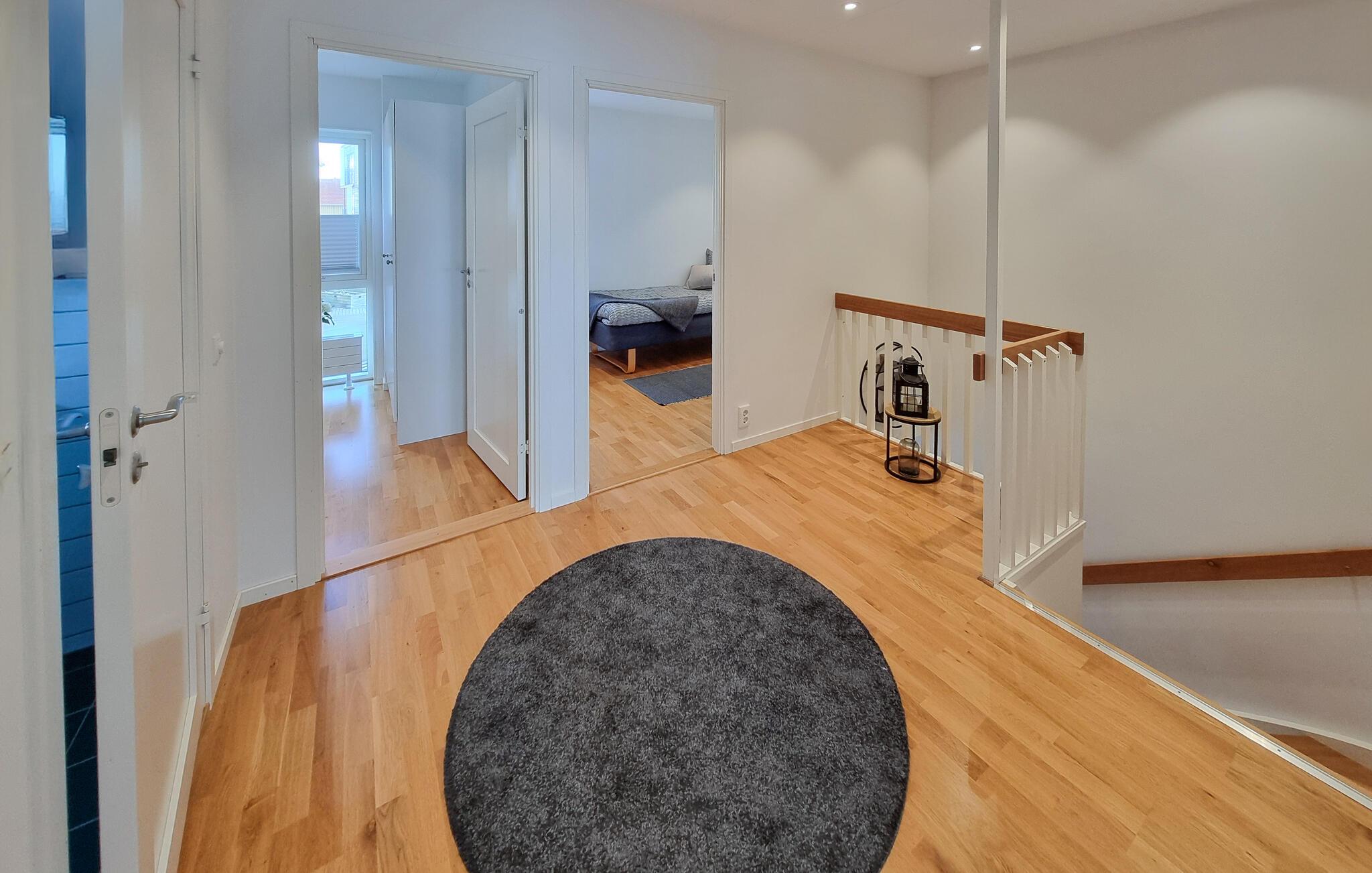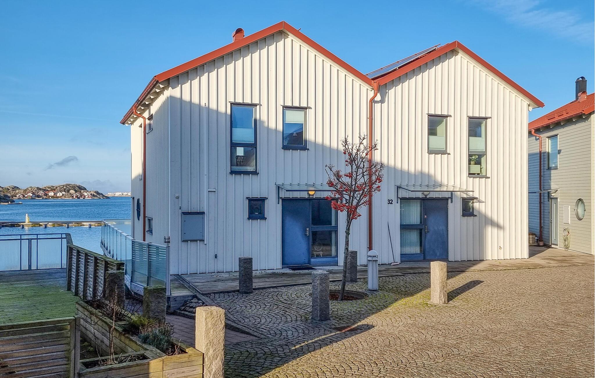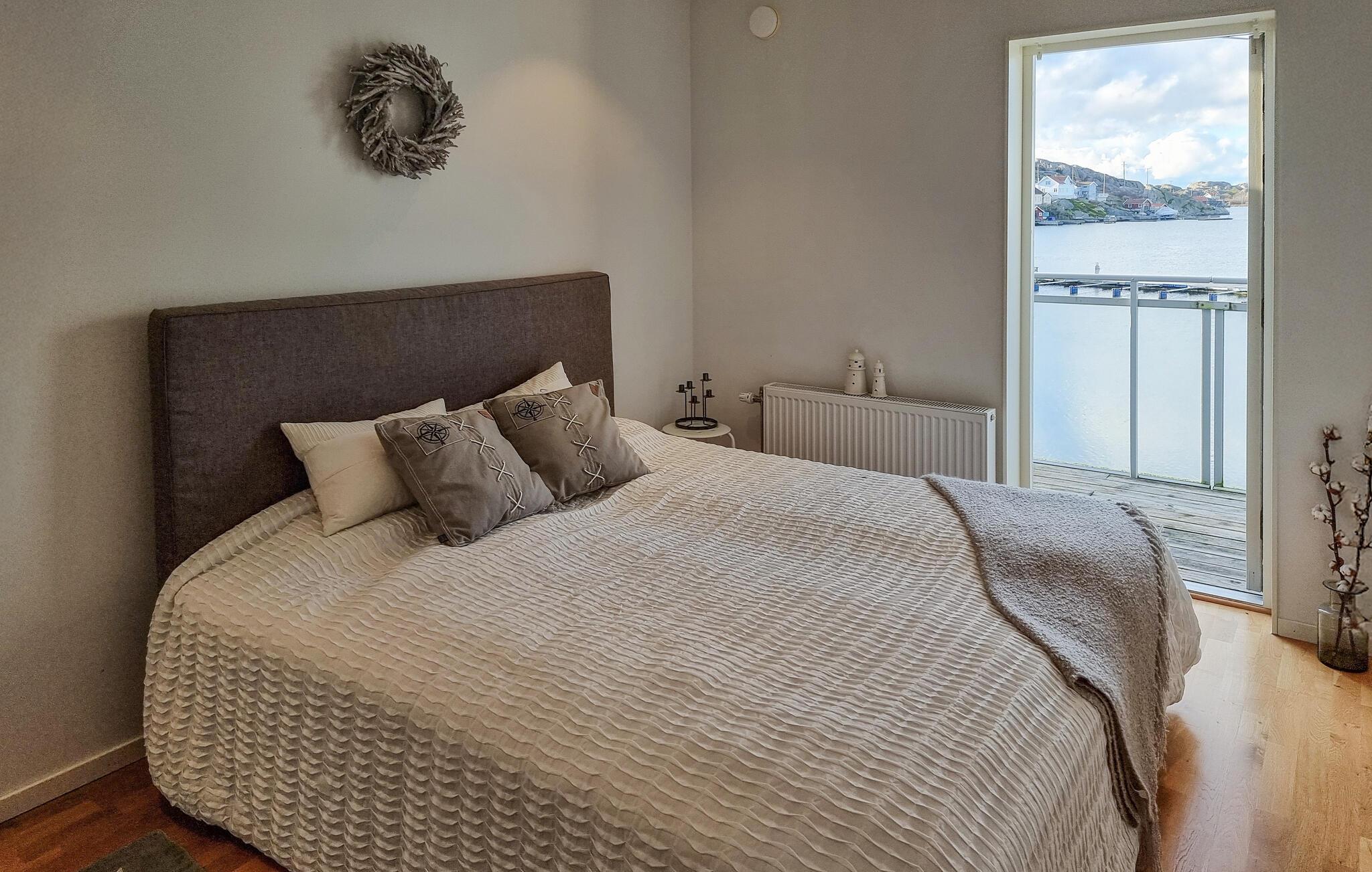 Dette stilfulde feriehus af høj kvalitet lige ved havnen i Rönnäng byder på en unik ferieoplevelse. Lysfyldte værelser og et moderne design skaber en indbydende atmosfære for jer. Begynd jeres dag på balkonen eller terrassen, hvor I kan nyde udsigten over havet. Husets to etager byder på masser af plads og komfort, mens den nærliggende fælles tøndesauna på anløbsbroen lægger op til afslappende timer.
