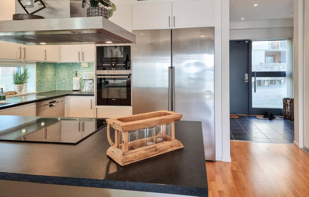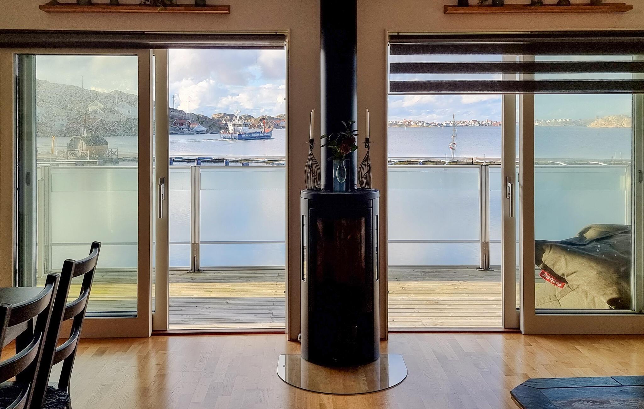 Nyd havudsigten fra dette moderne feriehus ved havnen.