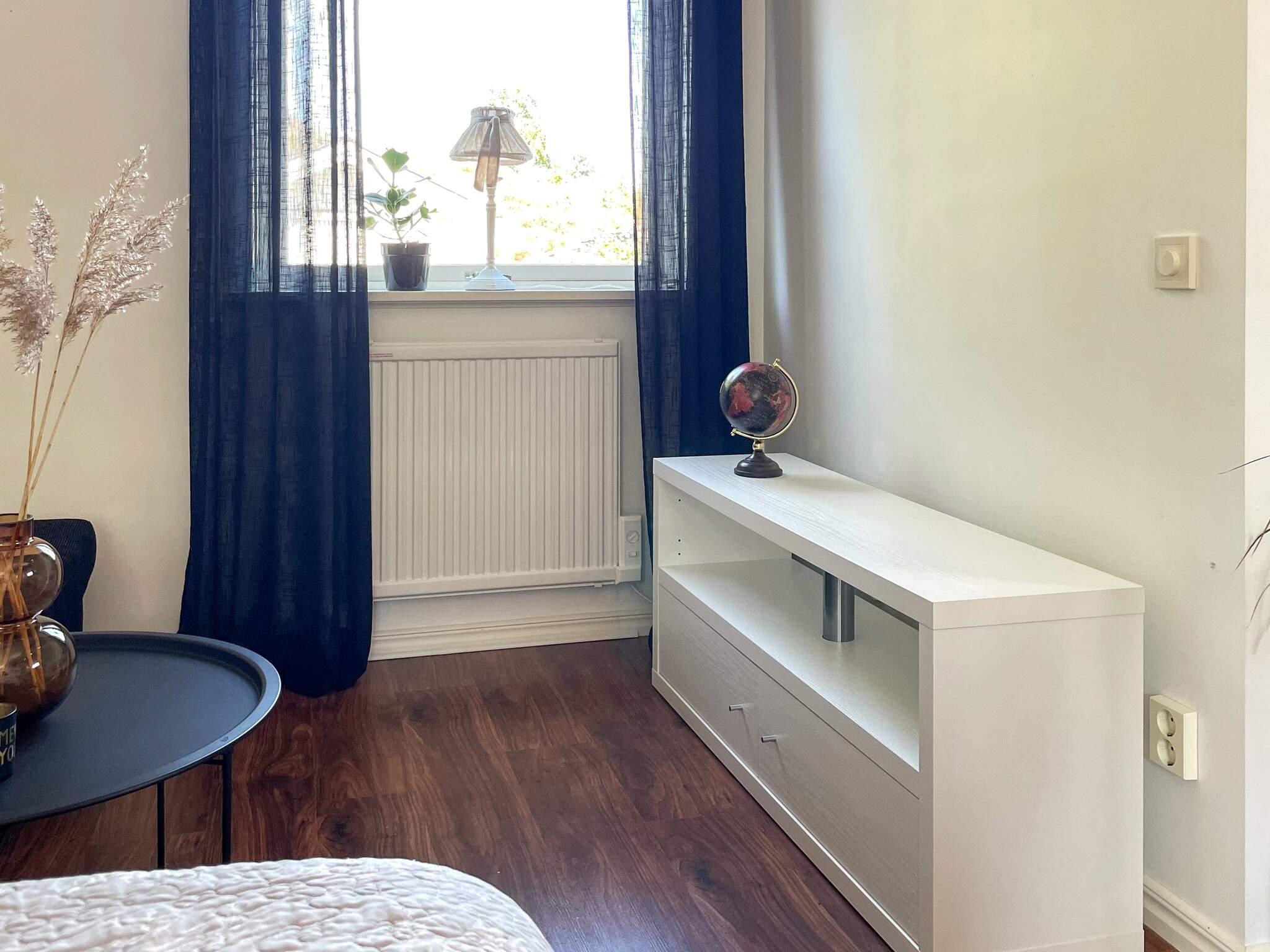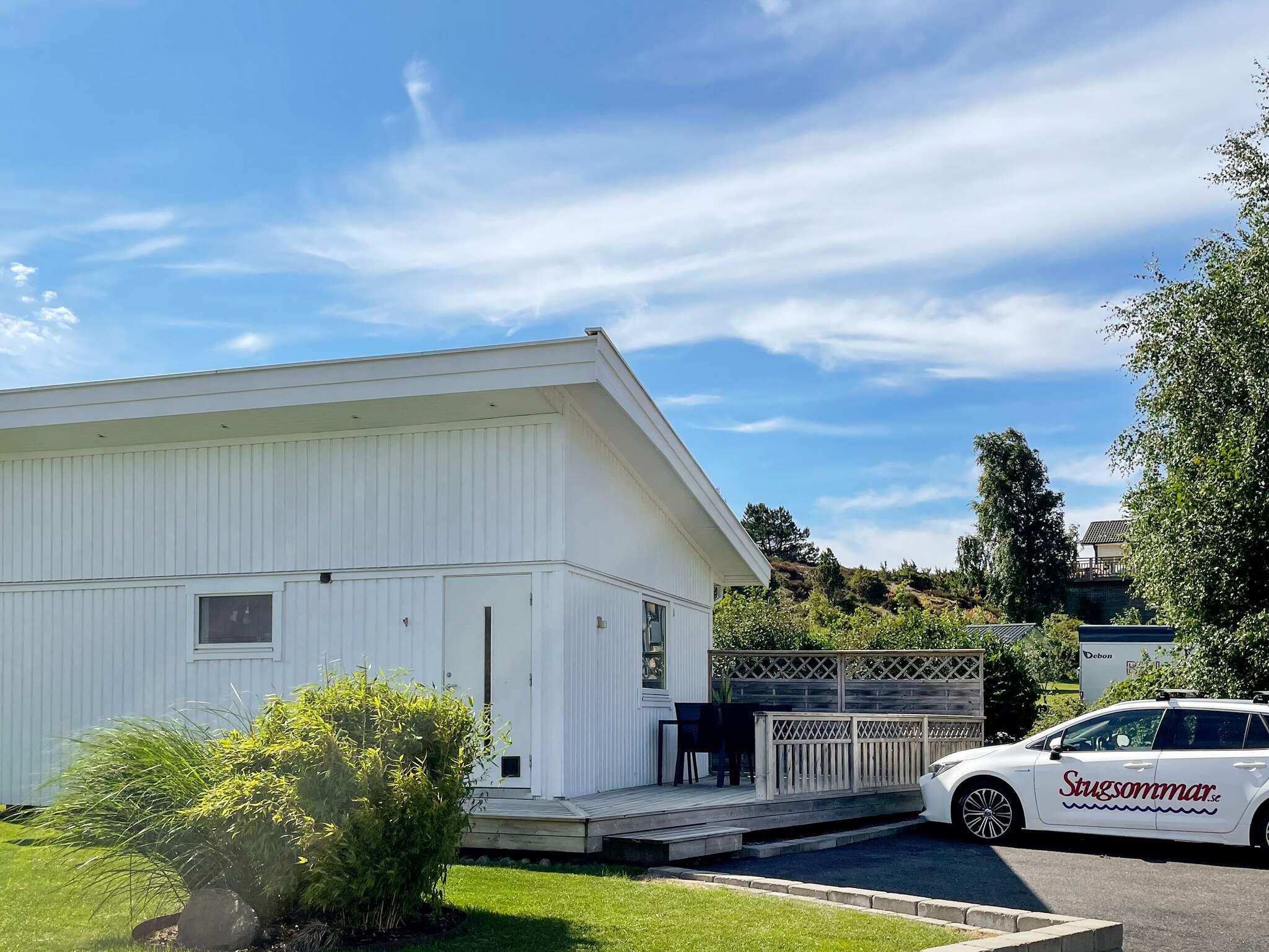 Stugan är en gäststuga beläget i ett lugnt stug och villaområde. Stugan ligger på en gräsmatta med soldäck/altan med utemöbler. Allt är i öppen planlösning. Det är ljus och hemtrevlig inredning. Köket är fullt utrustat med allt du kan behöva. Kylskåp med frys, mikro, spis med 4 plattor och en sittplats för 3-4 personer. Köksdelen är för sig och matplatsen är under trappen. Intill står en skön soffa med soffbord för lite häng på kvällarna. Till denna finns en TV-skärm där du kan koppla upp dig och streama. Dock inga svenska tv-kanaler. I allrummet finns två enkelsängar på 90cm. Uppför trappen till loftet finns ytterligare en bädd på 90 cm. Boendet är utmärkt för familjen eller sällskapet på 2-3 personer som vill uppleva västkusten tillsammans.