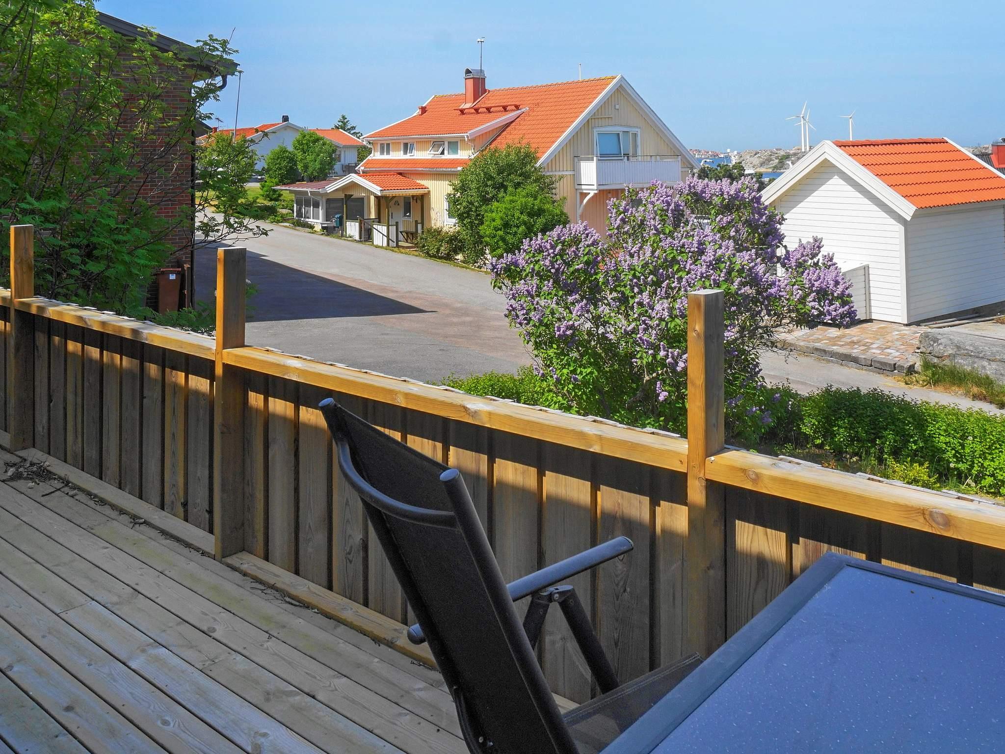 Ni har bara några minuters promenad till morgondoppet från badstege eller brygga i gästhamnen. Sätt er sedan och duka upp för frukost på den fina träaltanen samtidigt som ni kan njuta av en viss havsutsikt. Här kan ni koppla av över en god bit mat och dryck medans ni följer solens väg på himlen. Ni bor i ett lugnt villakvarter där ni har promenadavstånd till alla nöjen och service i Rönnäng. Här är det lätt att trivas både vår, sommar, höst och vinter. Här bor ni med skyddat läge med berg bakom stugan och staket runt er altan.