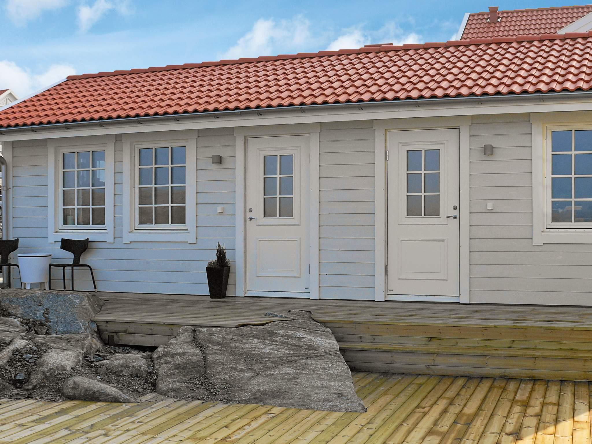 Ni har bara några minuters promenad till morgondoppet från badstege eller brygga som ligger nedan för stugan. Fortsätt sedan med frukost på den stora träaltanen samtidigt som ni njuter av den hänförande utsikten. Här kan ni njuta av er ledighet över en god bit mat och dryck eller ligga och koppla av i solstolarna. På kvällen kan ni följa solnedgången i väster. Ni bor i ett lugnt nybyggt villakvarter med högt läge där ni har promenadavstånd till alla nöjen och service i Rönnäng. Här är det lätt att trivas både vår, sommar höst och vinter. Stugan är vinterbonad och värms upp med vattenburen golvvärme.