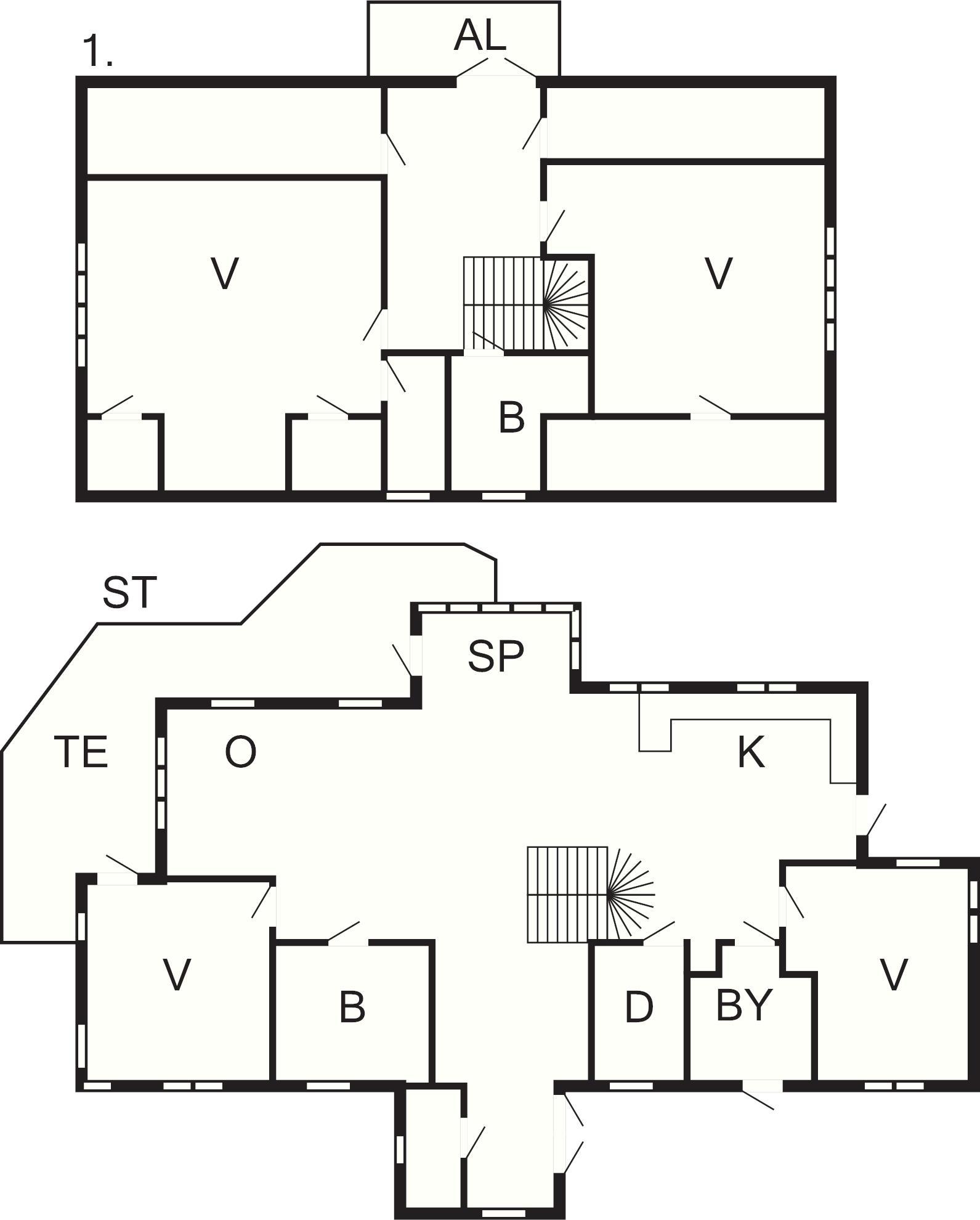 4 Soveværelser: (1DS)+(1DO)+(1DS)+(1DS)