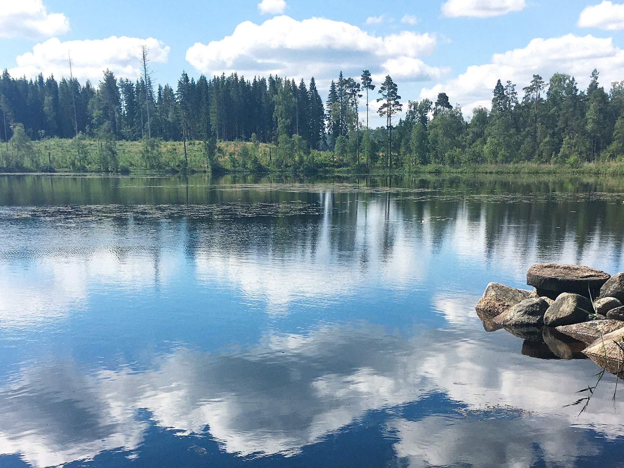 Här bor ni lugnt, lantligt och sjönära på en härlig tomt mitt emellan Rydasjön och Svinasjön. Ni har bara 150 meter närmsta sjö och ett stenkast längre till morgondoppet. Här ligger även roddbåten som ingår i hyran förtöjd. Kanske fångar ni en fisk som ni sedan kan grilla till kvällen?