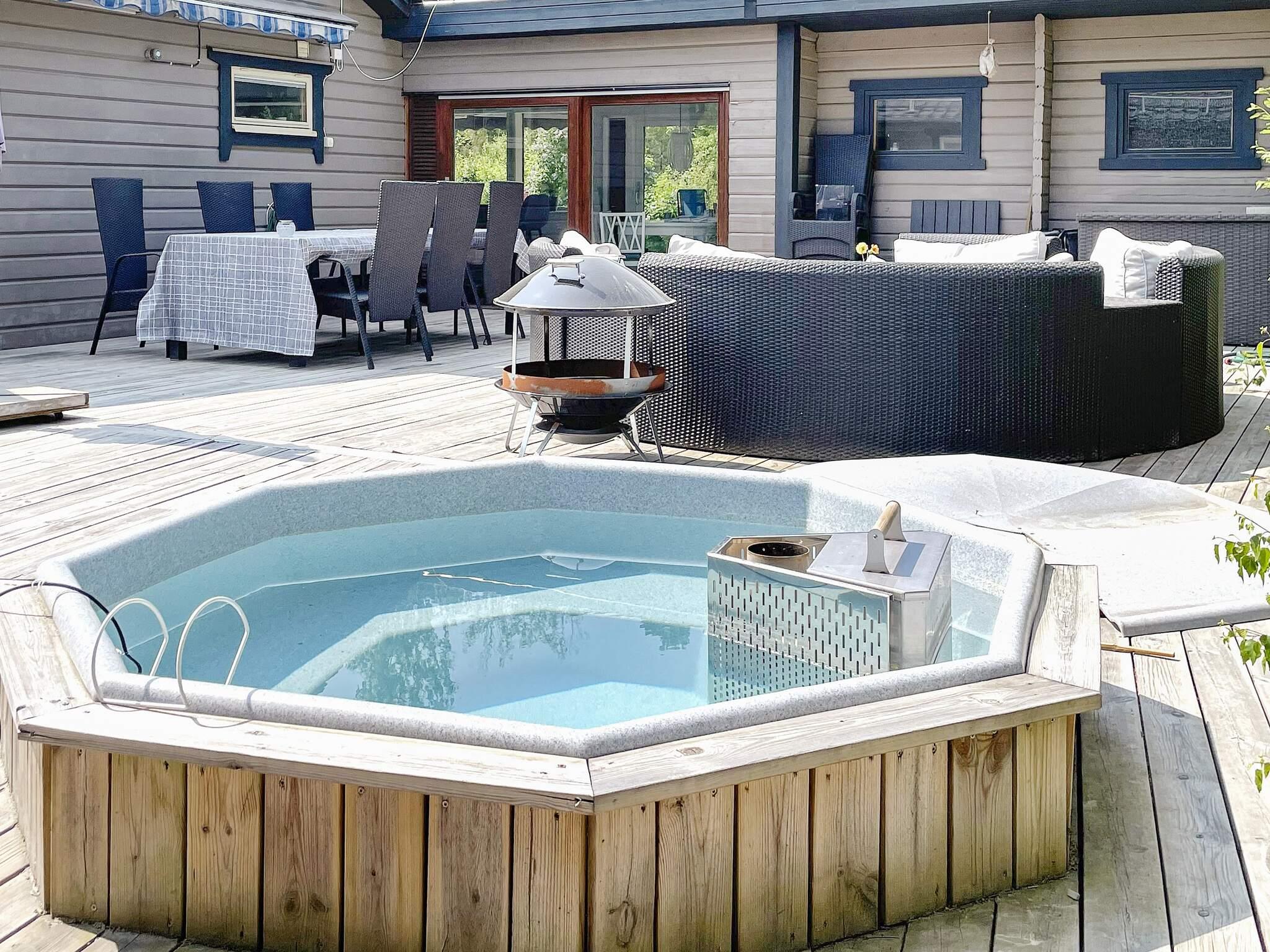 Boendet har ett sovrum med 160 dubbelsäng och en mindre bäddsoffa, köksdelen har köksbord med plats för 4 personer och intill i samma rum finns soffhörnan. Det är kaklat badrum med dusch och runt hörnan finns en tvättstuga. På gården finns ytterligare ett rum med egen entré där finns sommarvatten och en dubbelsäng. Det finns två altaner att tillgå en veranda med plats för 2–3 personer och tillgång till den stora altanen på 100kvm som delas med ägaren. Här finns en Weber grill, vedeldad spabad, matplats under markis och en soffgrupp, en härlig plats för umgänge. Stugan har Wifi och en TV-skärm för den som vill koppla upp sig från mobil eller Chromecast.Husdjur är välkomna och hundvakt går att köpa till enligt överenskommelse med husägaren.