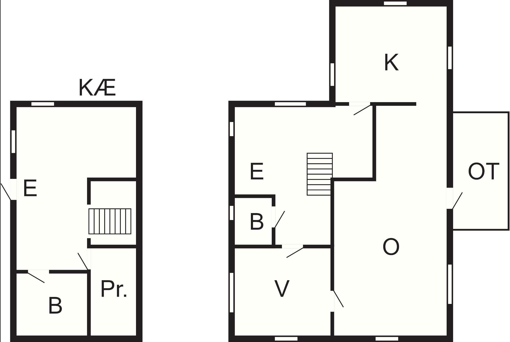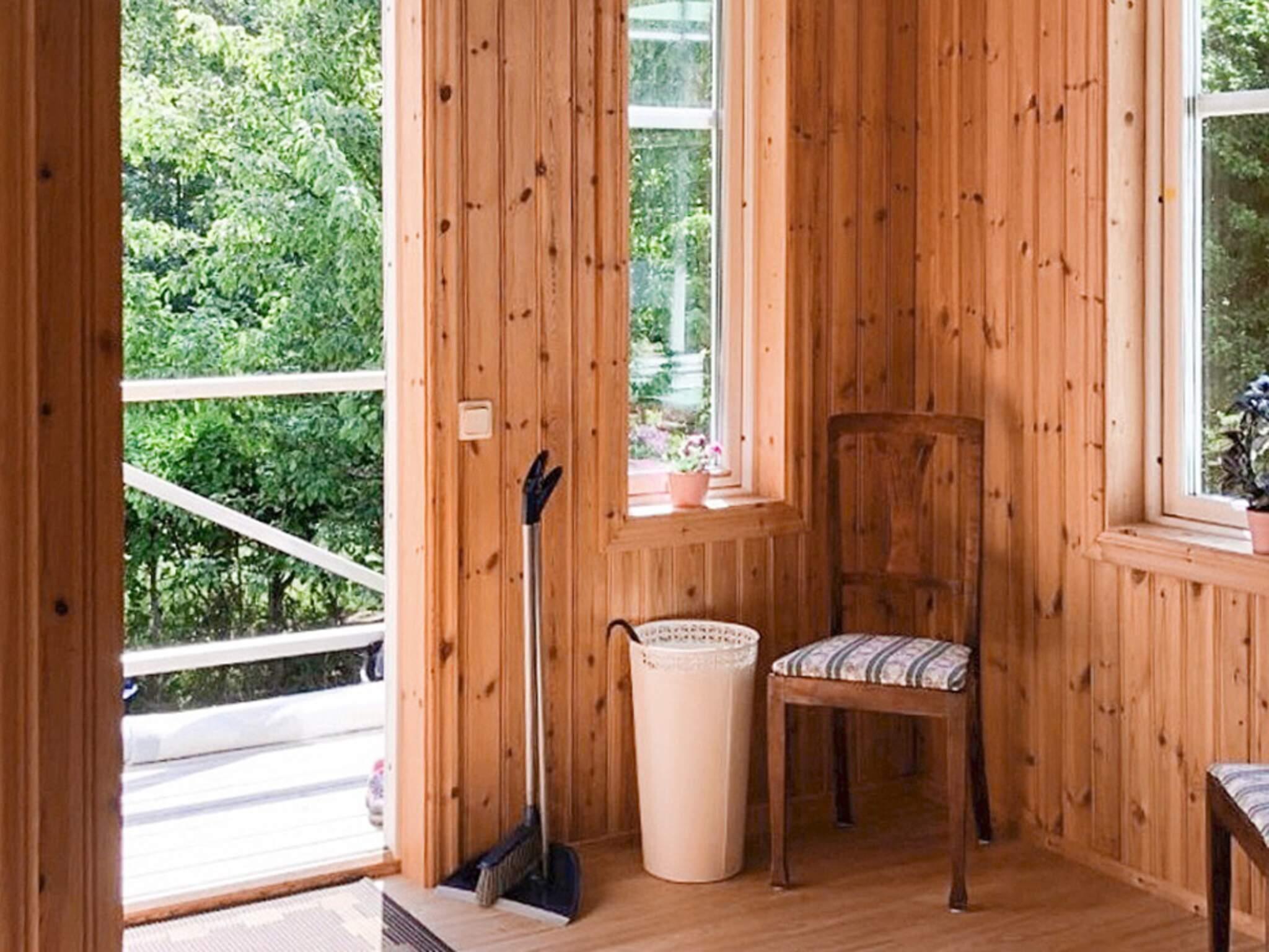 Entrén är en trappa upp med stor hall och toalett. Rymligt öppet kök med gammaldags vedspis samt kakelugnar minner om forna tider (ej eldningsbara). Vardagsrum med en bäddsoffor, en för två och en för en person. Innanför ligger ett sovrum med två enkelsängar.
