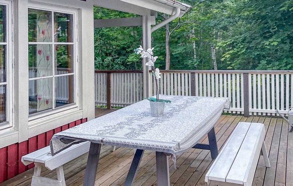 Rummeligt, hyggeligt og moderne feriehus med store terrasser, den ene er under tag. I bor I et smukt kystmiljø med gode bade- og fiskemuligheder. Der hører robåd med til huset. På grunden er der også et ældre og enkelt anneks hvor der står fire ekstrasenge. Det kan lejes direkte af husejer. I haven er der god plads til leg og boldspil og et gammeldags lysthus. Der er mange seværdigheder og interessante udflugtsmål i omgivelserne. Her bor I bare 500 m fra havet og kan nyde den smukke skærgård. 200 m fra huset forløber Smålandsleden som er en vandresti der fører jer rundt i hele Småland. Det tager 45 min i bil at køre til glasværket i Pukeberg, det tager en time til det berømte Boda hvor der også er et museum. Vil I købe ind, så kør til Kalmar (30 km) som er en smuk gammel by med mange former for butikker. Her er også mange former for seværdigheder.: Kalmar slot, kunstmuseet, länsmuseum, søfartsmuseet, domkirken, stadsparken og meget andet. Fra huset er der kun 30 minutter i bil til broen til Öland. Den smukke ø er 130 km lang, med fyret Långe Jan på den sydlige side og Långe Erik på den nordlige side. Andre seværdigheder er Alvaret, Borgholm med Borgholms slott og det kongelige sommerslot Solliden, Böda Strand og middelalderborgen Eketorp. Her er også mange kunsthåndværkere og kunstnere, med åbne atelier, hvor I kan se og købe deres smukke værker.