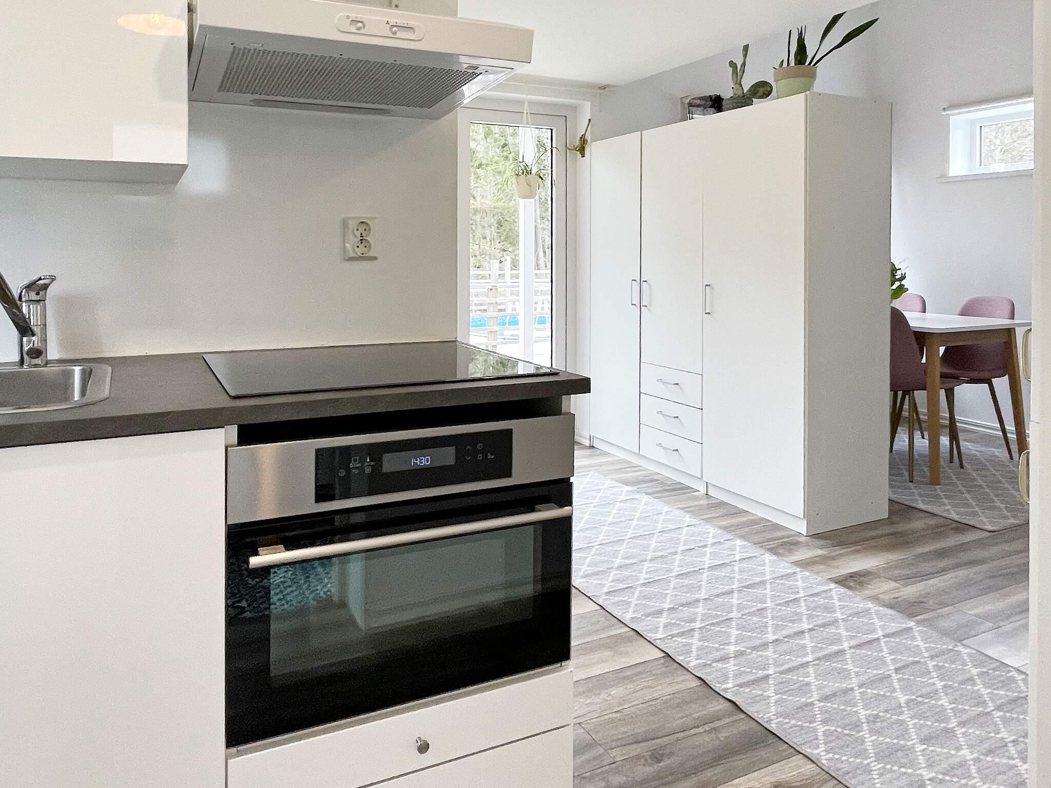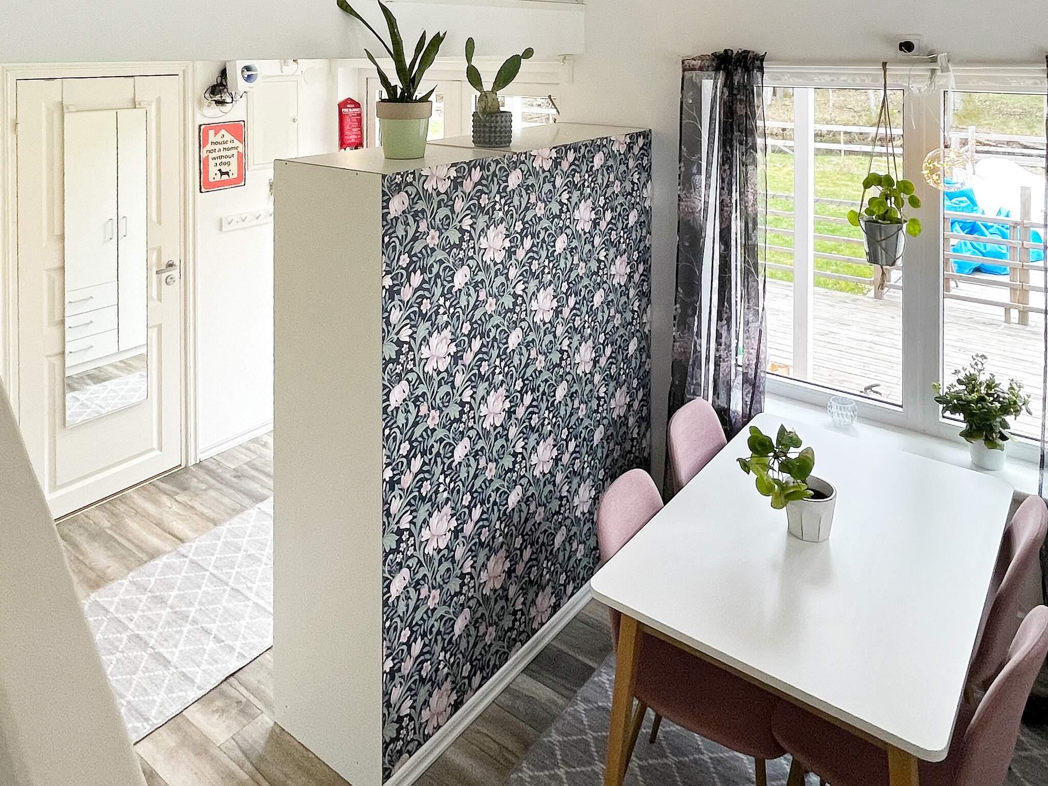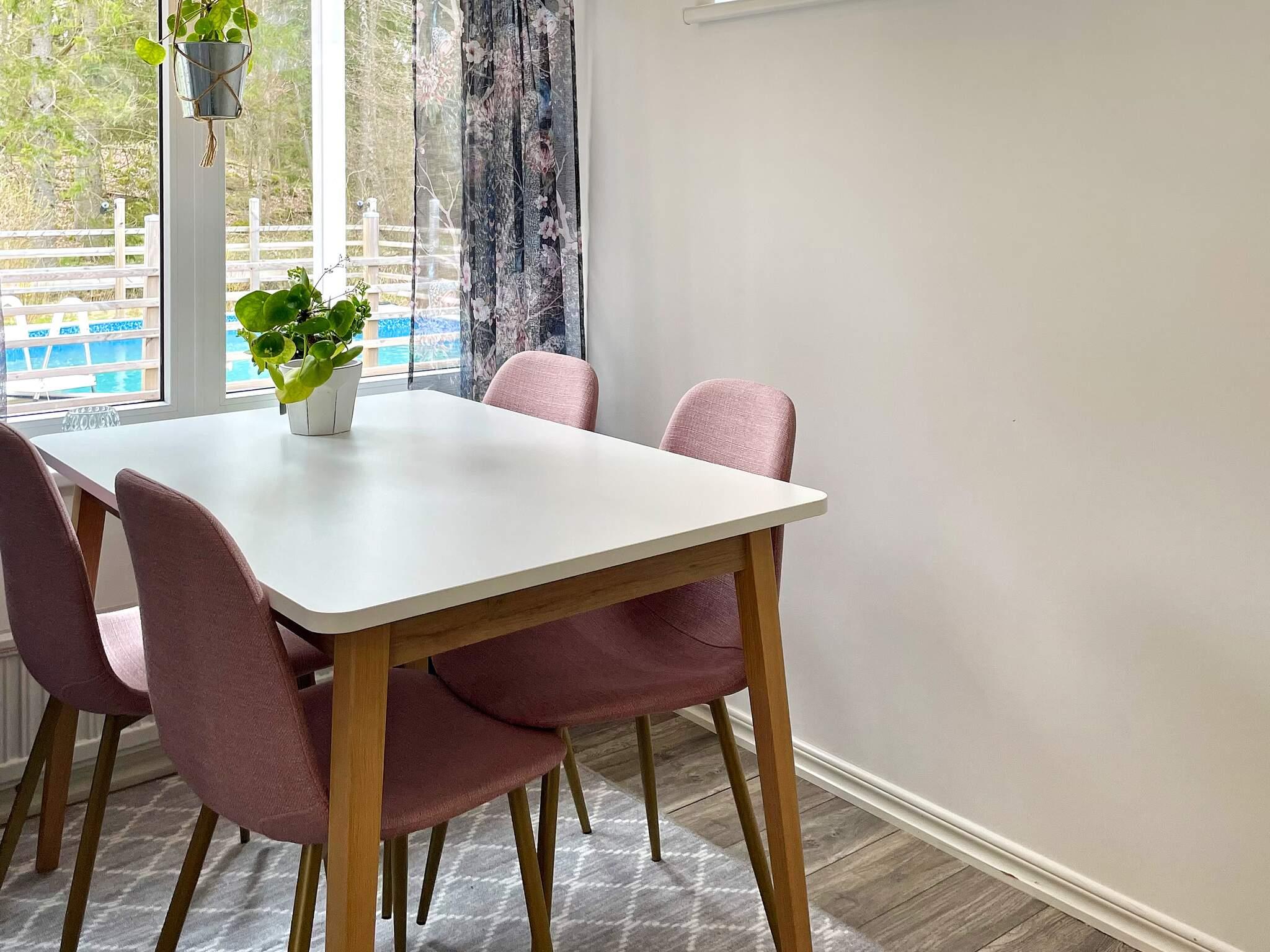Här har ni en härlig baksida och altan med helt insynsskyddat läge och naturskön omgivning med utsikt mot skogen, det öppna fältet och ån som så vackert omger tomten åt två håll. Här finns även poolen där ni kan svalka er. Det finns ett härligt inglasat uterum ni kan njuta långt in på kvällarna. Huset har en öppen planlösning med kök där ni har en kombinerad ugn/micro, induktionshäll, kyl, frys, kaffebryggare och en mindre diskmaskin. Ni har en vacker matplats med utsikt mot poolen.