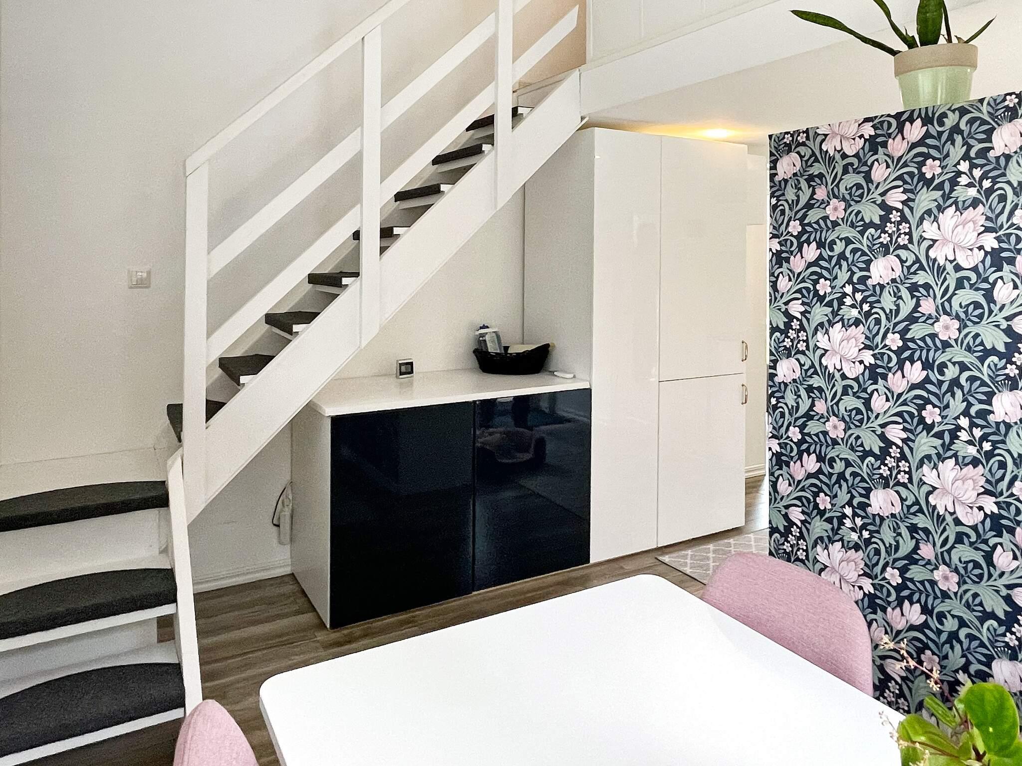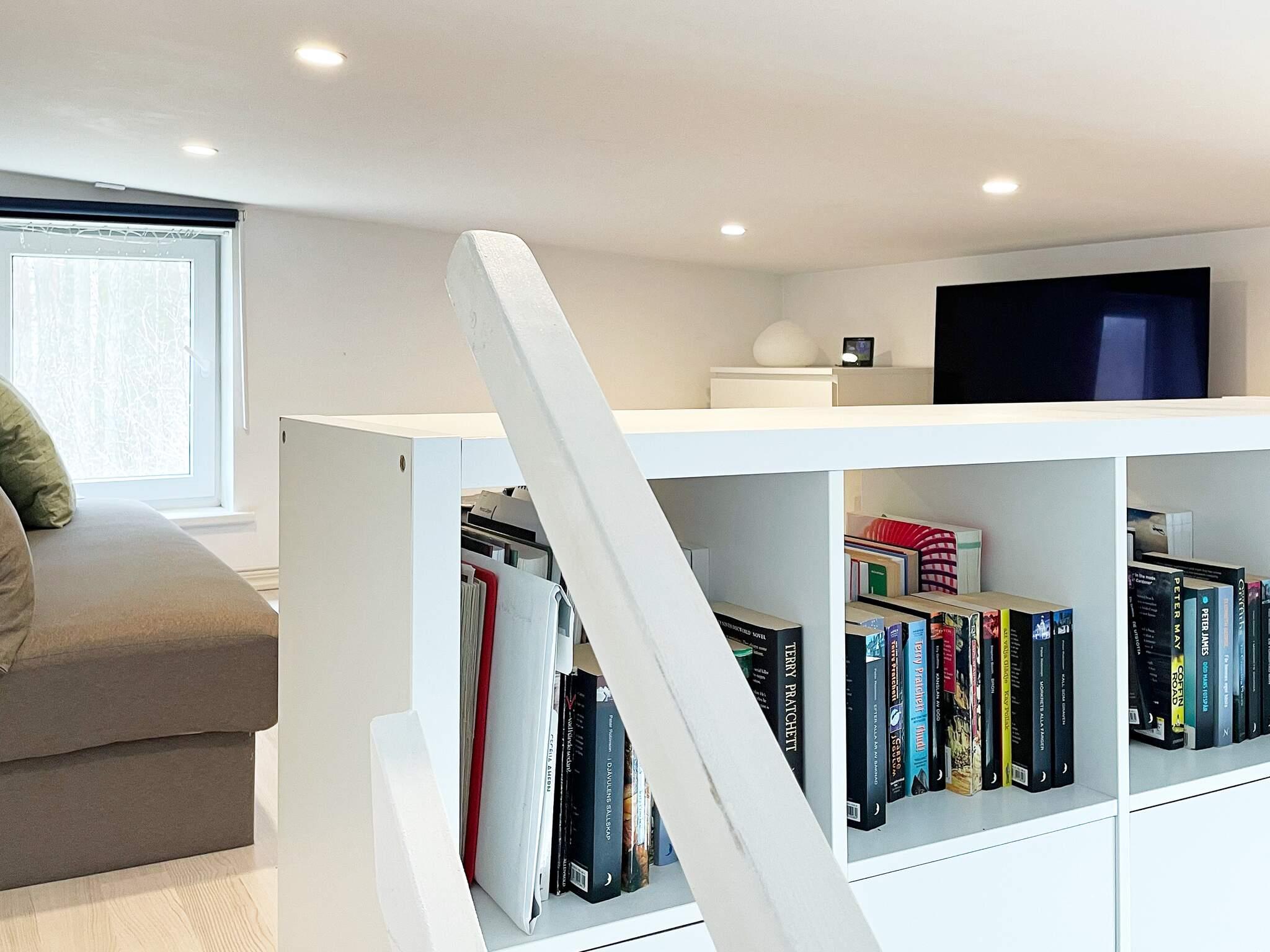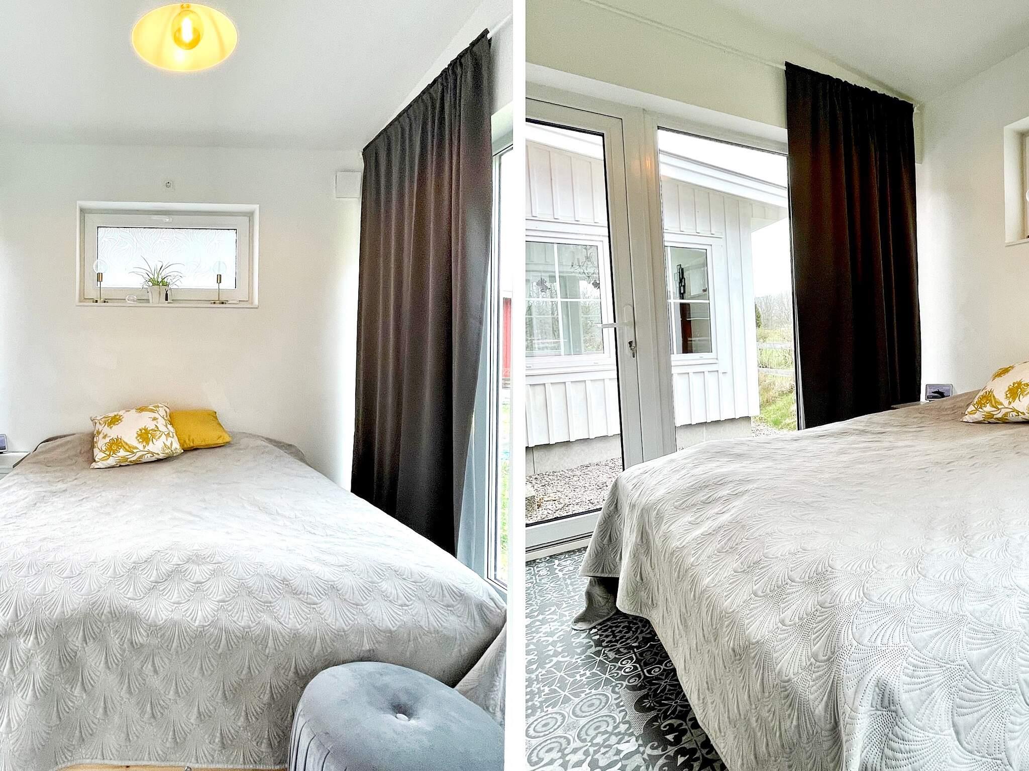 Sovrummet är verkligen något utöver det vanliga med insynsskyddade glasade partier på båda sidor av sängen samt en altandörr. Ni har ett trevligt badrum med Wc, handfat, duschkabin samt en kombinerad tvättmaskin/torktumlare. En trappa upp finns det lilla vardagsrummet med låg takhöjd där ni har en skön soffa som kan bäddas ut till en 120cm bädd samt stor tv med chromecast.