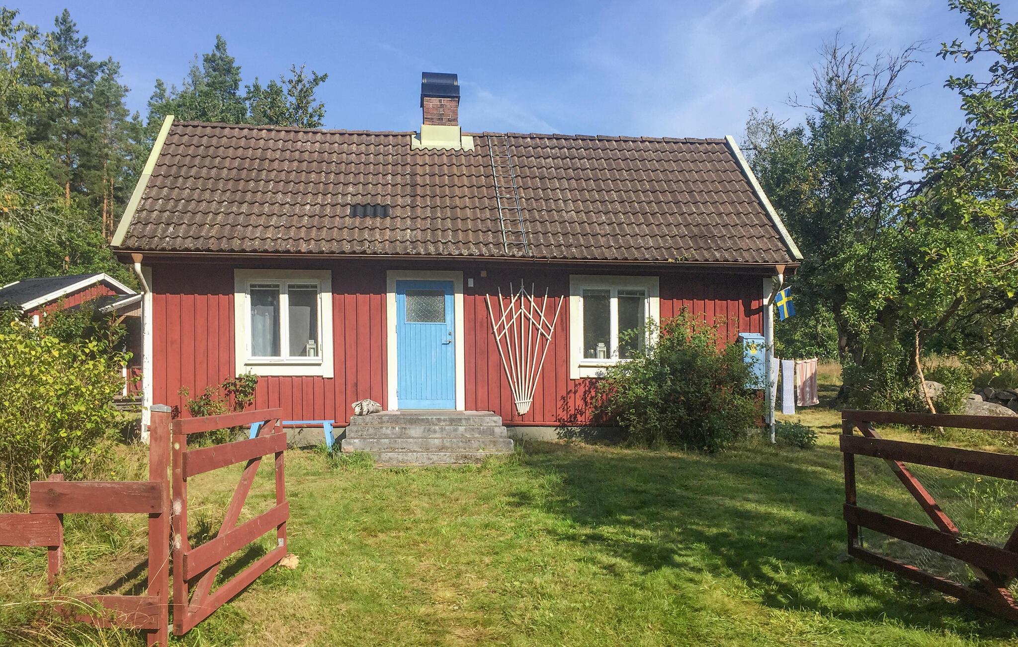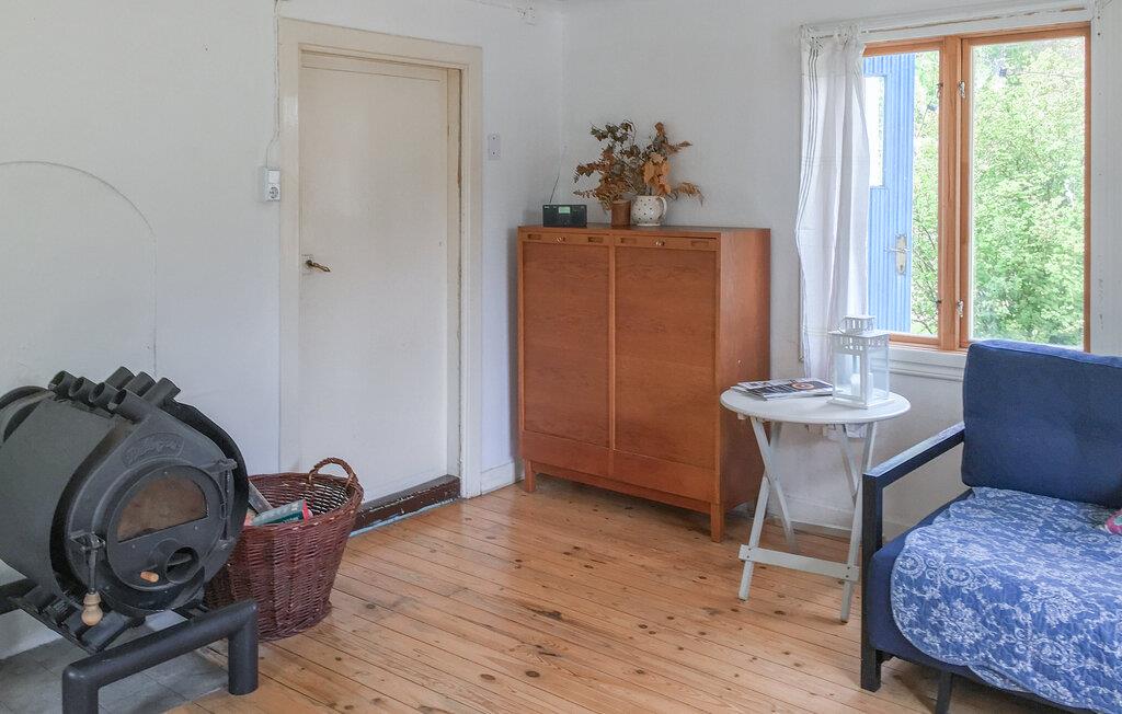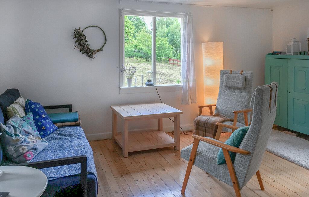 Ikke langt fra den svenske vestkyst og indlejret i det smukke landskab nær Alsterbro og Ekoparken Hornsö, byder jeres typisk svenske træhus jer velkommen til en hyggelig ferie. Den idylliske beliggenhed i det grønne, omgivet af træer og natur, tilbyder absolut ro og er ideel til afslapning og rekreation. Husets indre er enkelt og hyggeligt indrettet. Lad jer fortrylle af den lyse stue med sine skandinaviske møbler. Læn jer tilbage i en af de komfortable lænestole og nyd udsigten til det grønne. Lav mad i det charmerende køkken med vintage-stil og nyd jeres måltider ved det indbydende spisebord.