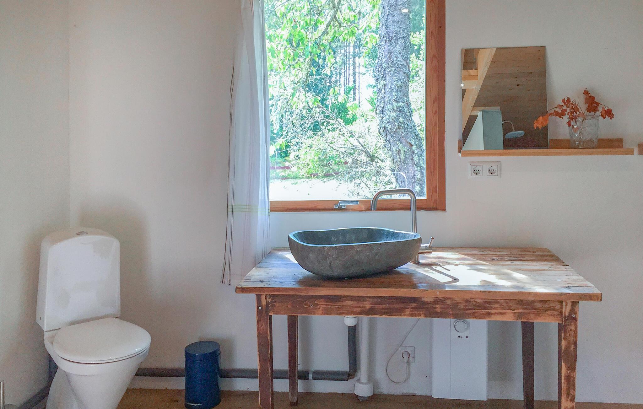 Slap af i det rummelige udendørsområde og nyd fælles måltider i haven ved det rustikke bord under åben himmel. I nærheden af jeres feriehus finder I en sø, hvor I kan bade. Tag også på gåture i Ekoparken Hornsö og oplev den uberørte natur. Eller tag til kysten og nyd den friske luft og de vidtrækkende udsigter på en cykeltur.