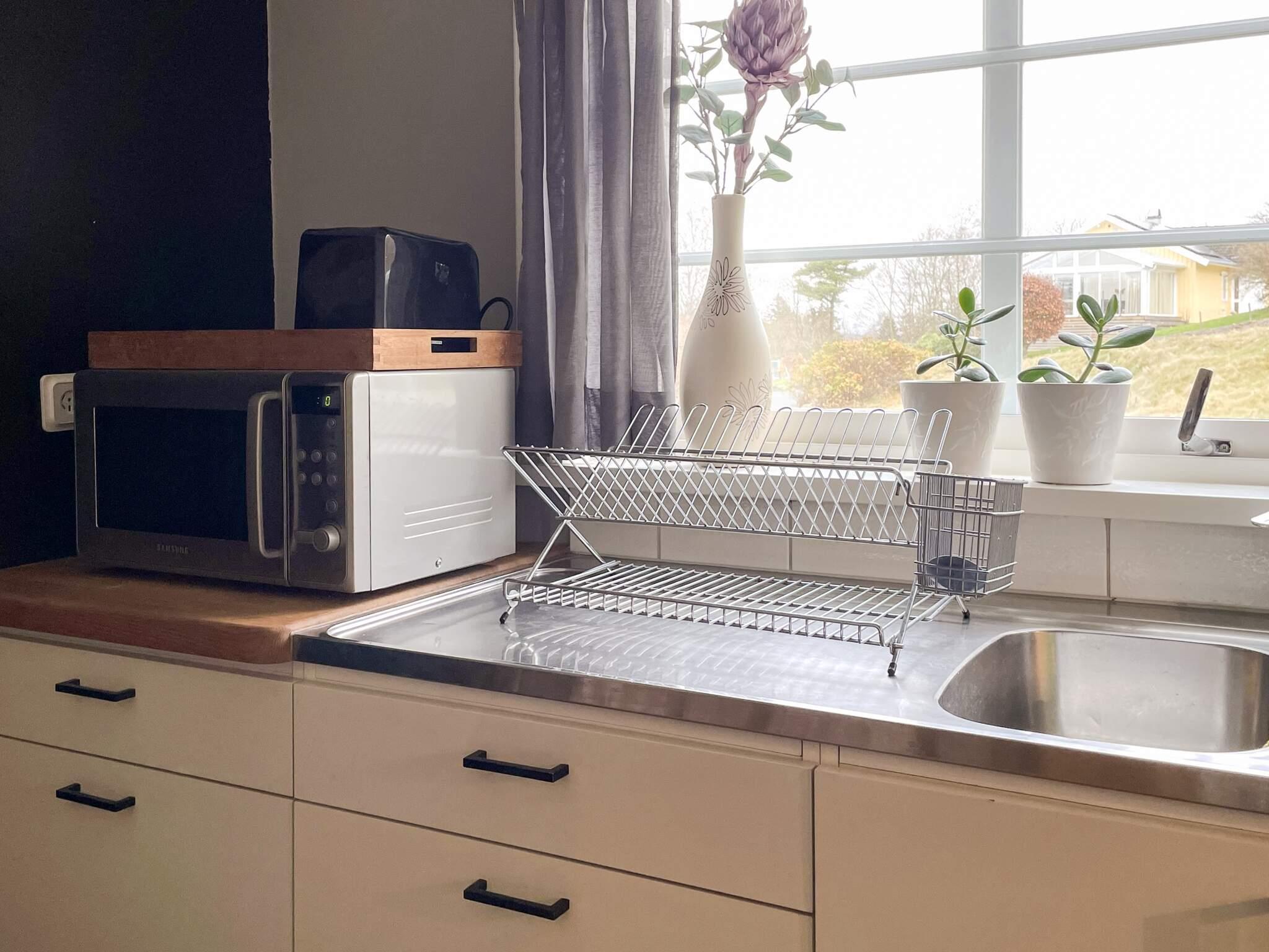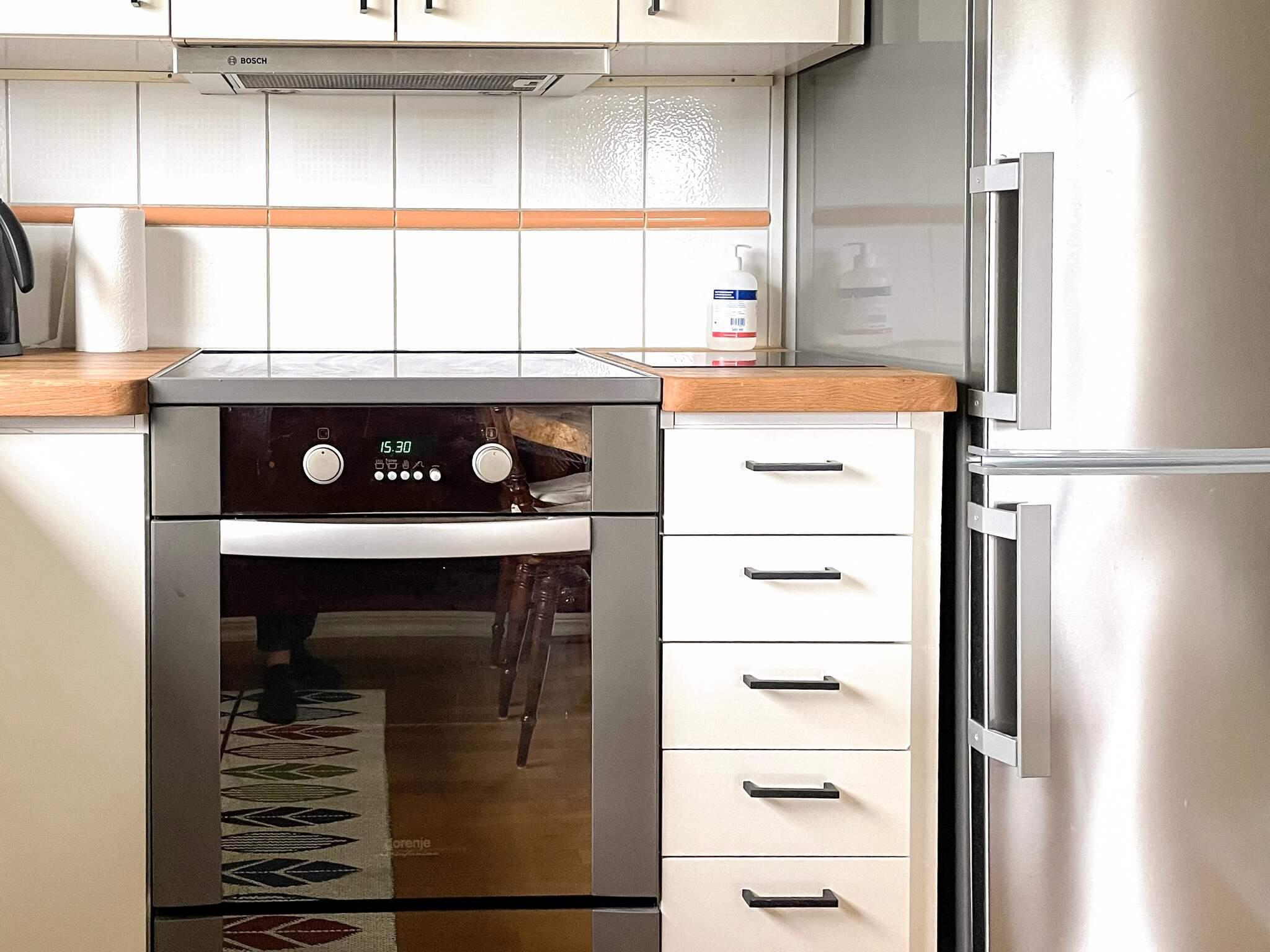 Køkken: El-komfur, ovn, køle-frys, mikroovn, kaffemaskine