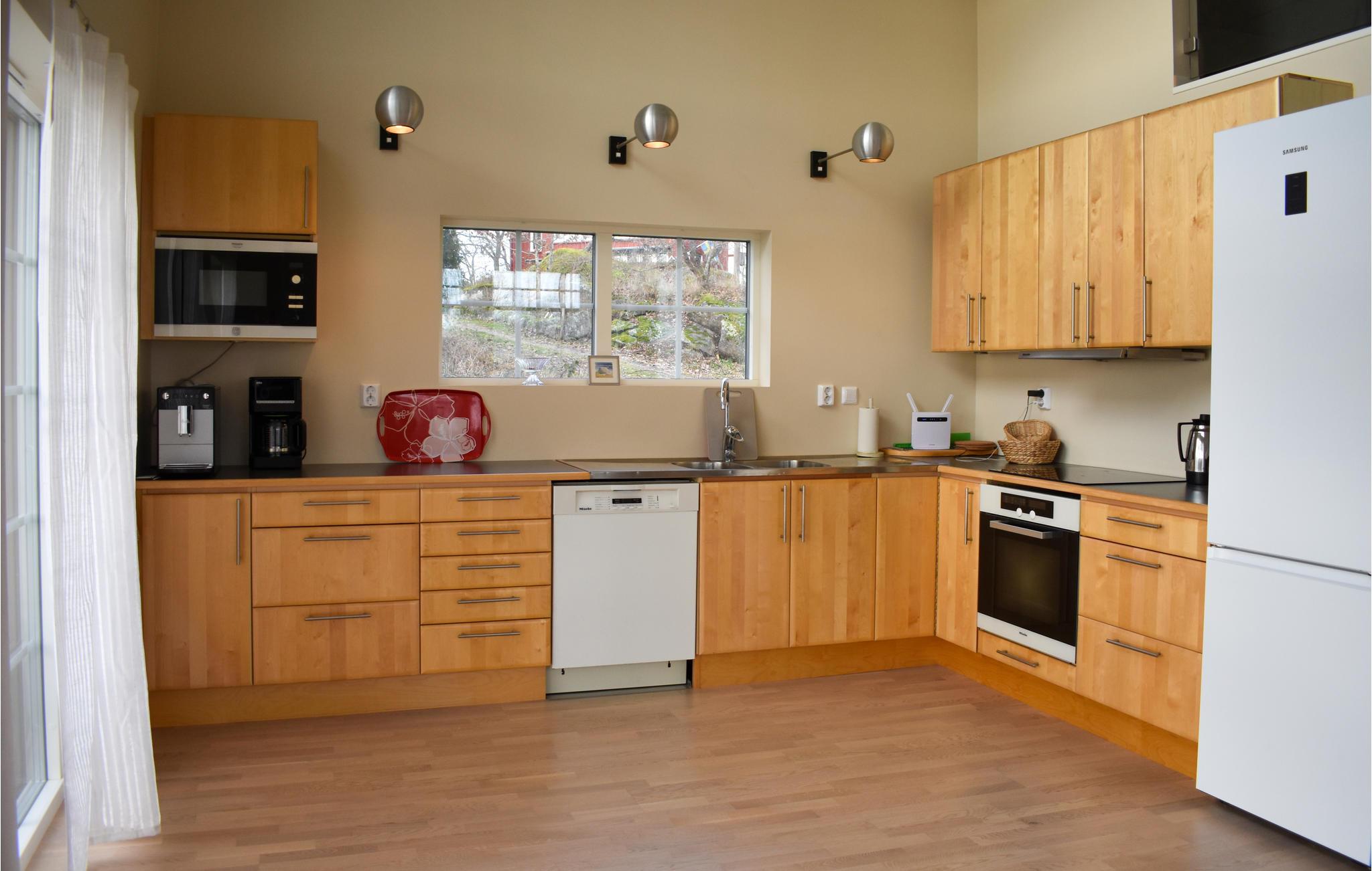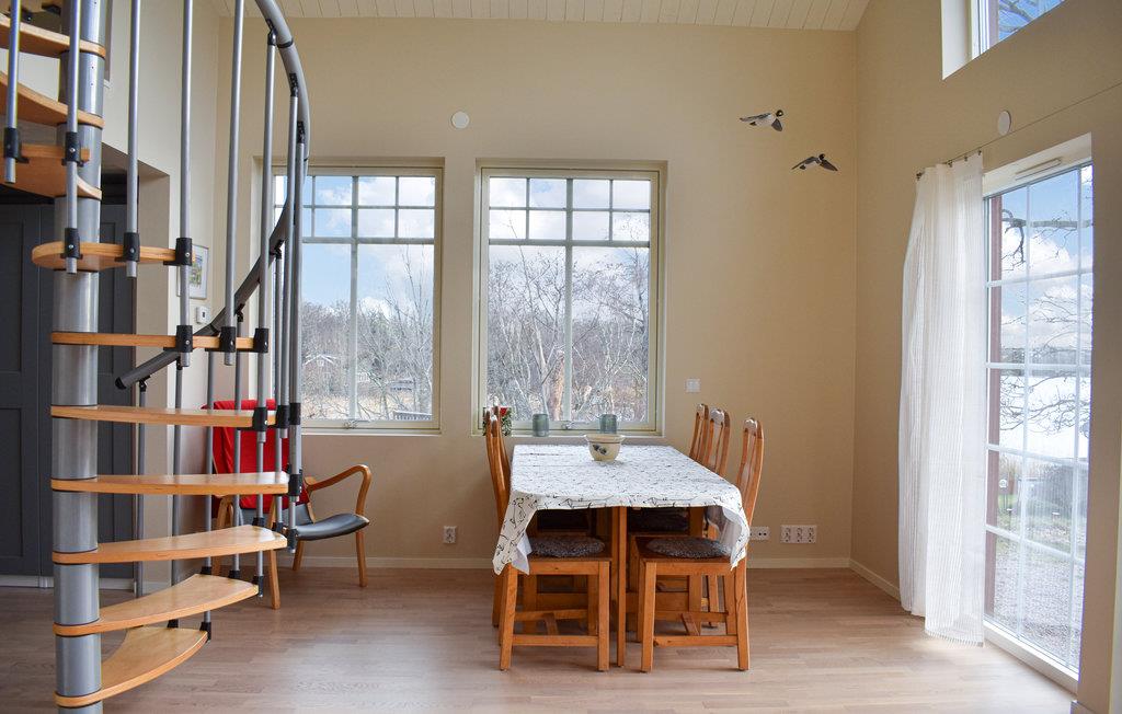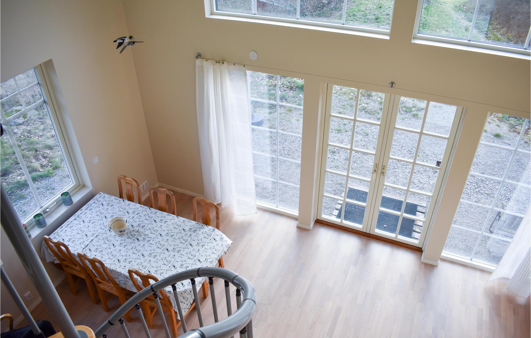 Velkommen til hele familien, som kan nyde dette smukke hjem ved vandet. De store vinduer i to etager oplyser hele opholdsrummet, hvor I samles for at lave mad, spise dagens måltider og spille spil. En vindeltrappe fører jer op til det hyggelige sofaområde, så I kan nyde udsigten til vandet fra begge etager.