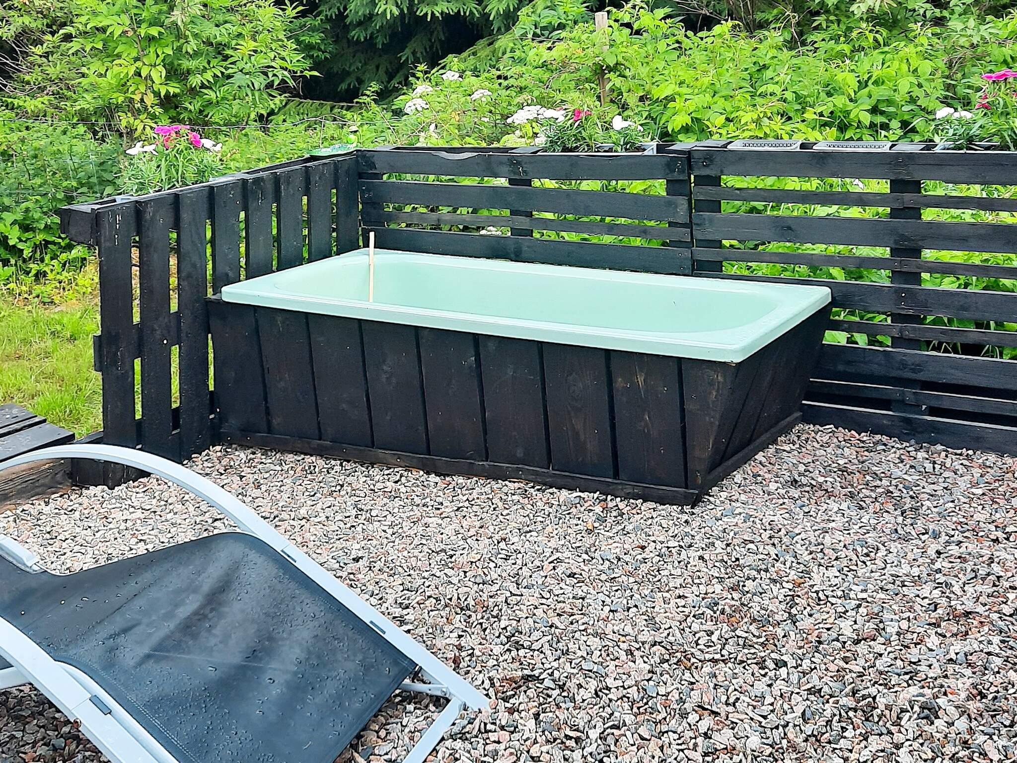 Ni har en härligt lummig trädgård som är inhägnad, som kan vara en stor fördel om du reser med husdjur. I trädgården finns även den nybyggda bastun, där ni kan basta och blicka ut över skogen. Det kommer även att finnas en utedusch och badtunna/utebadkar för 2 personer. Utanför trädgården gränsar tomten på ena sidan till en landsväg där viss trafik förkommer.