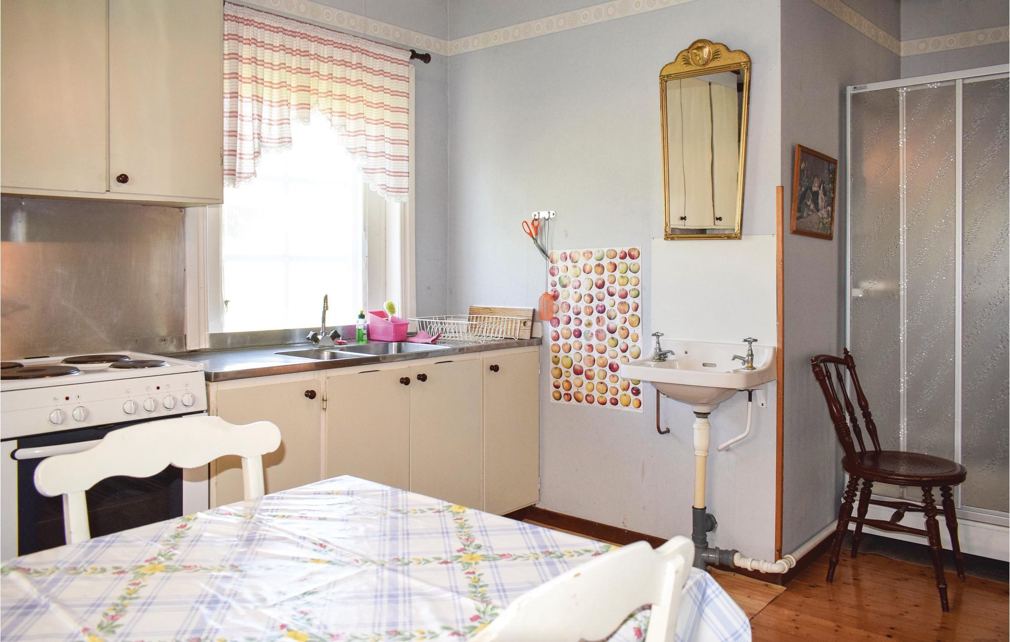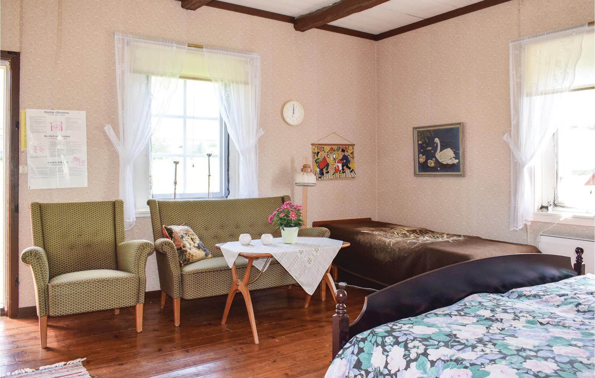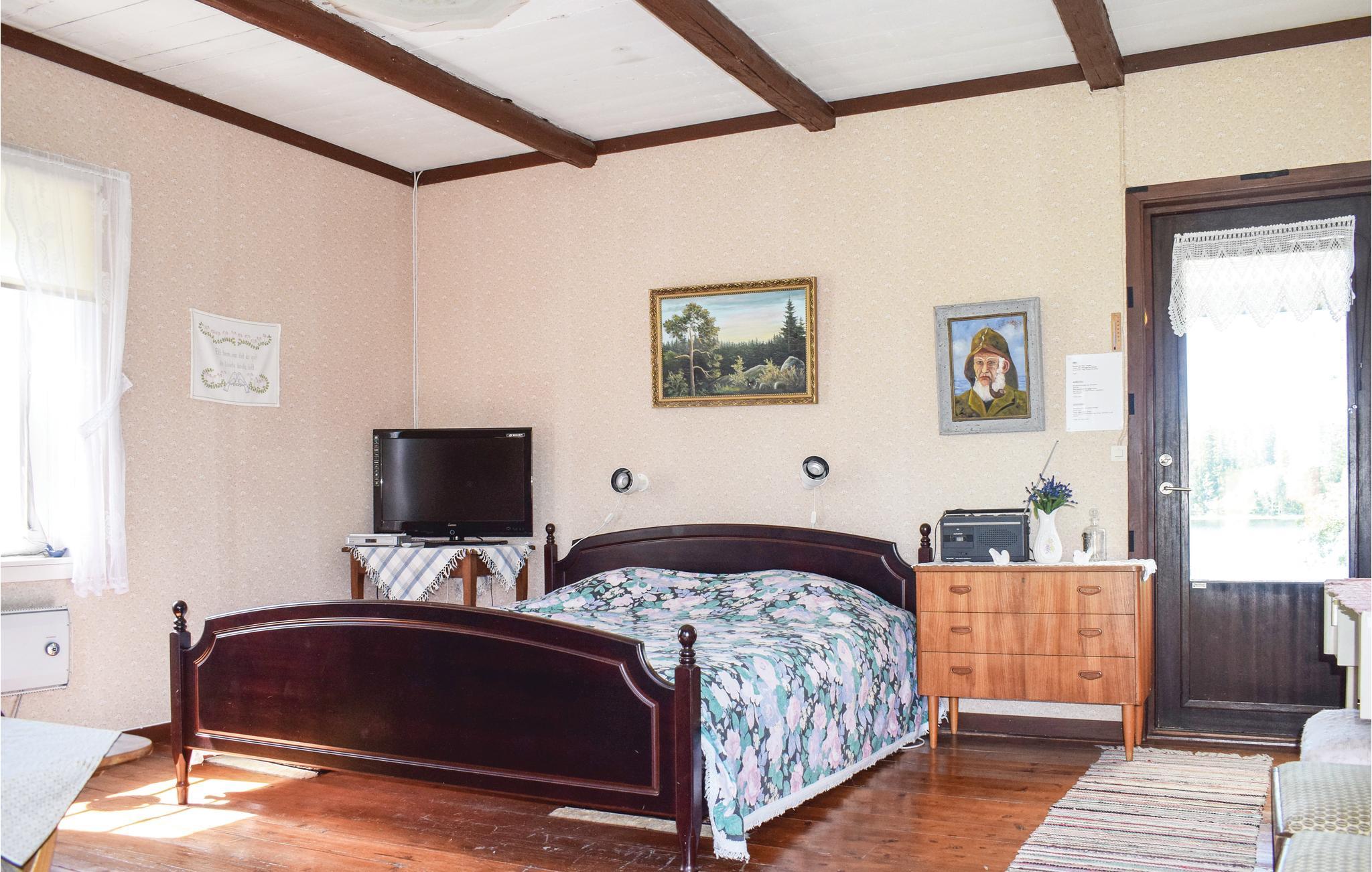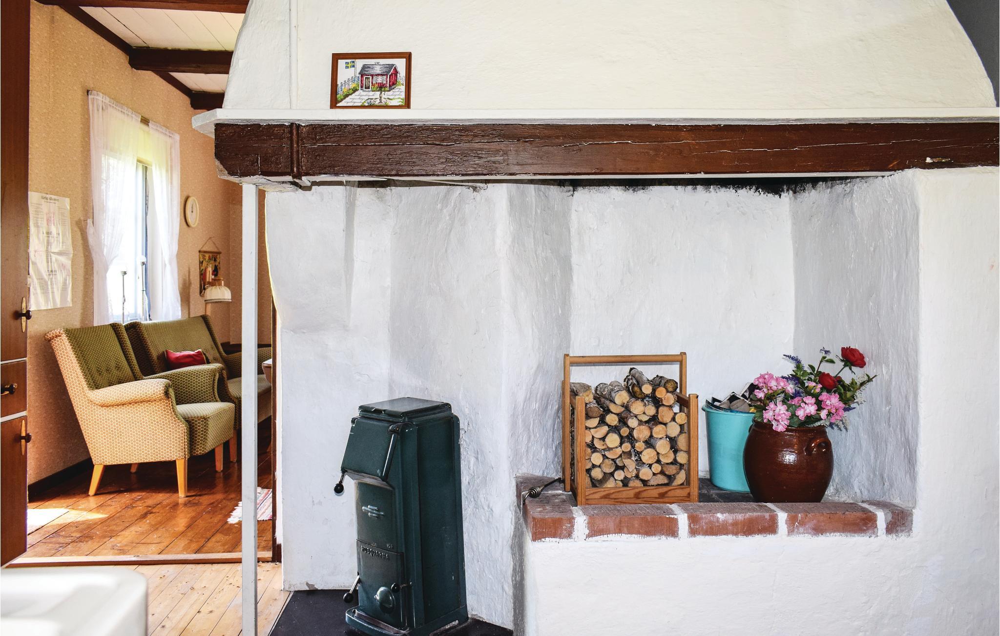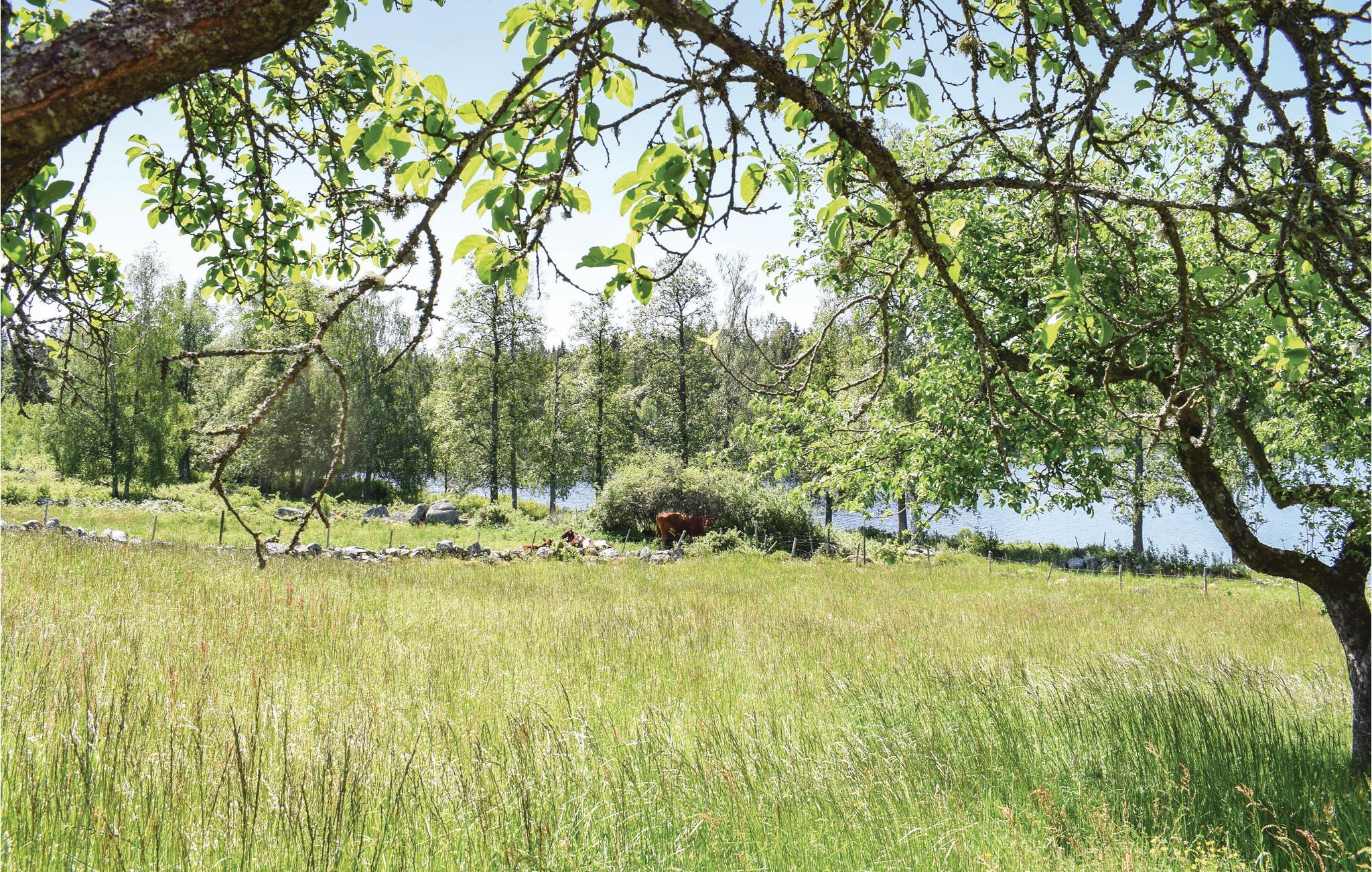 Simpelt feriehus med en dejlig søudsigt. I har aftensol på den overdækkede terrasse og en dejlig søudsigt over Hössjön. Under huset ligger en anløbsbro med badestige, og her ligger en aluminium Lindner båd, som I kan bruge. Husejeren bor bag ferieboligen, så I stadig har stykket til søen for jer selv. Græsende dyr omkring huset. Brusebadet har varmt vand og er en del af køkkenet, og toilet med vask er adskilt i boligen, men med udvendig indgang. Fisketilladelser kan købes i isenkræmmeren i Ryd (15 km), som også er en dejlig destination med masser af grej til fiskeri. Fiskekortet gælder for en række søer i området. I Ryd er der også et supermarked og en cykelbutik, der lejer cykler ud. Urshult ligger 6 km væk. Her er også en lille butik og en dejlig frokostrestaurant, Ladan. Gå en tur ud til Sirkön og Åsnen. Der er meget at se på her - såsom æbleplantage, mange loppemarkeder og et fiskekøkken. Åsnen blev nationalpark 2018, så her er en masse natur og et rigt fugleliv. På Getnö findes gode vandrestier. Tingsryd ligger 16 km væk og er en dejlig landsby. Her kan I spise rejesandwich på Börjes, eller spise frokost på Tingsryd Resort ved søen Tiken, hvor der er både minigolf og tennisbane. Søen Mien ligger 11 km væk herfra, hvor der er to dejlige badesteder. Søen er meget smuk, da den er helt rund. Det siges, at søen er resterne af et krater, dannet af en meteorit for omkring 120 millioner år siden. Besøg Karlshamn og Mörrum, som ligger kun 43 km væk. Her kan I spise god fisk i Väggahamnen og Karlshamn, som er en dejlig by.