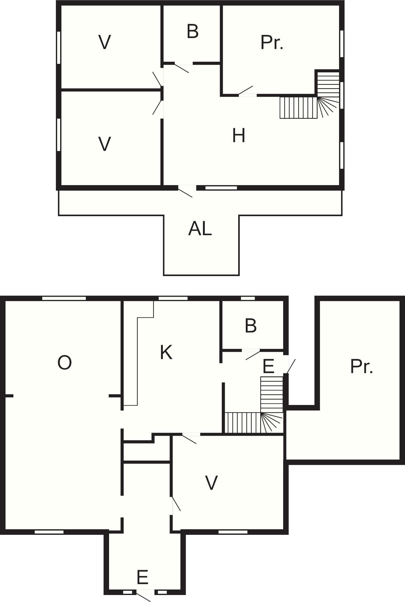 Huset består av två våningar, på först plan har ni kök, vardagsrum och matsal, en toalett och ett av sovrummen, detta har en dubbelsäng.