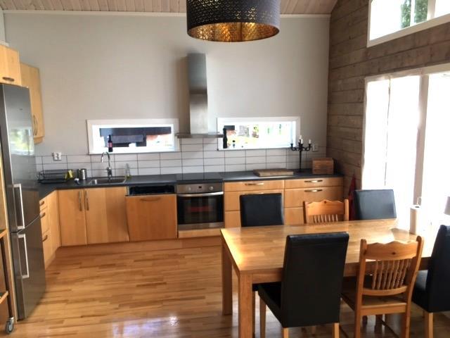 På førstesalen er der en dobbeltseng, en stor hjørnesofa samt to enkeltsenge, og I køkkenet finder i alle bekvemmeligheder såsom opvaskemaskine, køle-/fryseskab, ovn, mikroovn og kogeplader.