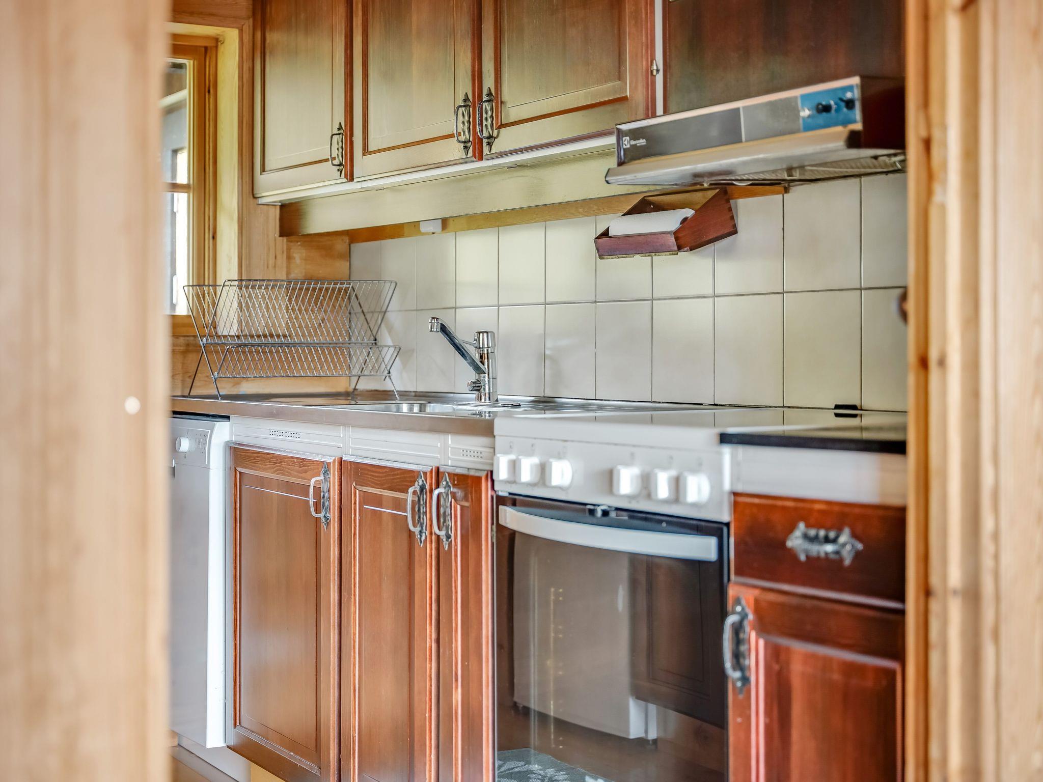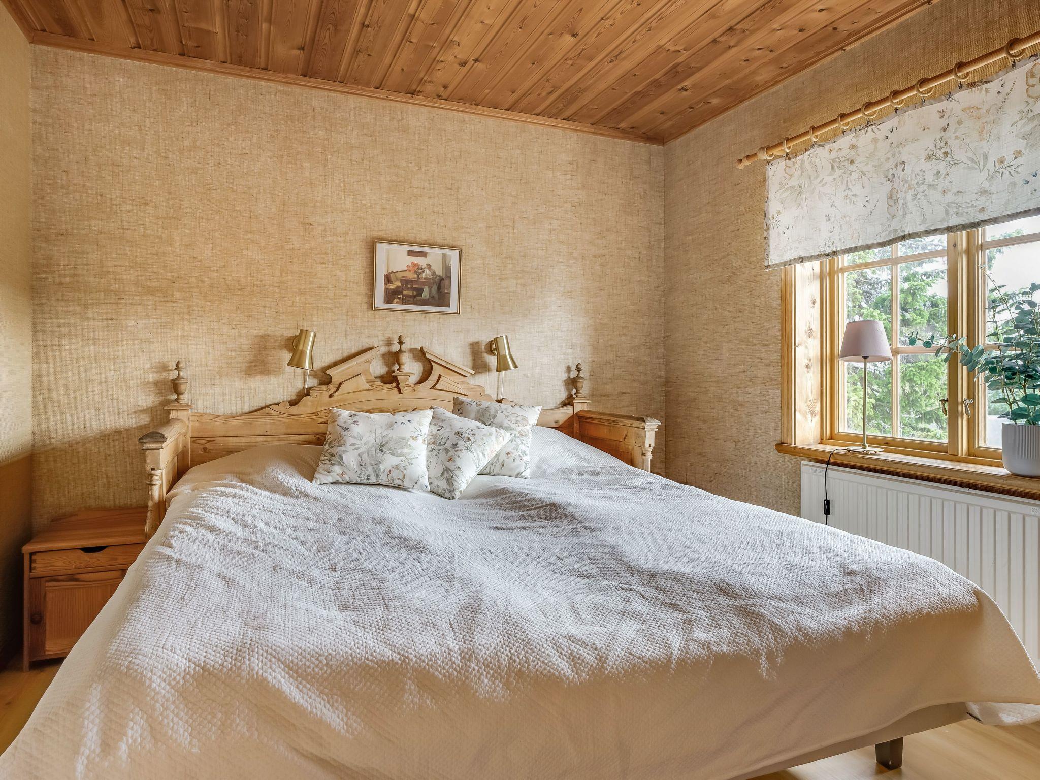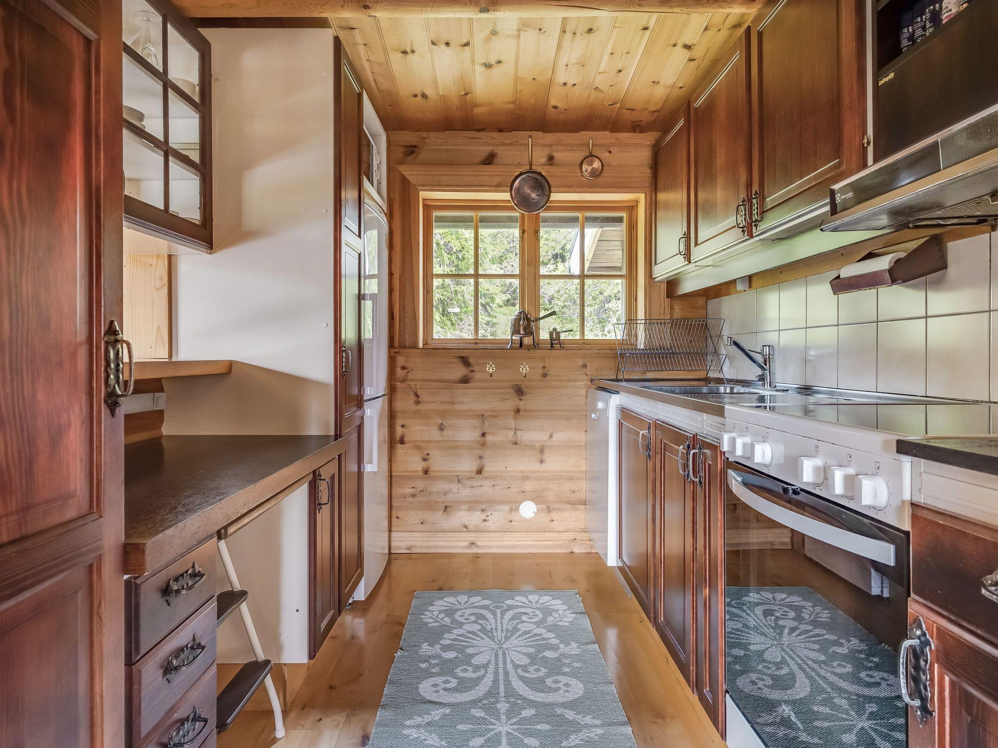 "Korpstigen Älgen", 3-room house 75 m2. Wooden furniture furnishings: living/dining room with open-hearth fireplace, dining table, TV and CD-player. Exit to the veranda. 1 room with 1 double bed. 1 room with 2 x 2 bunk beds. Open kitchen (oven, dishwasher, 4 ceramic glass hob hotplates, microwave, freezer, electric coffee machine). Shower/WC, Sauna. Electric heating. Wooden floors. Terrace furniture, barbecue (portable). Panoramic view. Facilities: washing machine, iron, children's high chair, baby cot. Please note: non-smoking house. Smoke alarm, fire extinguisher. Freezer approx. 80 l.