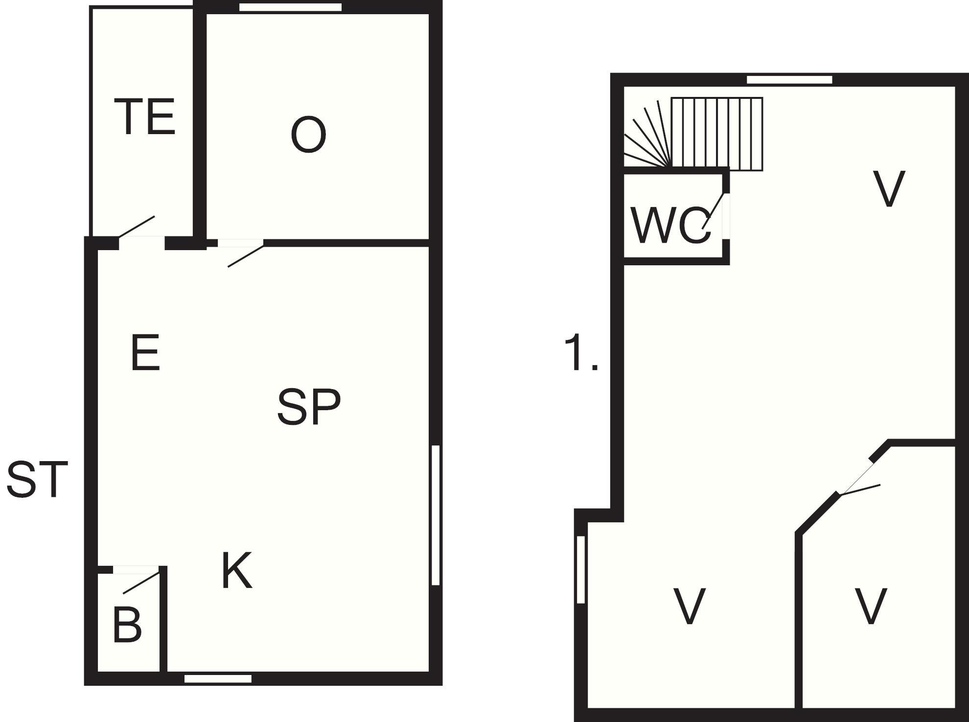 1 Opholdsstue: Kakkelovn, radio, dvd-afspiller, tv